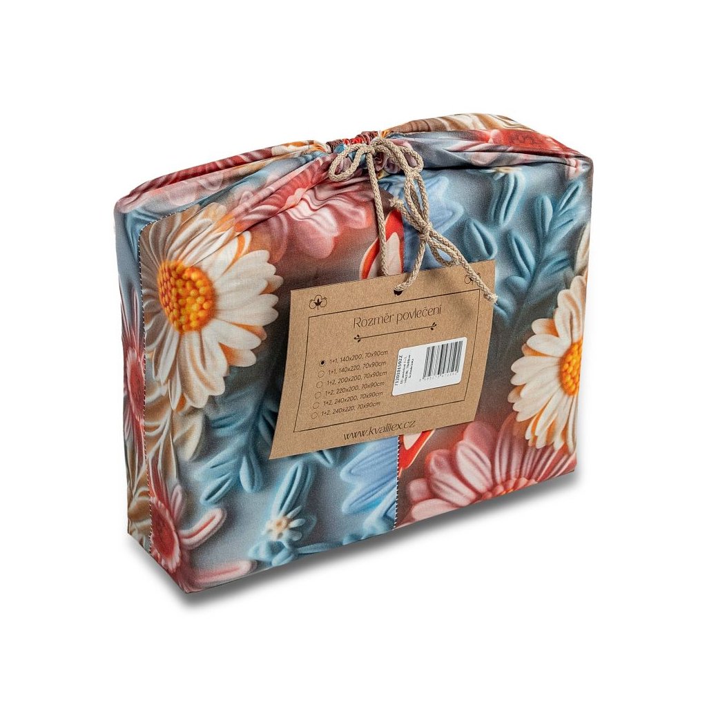 5D tlač na obliečky predstavuje modernú technológiu digitálnej potlače, ktorá vytvára realistické a trojrozmerné vzory s výraznou hĺbkou a detailmi. Vďaka tejto metóde získavajú motívy živé, sýte farby, ktoré si dlhodobo uchovávajú intenzitu aj po opakovanom praní. Obliečky s 5D tlačou kombinujú estetiku a pohodlie – sú vyrobené z jemnej, priedušnej bavlny, príjemné na dotyk a vhodné na celoročné použitie. Táto kombinácia kvalitného materiálu a moderného dizajnu premieňa spálňu na elegantné a štýlové prostredie, kde sa spája vizuálny efekt s komfortom spánku. Plošná hmotnosť (gramáž) tkaniny je 130-135g/m2.