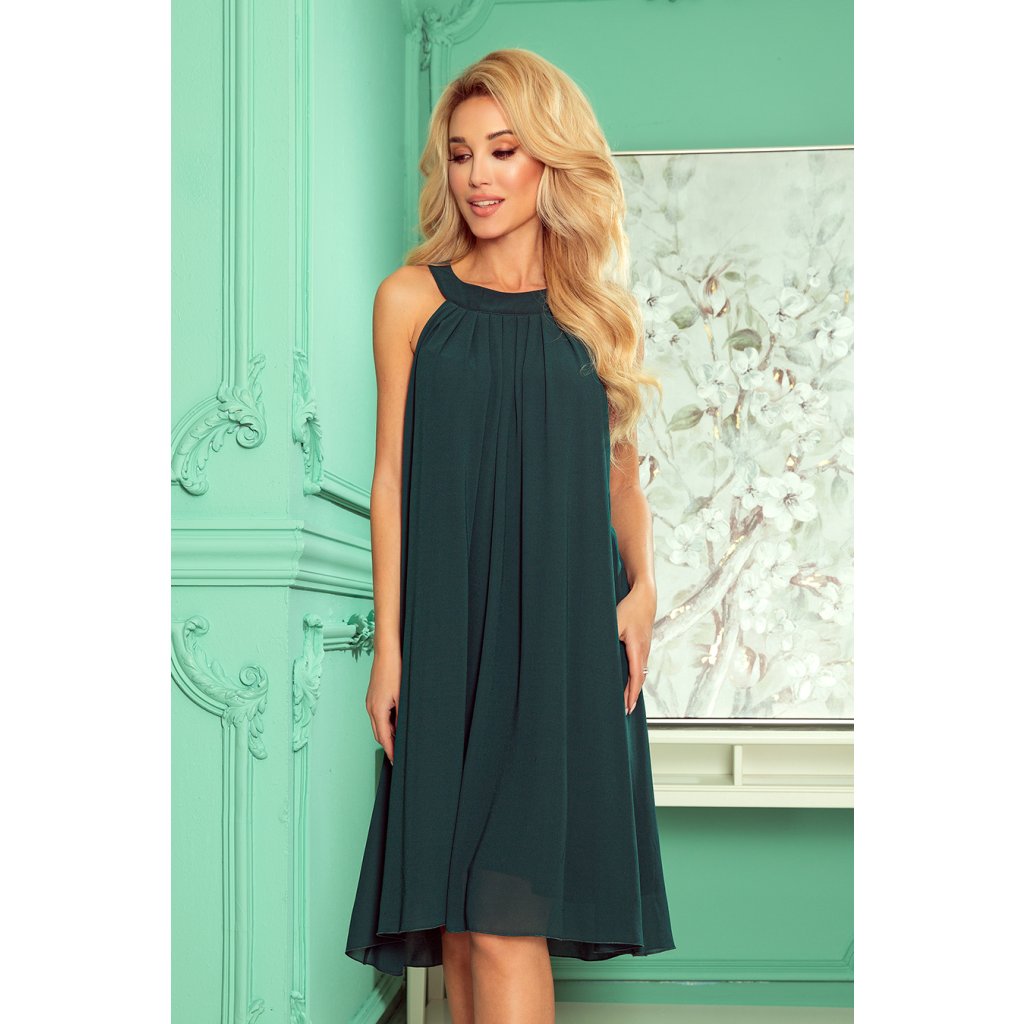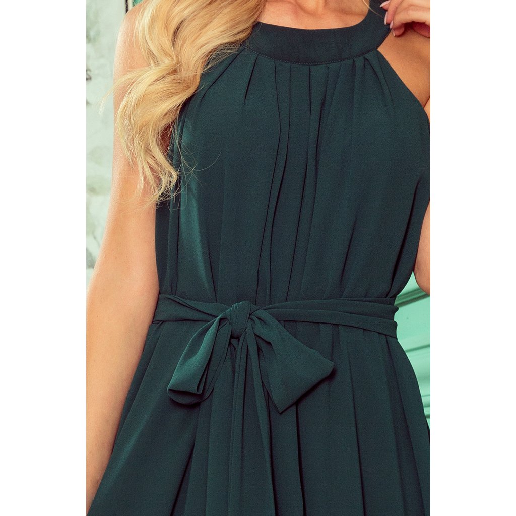 Alizee - šifónové šaty s opaskom a kravatou na chrbte. Farba: zelená. Značka Numoco. Poľská produkcia.