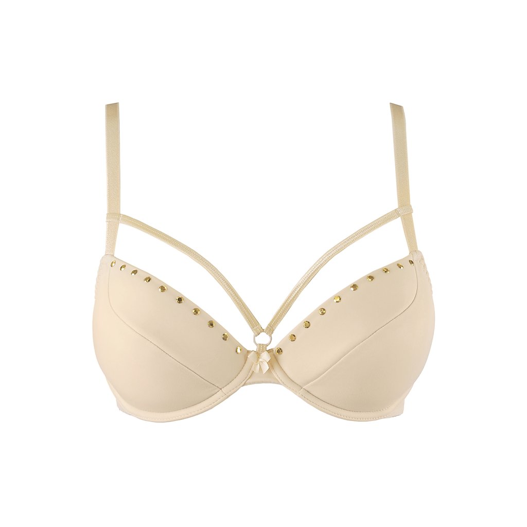 Béžová push-up podprsenka.- košíčky so zlatými cvočkami