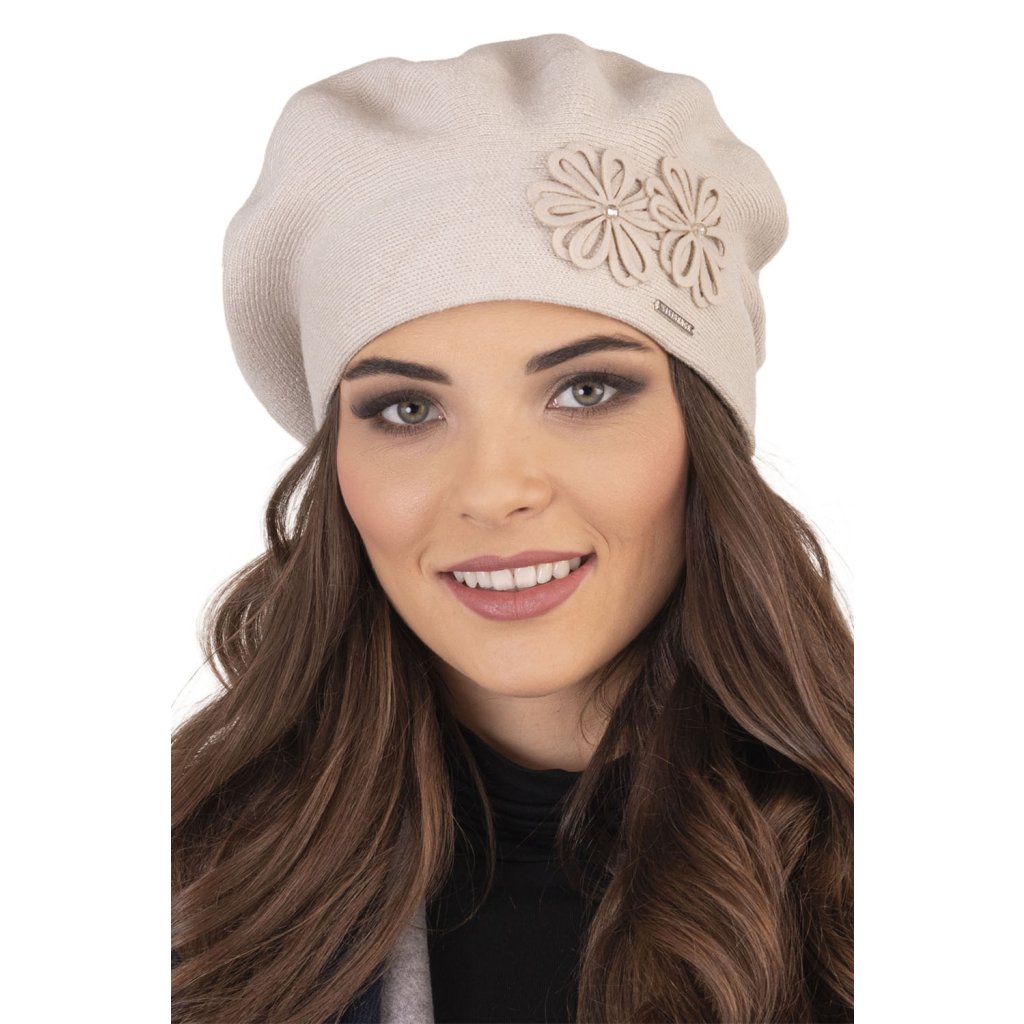 legendárny dámsky baret.- klasický strih- vyrobený z hrejivej priadze s vlnou- prednú stranu zdobí kvetinová aplikácia- baret perfektne sedí na hlave- skvelý nápad na darčekZloženie: 40% akryl, 25% viskóza, 20% vlna, 15% elastan.Dodatočné parametre