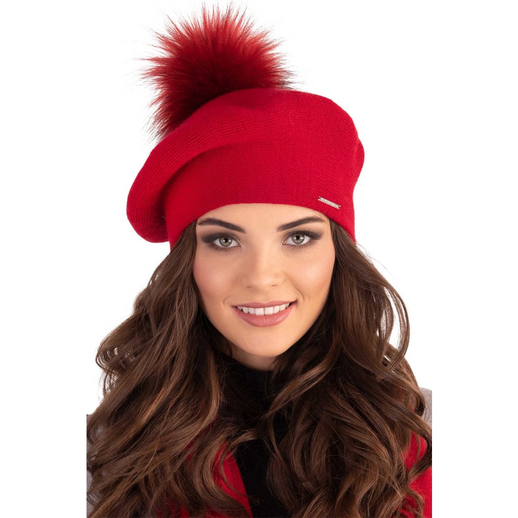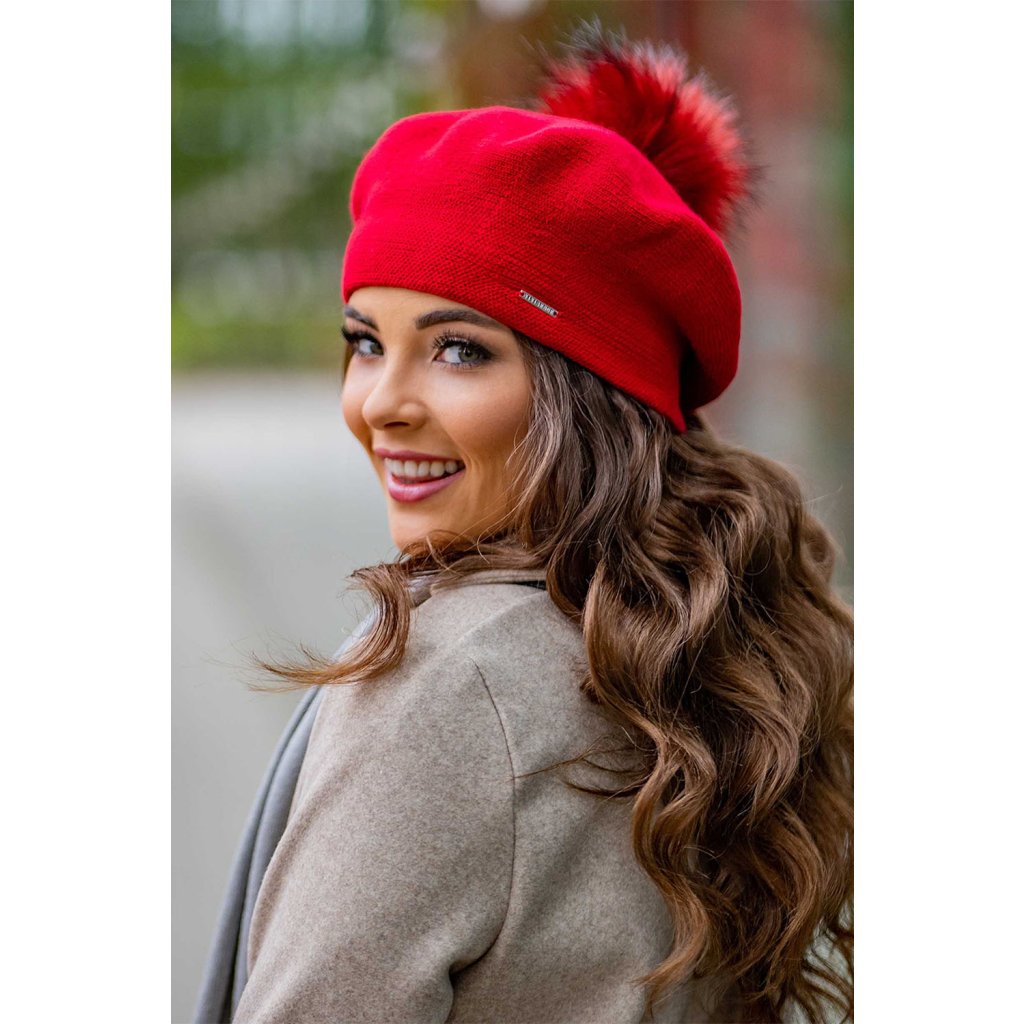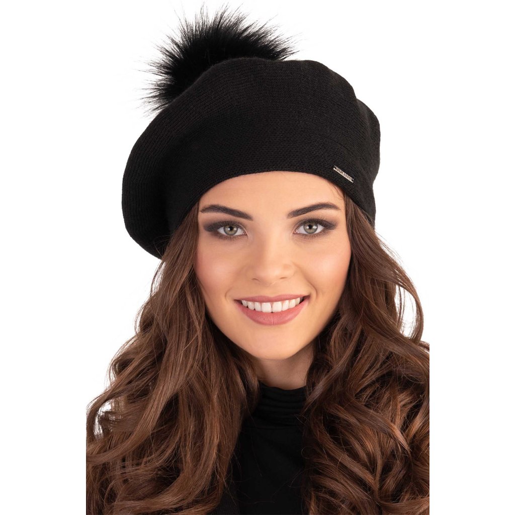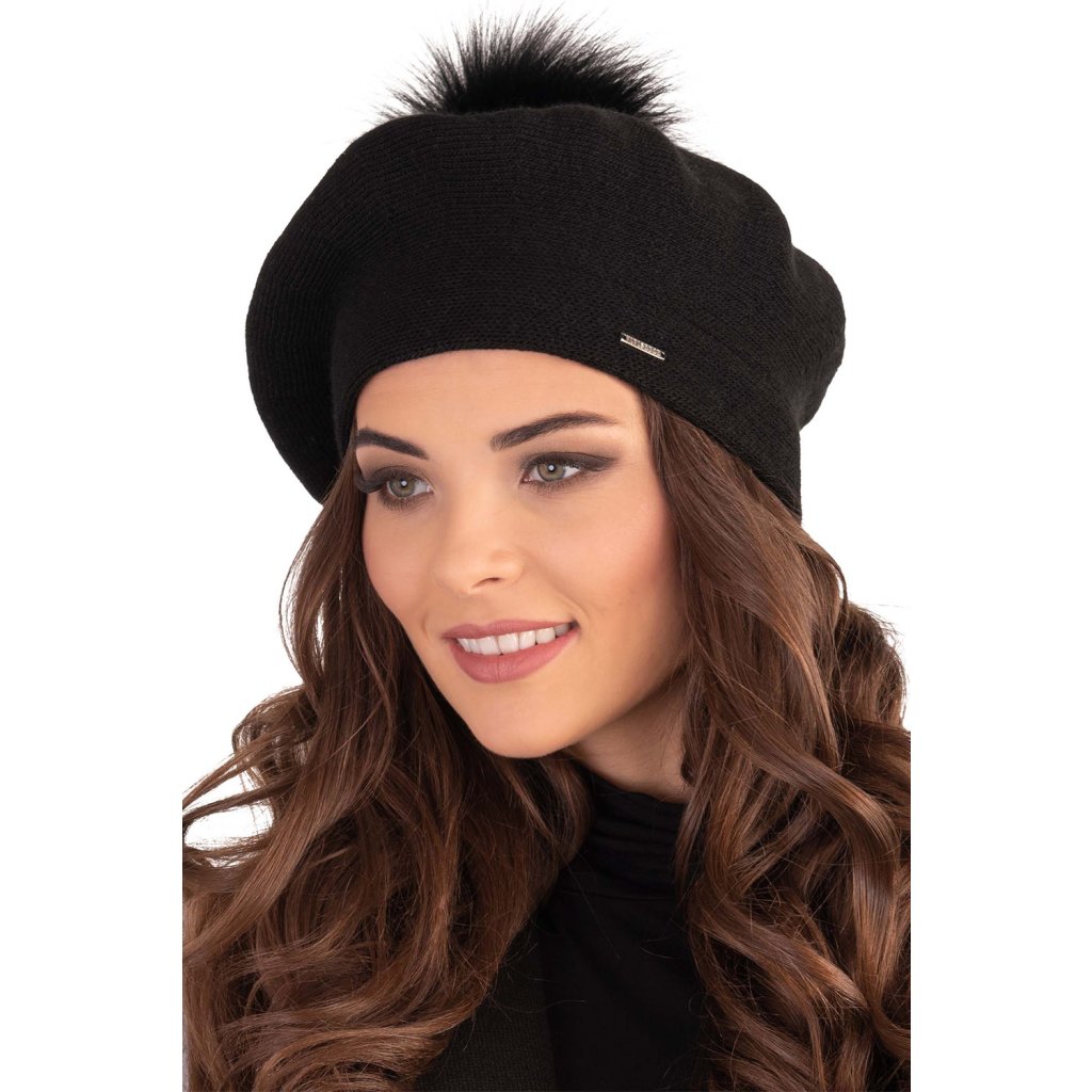 Elegantný dámsky baret s bambulou.- klasický strih
