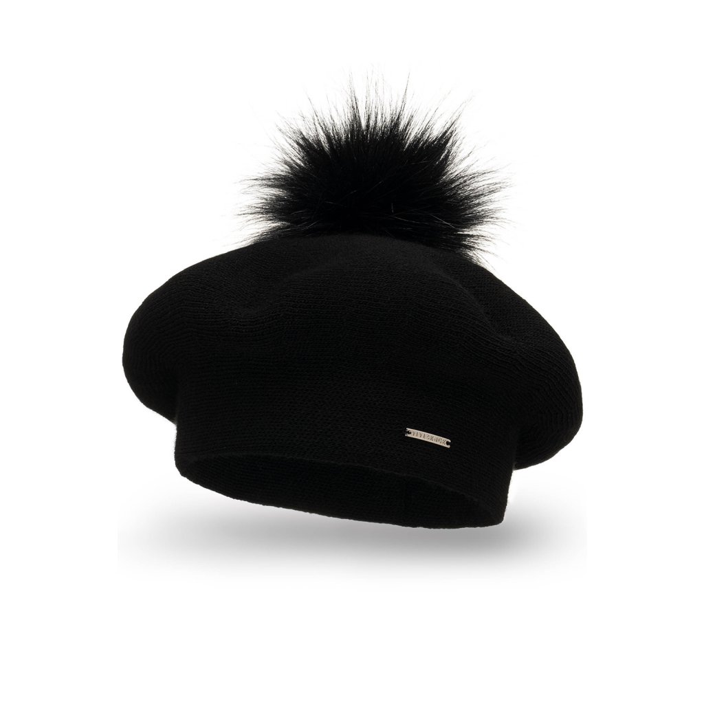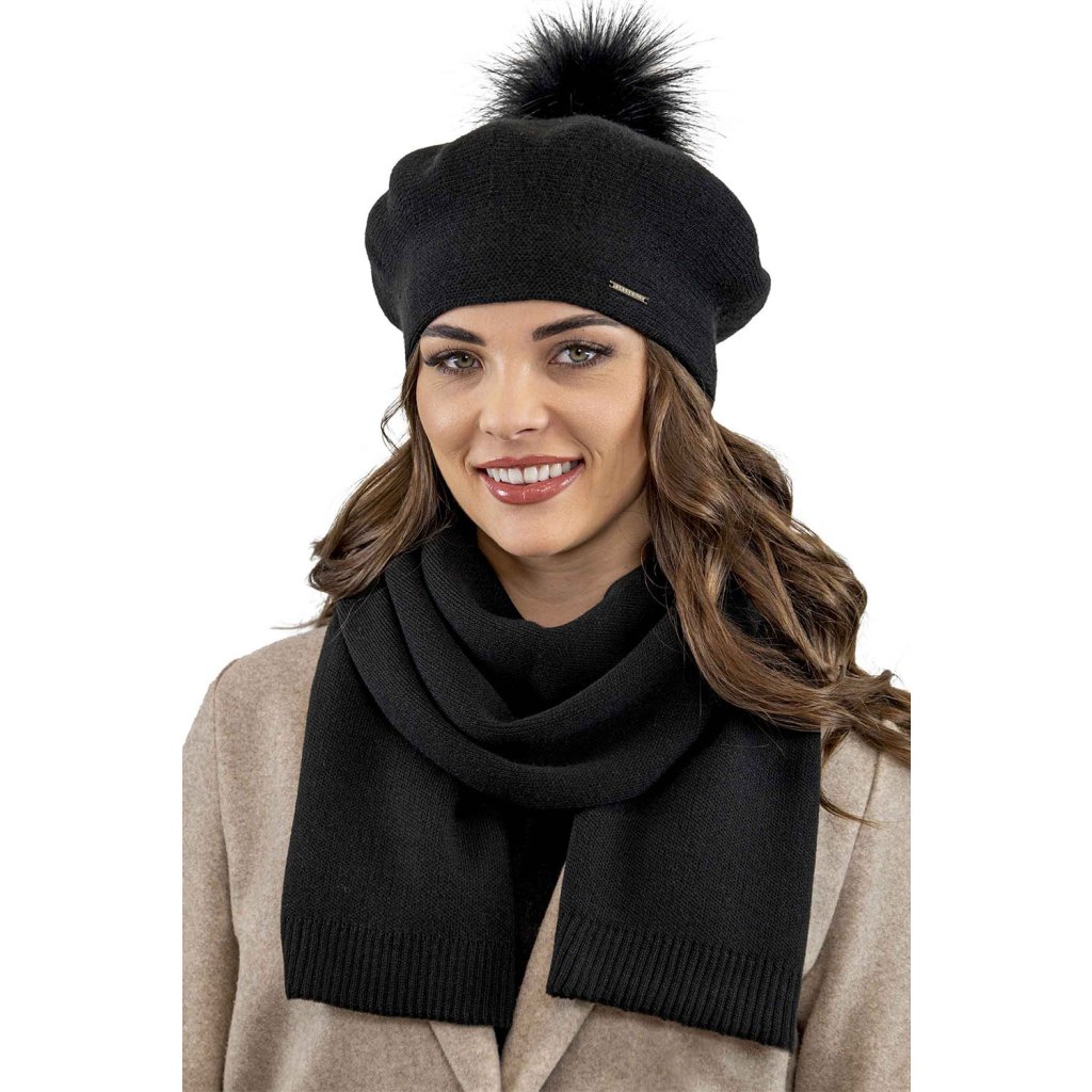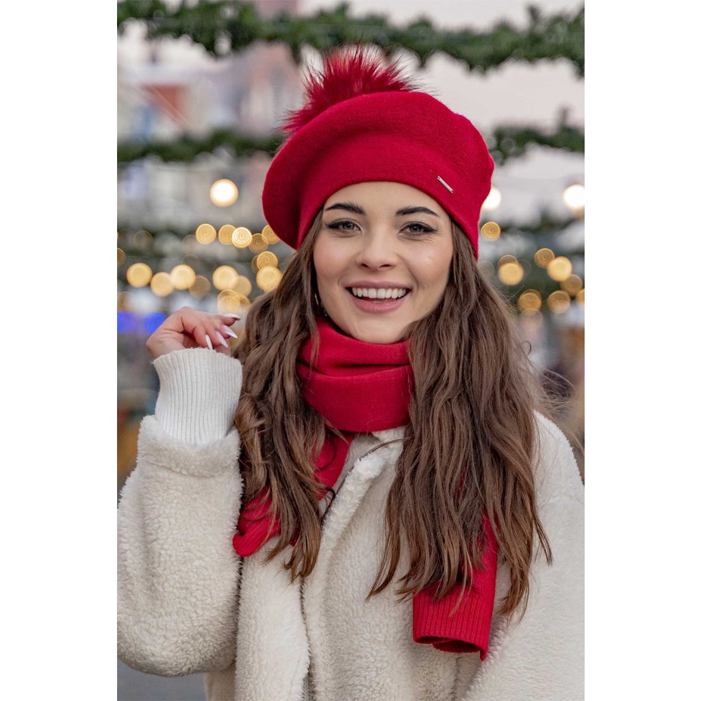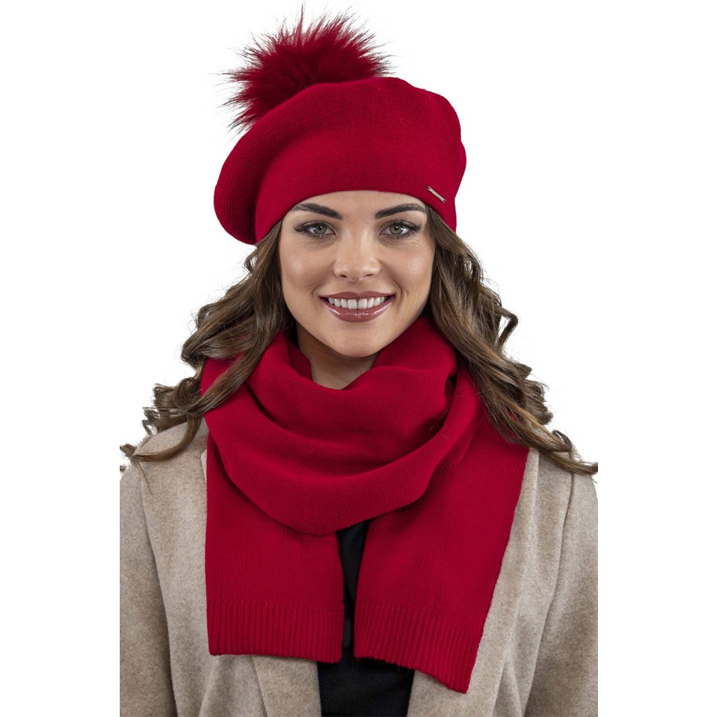Elegantný dámsky baret s bambulou.- klasický strih