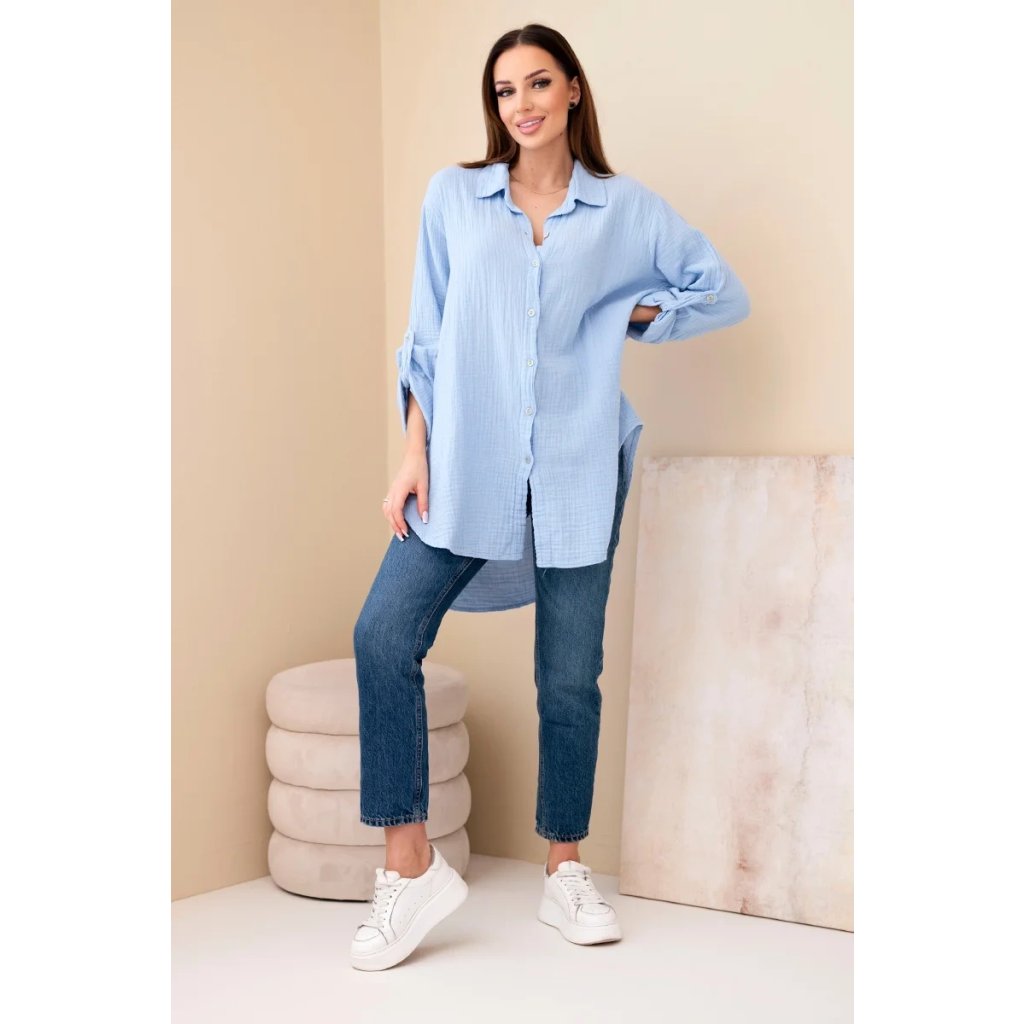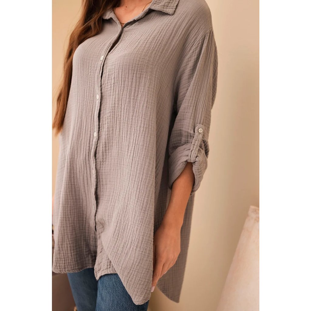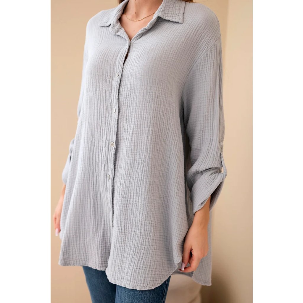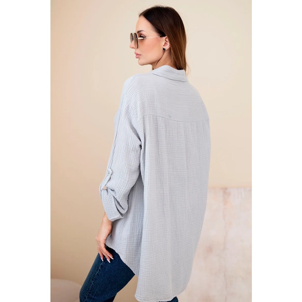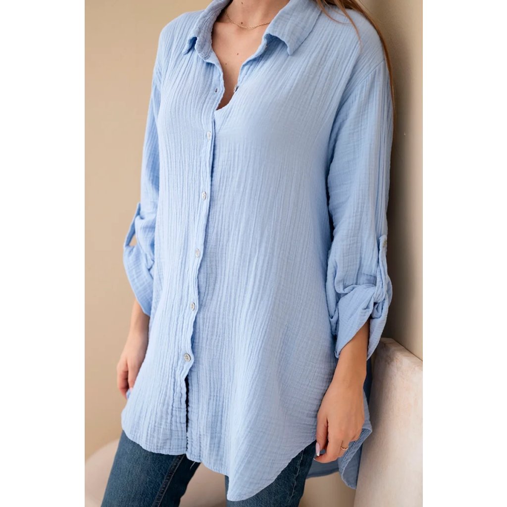 Mušelínová košeľa je esenciou pohodlia a nadčasovej elegancie. Je vyrobená z ľahkého, priedušného mušelínu, je ideálna na všetky ročné obdobia a zaručuje pohodlie pri nosení a voľnosť pohybu. Jeho univerzálny strih je ideálny na každodenné nosenie, ako pareo k vode aj k formálnemu oblečeniu. Jemná štruktúra materiálu dodáva košeli jemný pôvab a precízne spracovanie podčiarkuje vysokú kvalitu dizajnu. Mušelínová košeľa je povinnou výbavou pre tých, ktorí oceňujú kombináciu klasického a moderného štýlu.