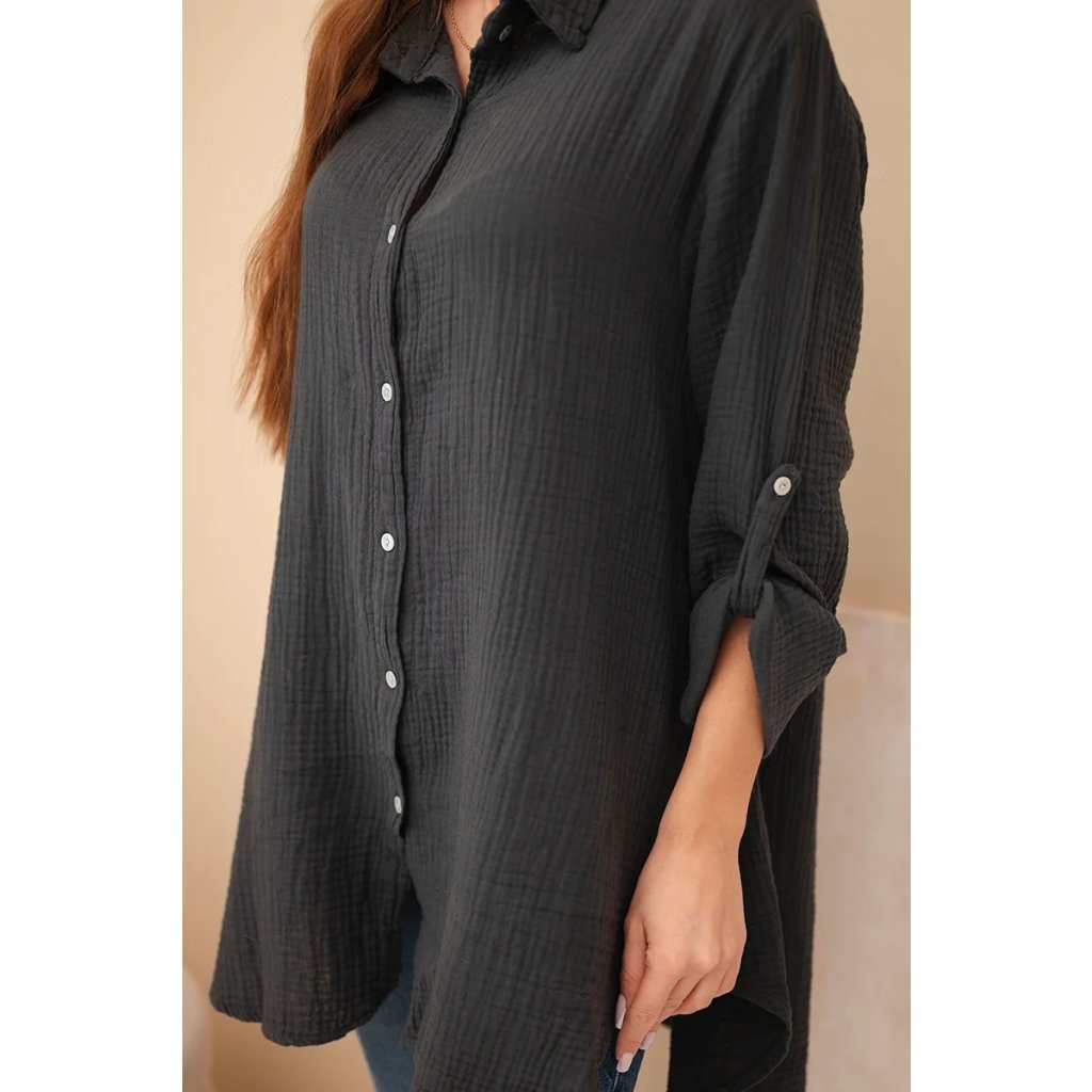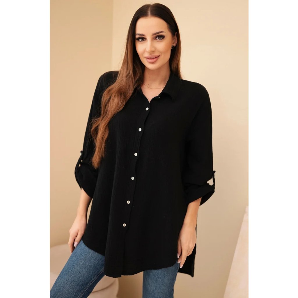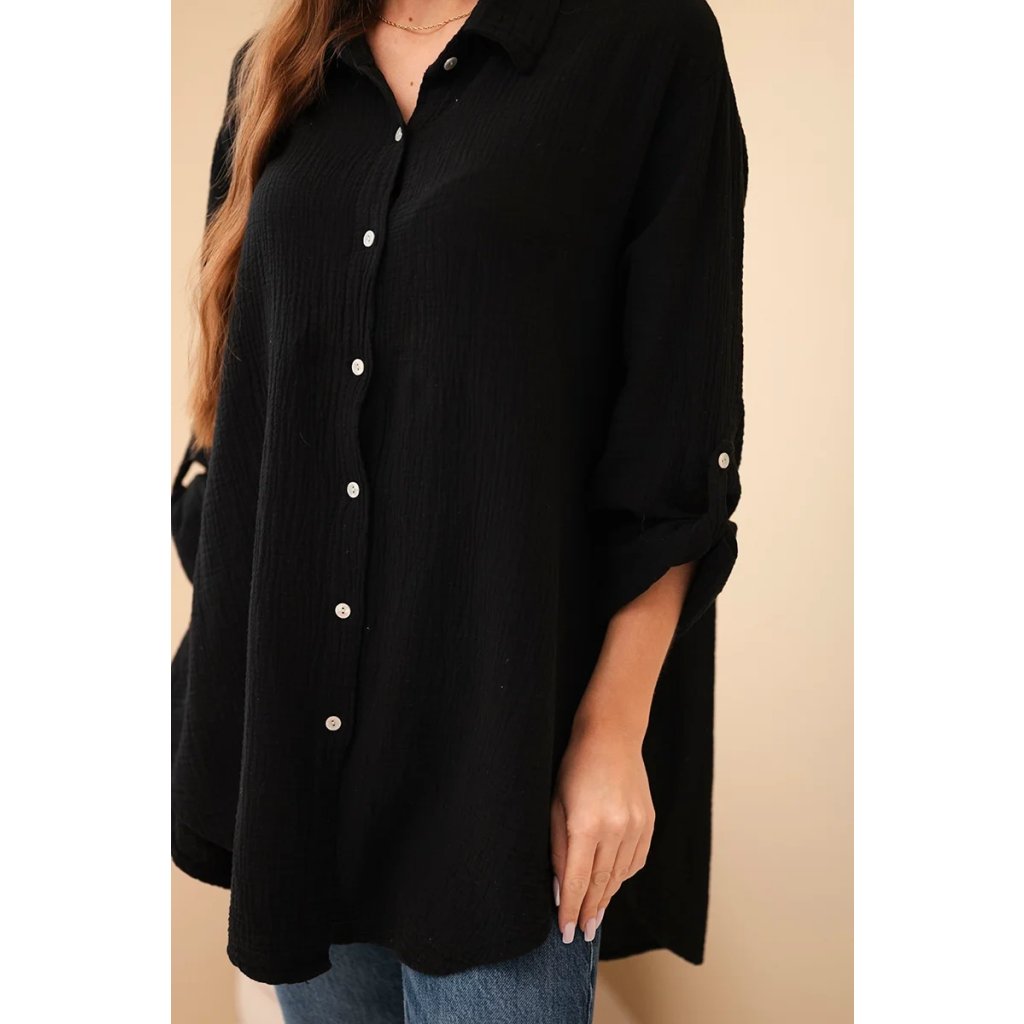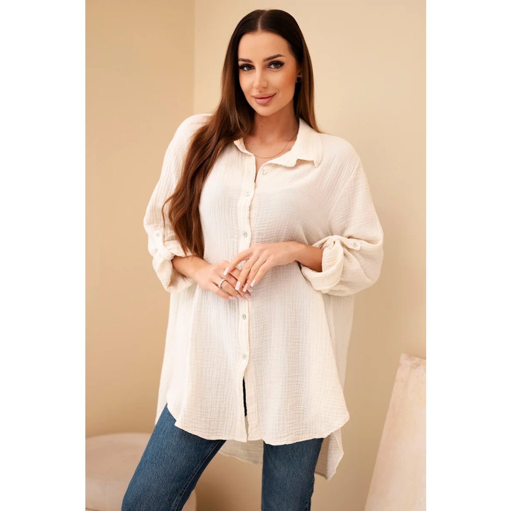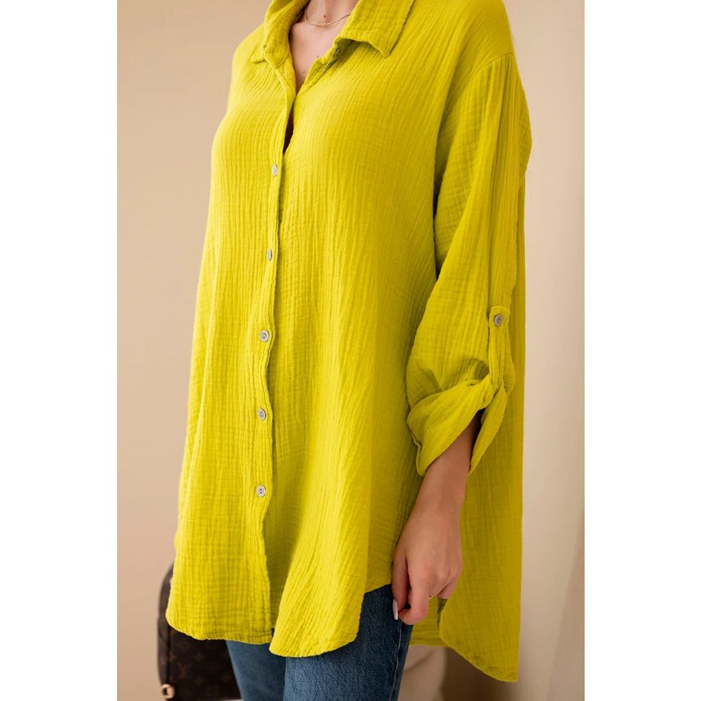 Mušelínová košeľa je esenciou pohodlia a nadčasovej elegancie. Je vyrobená z ľahkého, priedušného mušelínu, je ideálna na všetky ročné obdobia a zaručuje pohodlie pri nosení a voľnosť pohybu. Jeho univerzálny strih je ideálny na každodenné nosenie, ako pareo k vode aj k formálnemu oblečeniu. Jemná štruktúra materiálu dodáva košeli jemný pôvab a precízne spracovanie podčiarkuje vysokú kvalitu dizajnu. Mušelínová košeľa je povinnou výbavou pre tých, ktorí oceňujú kombináciu klasického a moderného štýlu.