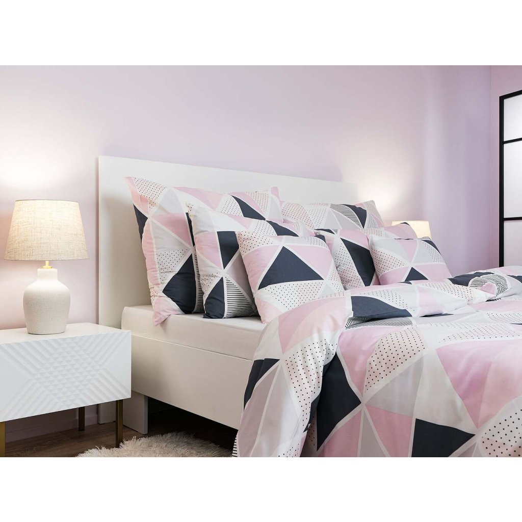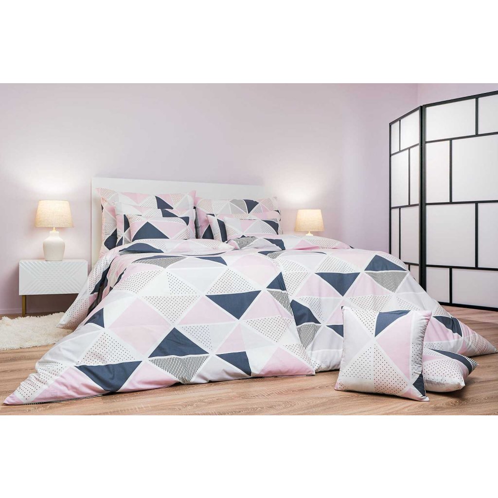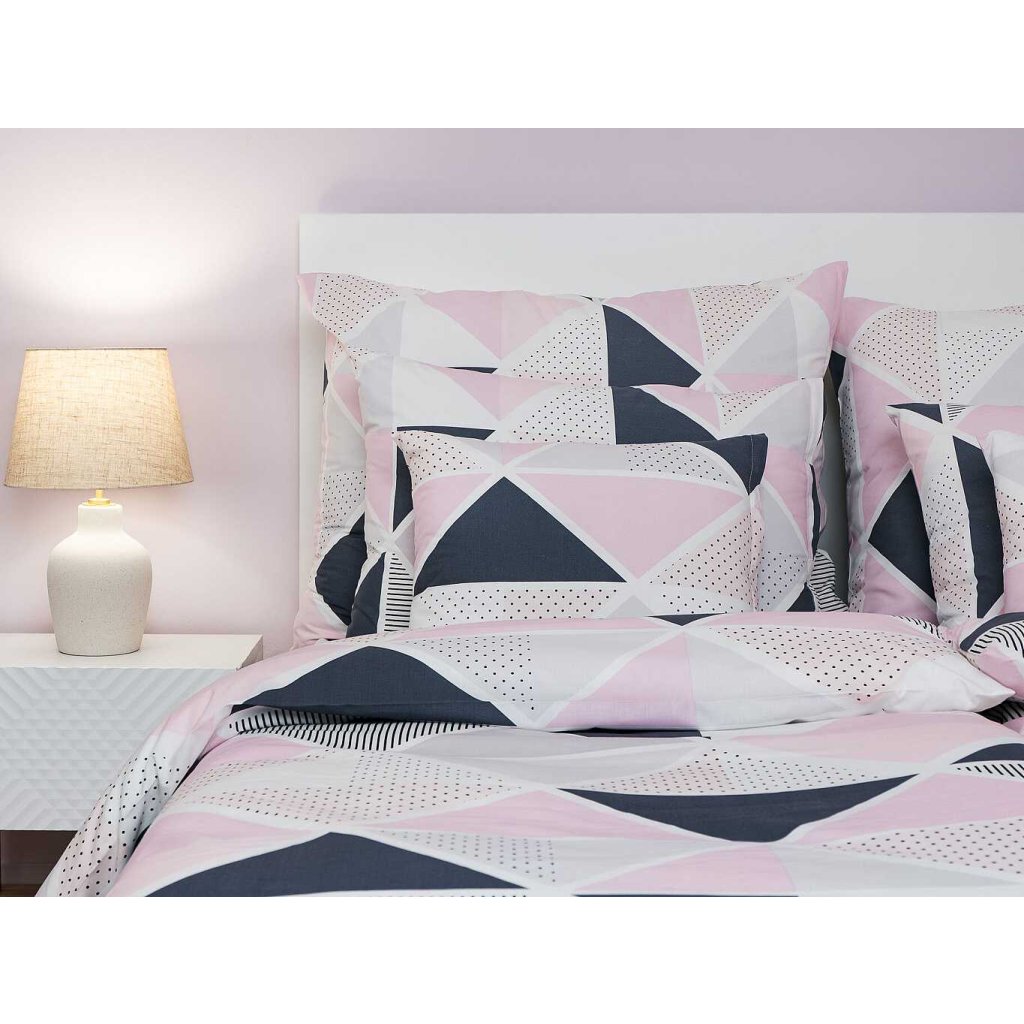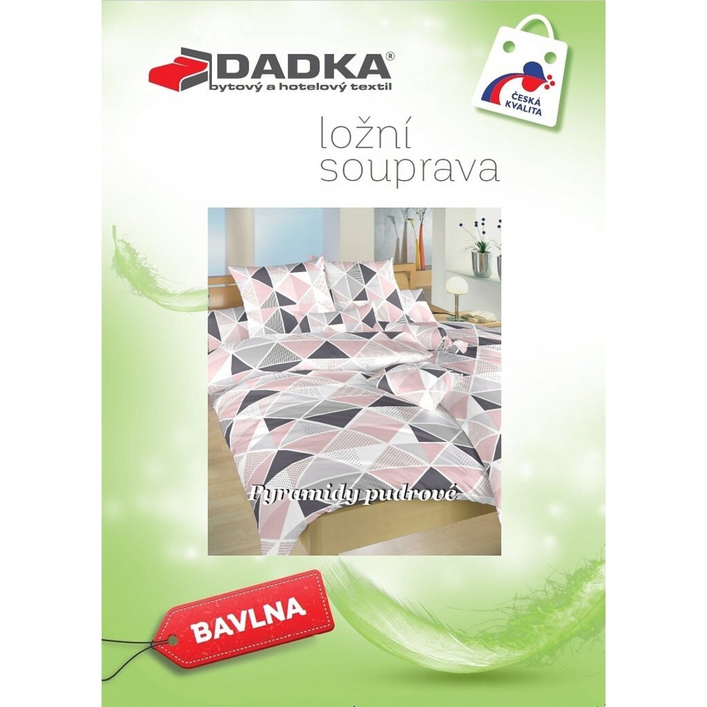 Štýlová posteľná bielizeň Pyramídy púdrovej s moderným trojuholníkovým vzorom v odtieňoch púdrovo ružovej, šedej a bielej prináša do spálne jemnosť a eleganciu. Odporúčame kombinovať s plachtami vo farbe biela, púdrová, šedá, strieborná alebo tmavo šedá. Vyrobené v Českej republike firmou DADKA VRACOV.