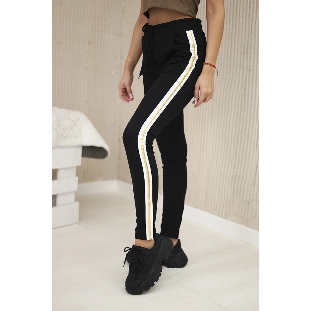 Bavlnené nohavice so zlatými lamelami sú elegantnou voľbou pre tých, ktorí sa radi štýlovo odlišujú. Sú vyrobené z mäkkej, vysokokvalitnej bavlny a zaručujú pohodlné nosenie a perfektné nosenie. Zlatý lampas pozdĺž nôh im dodáva šmrnc a moderný, luxusný vzhľad, ktorý je ideálny na každodenné nosenie aj výnimočné príležitosti. Tieto nohavice sa dokonale kombinujú s jednoduchými blúzkami a sofistikovanejšími topy, čím vytvárajú štýlový a moderný vzhľad. Nohavice sú k dispozícii v týchto veľkostiach: M, L, XL, 2XL, 3XL, 4XL.