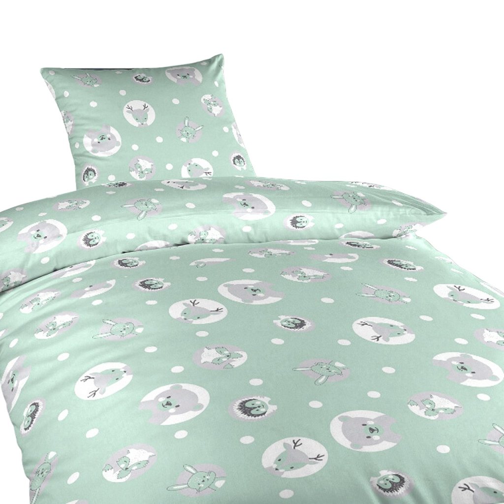 Dadka Obliečky bavlna do postieľky Zvieratká mentolová 90x130, 45x60 cm