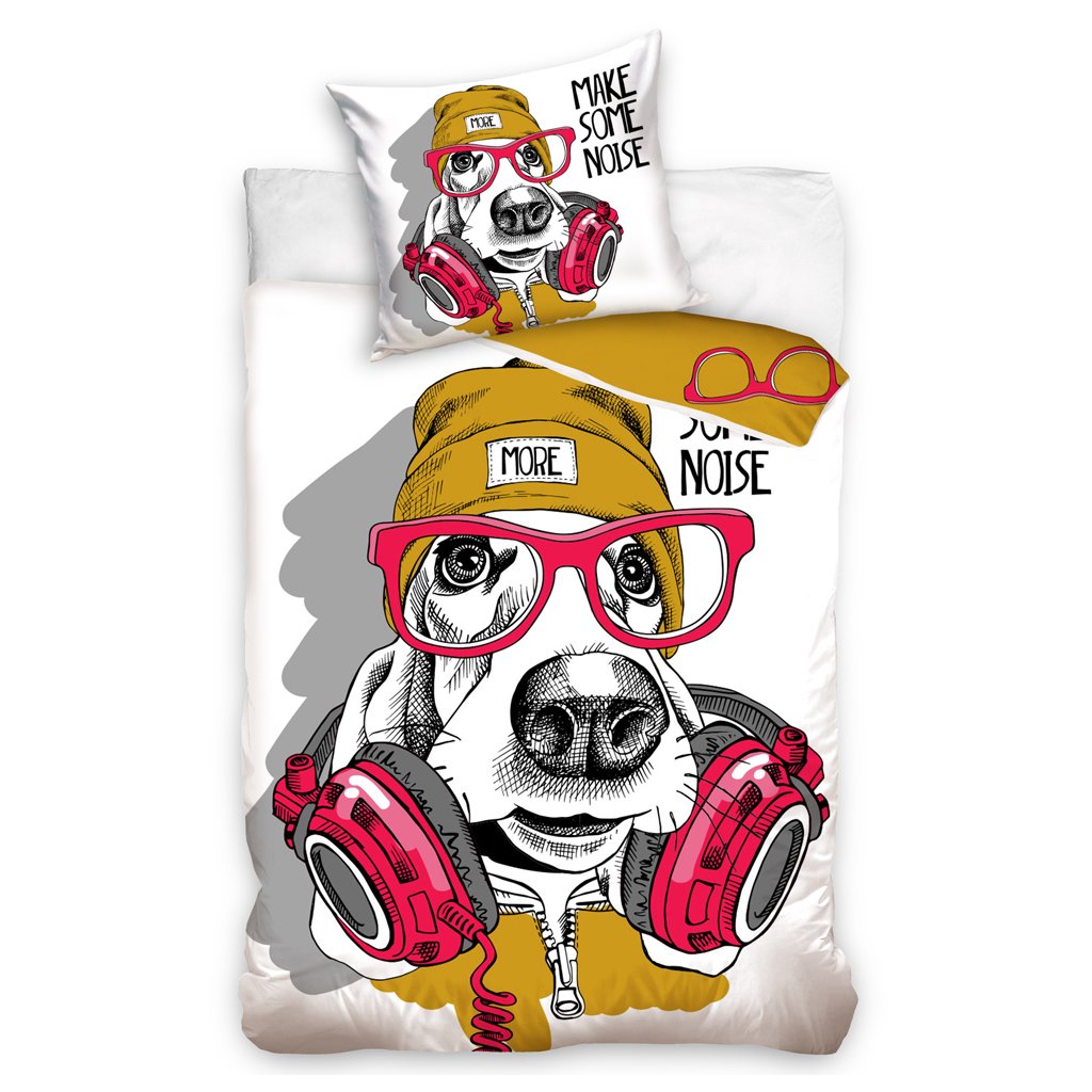 Posteľná bielizeň Psík Dj Baset je vyrobená zo 100% bavlny renforce a jeho rozmery sú 140x200 + 70x90 cm