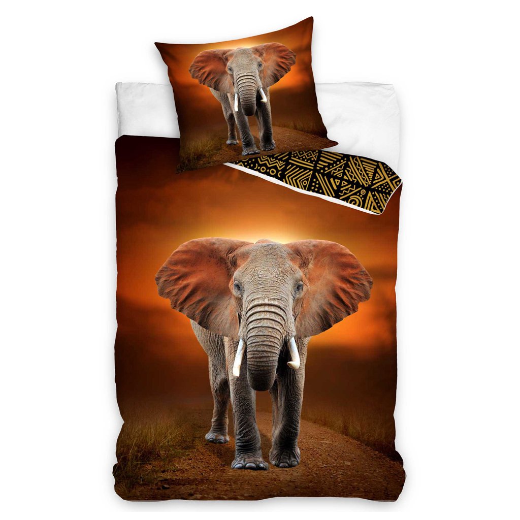 Na tvári obliečky je chodiaci slon, zviera, ktoré si mnohí z nás spájajú so šťastím