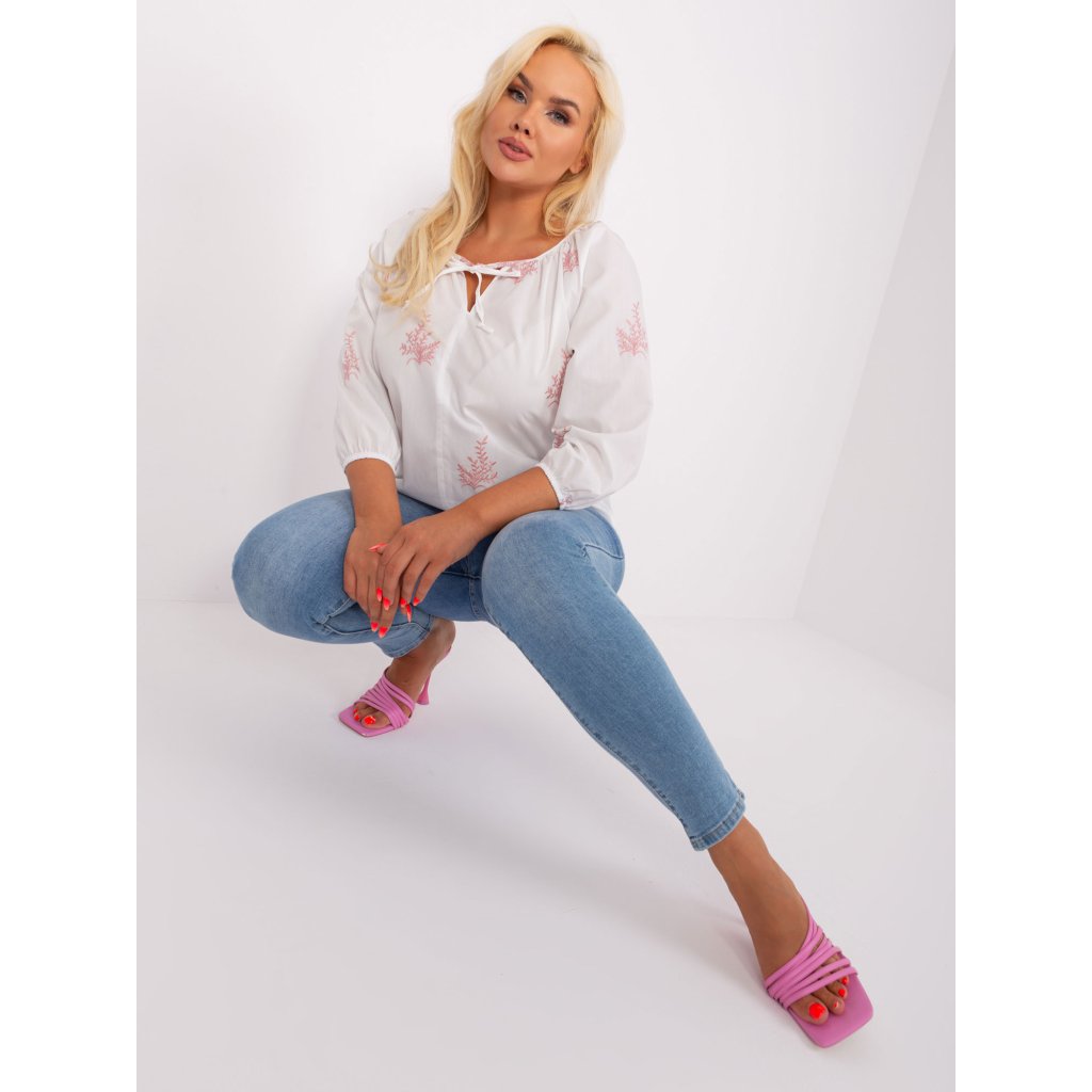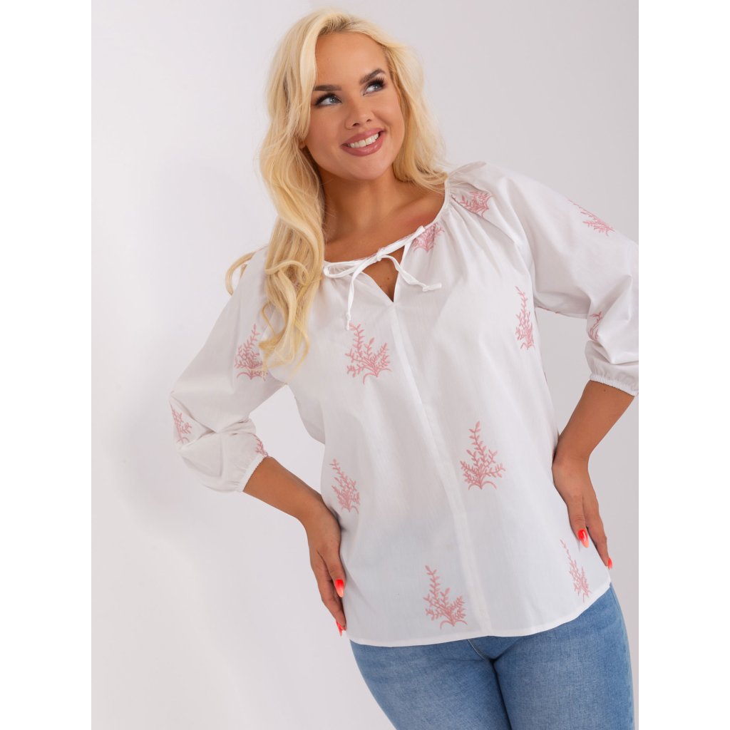 Bielo-béžová vzorovaná blúzka pre väčšie veľkosti.