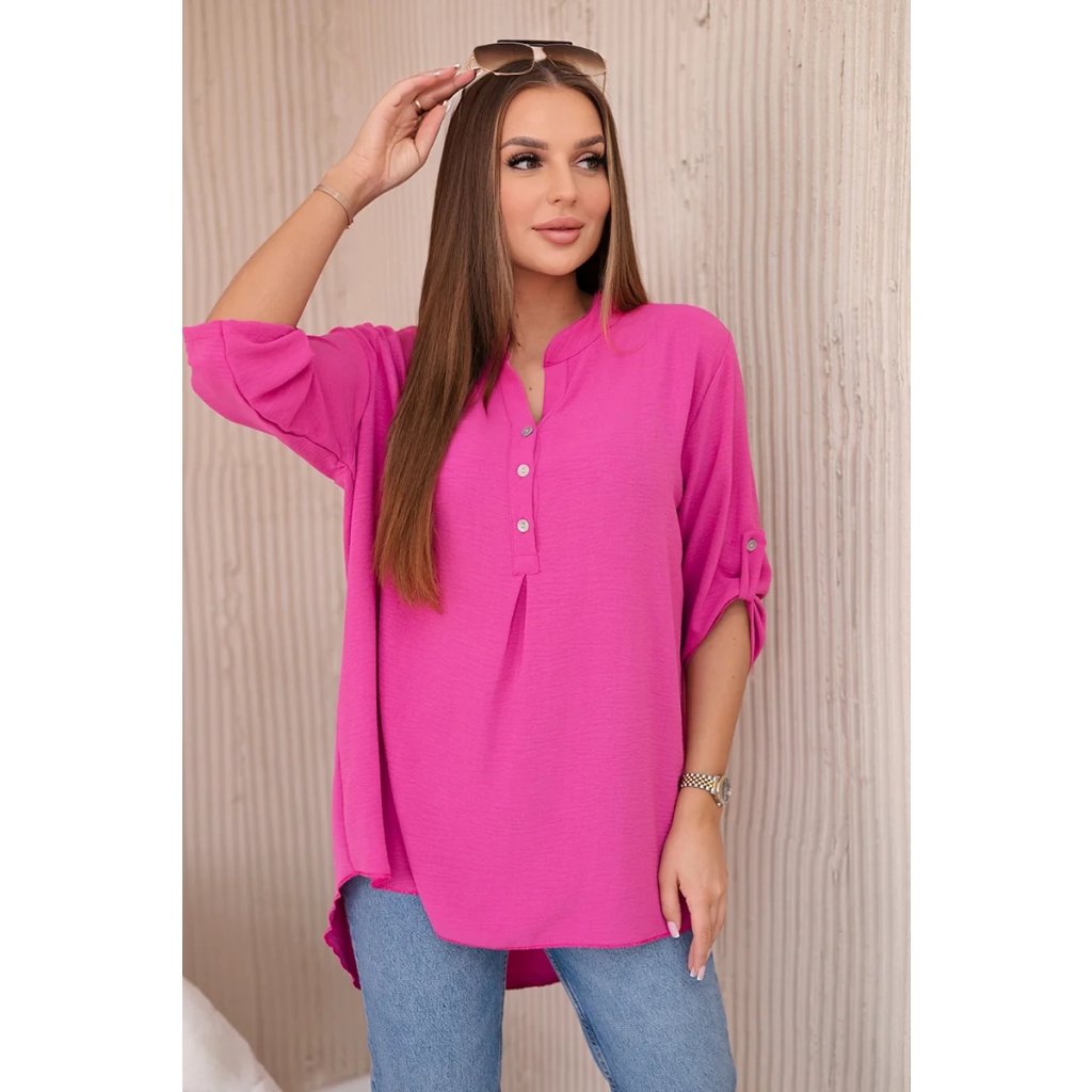 Objavte mimoriadnu eleganciu a pohodlie v prezentovanej blúzke s dlhším zadným dielom, výstrihom na gombíky a ohrnutými rukávmi, ktorá nielenže vyzerá mimoriadne štýlovo, ale poskytuje aj bezkonkurenčnú funkčnosť. Cíťte sa sebavedomo a elegantne v blúzke, ktorá podčiarkne váš jedinečný štýl. Dlhší zadný diel vytvára jemné a módne nepravidelné proporcie a výstrih na gombíky vám umožní prispôsobiť si blúzku podľa vašich predstáv. Vyhrnuté rukávy dodávajú blúzke ľahký a ležérny charakter, ideálny na rôzne príležitosti. Či už ide o obchodné stretnutie alebo pohodovú kávu s priateľmi, naša blúzka vám poskytne pohodlie a štýl v jednom. Nenechajte si ujsť príležitosť pridať túto jedinečnú blúzku do svojho šatníka! Objavte eleganciu, pohodlie a funkčnosť v jednom a podčiarknite svoj jedinečný štýl ešte dnes. Veľkosť je univerzálna a je vhodná pre ženy, ktoré nosia veľkosť S, M alebo L.
