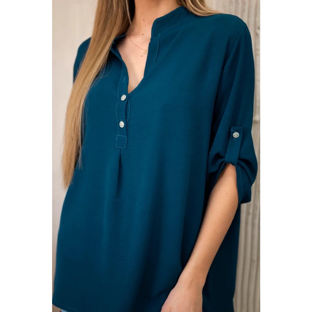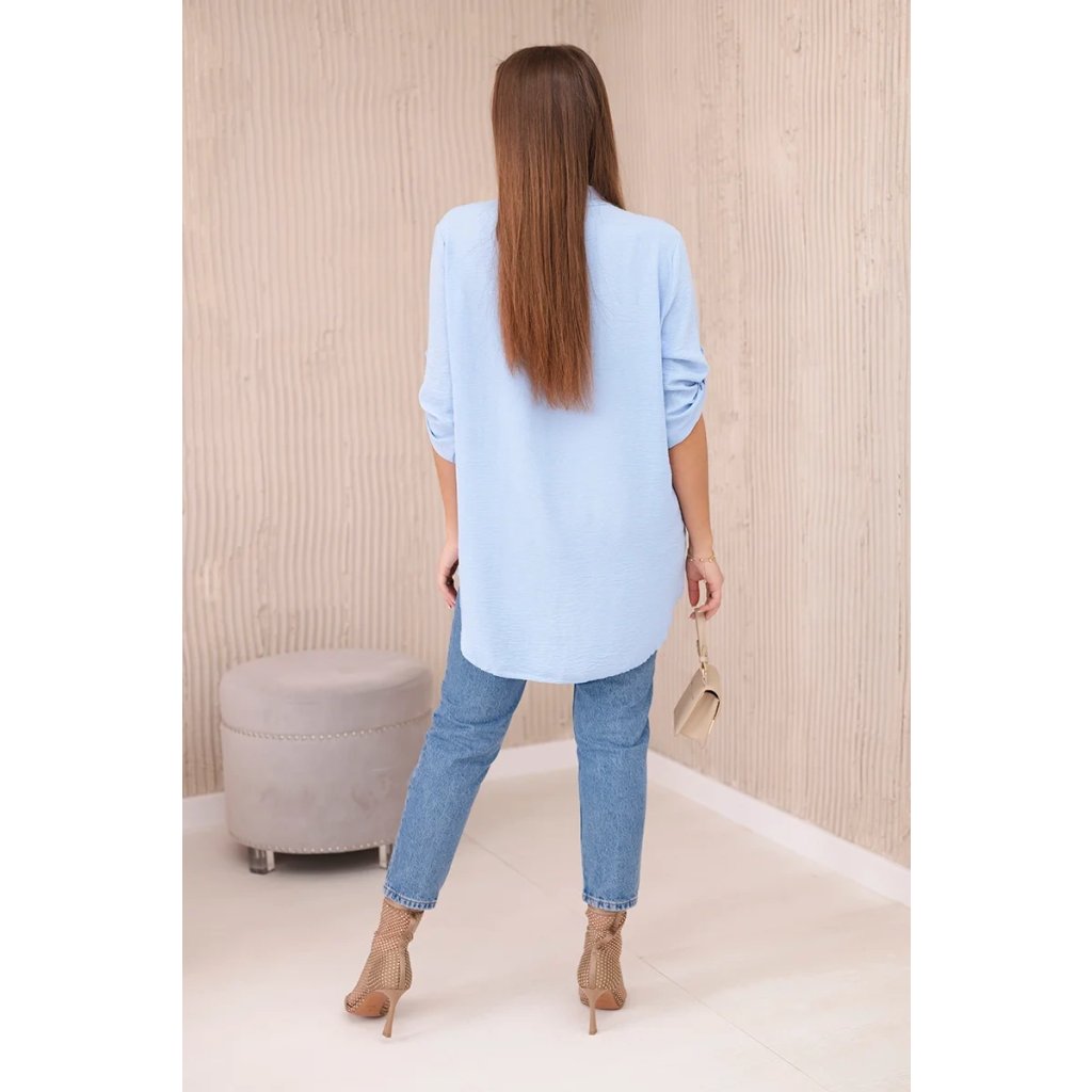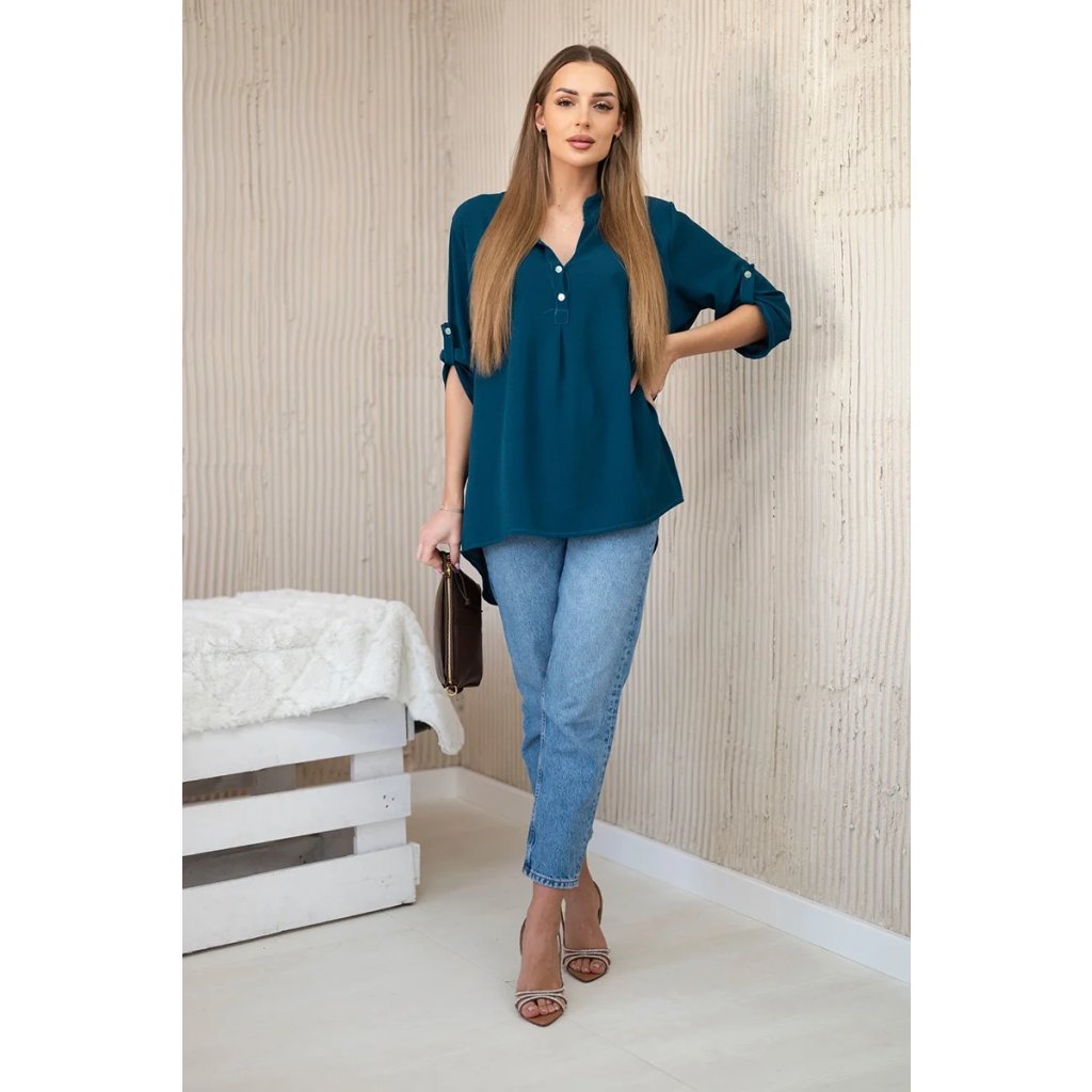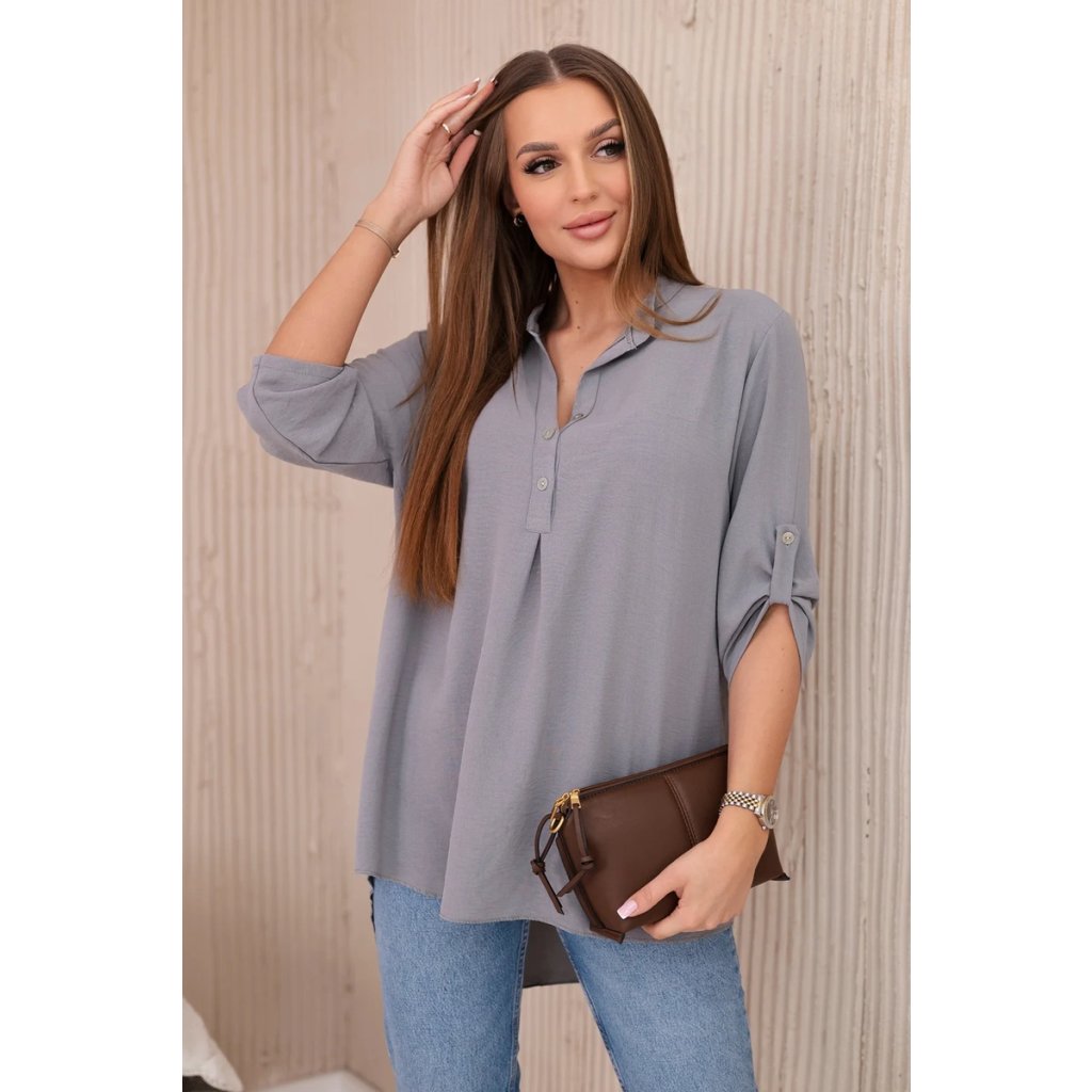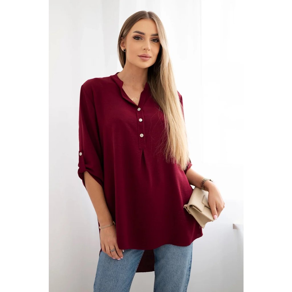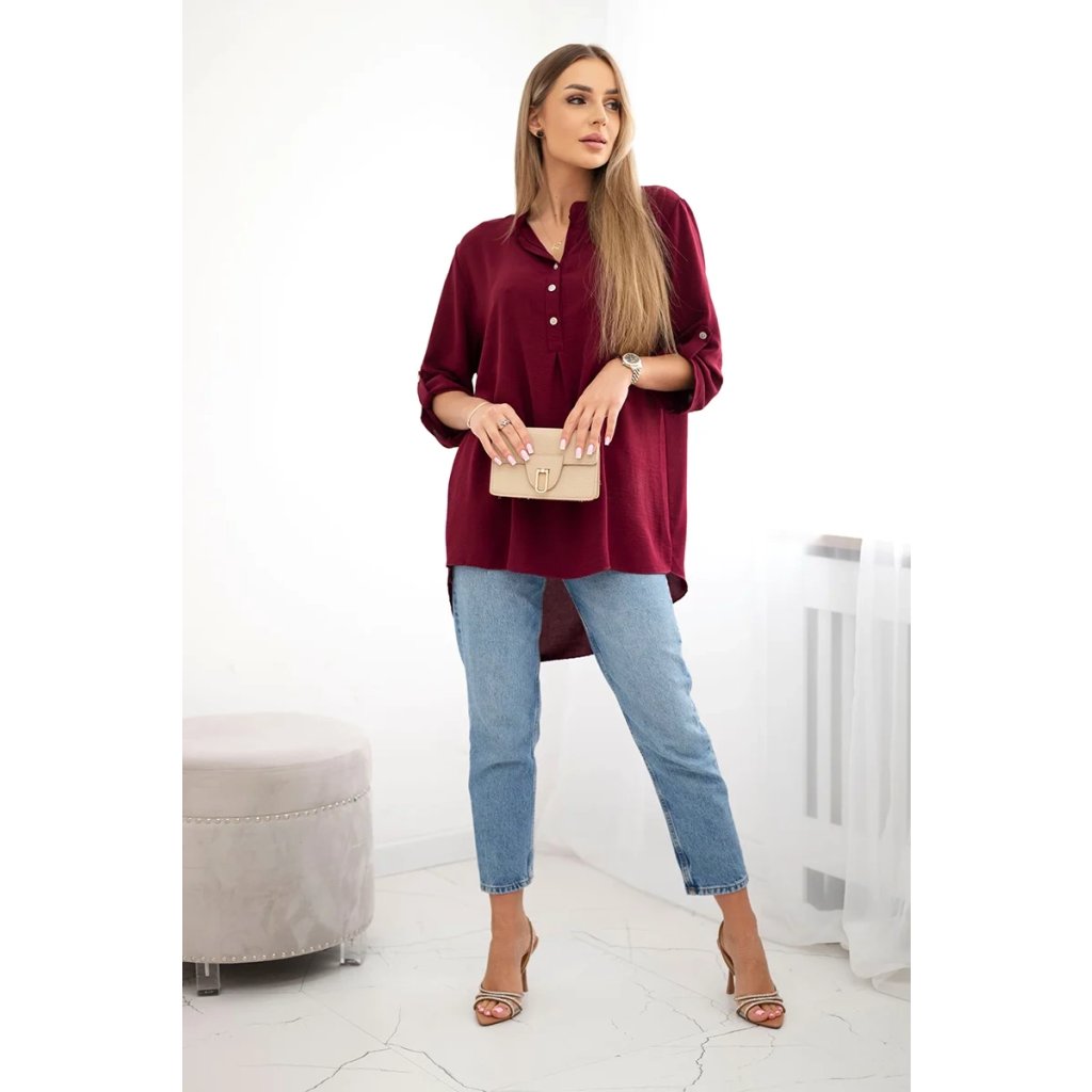 Objavte mimoriadnu eleganciu a pohodlie v prezentovanej blúzke s dlhším zadným dielom, výstrihom na gombíky a ohrnutými rukávmi, ktorá nielenže vyzerá mimoriadne štýlovo, ale poskytuje aj bezkonkurenčnú funkčnosť. Cíťte sa sebavedomo a elegantne v blúzke, ktorá podčiarkne váš jedinečný štýl. Dlhší zadný diel vytvára jemné a módne nepravidelné proporcie a výstrih na gombíky vám umožní prispôsobiť si blúzku podľa vašich predstáv. Vyhrnuté rukávy dodávajú blúzke ľahký a ležérny charakter, ideálny na rôzne príležitosti. Či už ide o obchodné stretnutie alebo pohodovú kávu s priateľmi, naša blúzka vám poskytne pohodlie a štýl v jednom. Nenechajte si ujsť príležitosť pridať túto jedinečnú blúzku do svojho šatníka! Objavte eleganciu, pohodlie a funkčnosť v jednom a podčiarknite svoj jedinečný štýl ešte dnes. Veľkosť je univerzálna a je vhodná pre ženy, ktoré nosia veľkosť S, M alebo L.