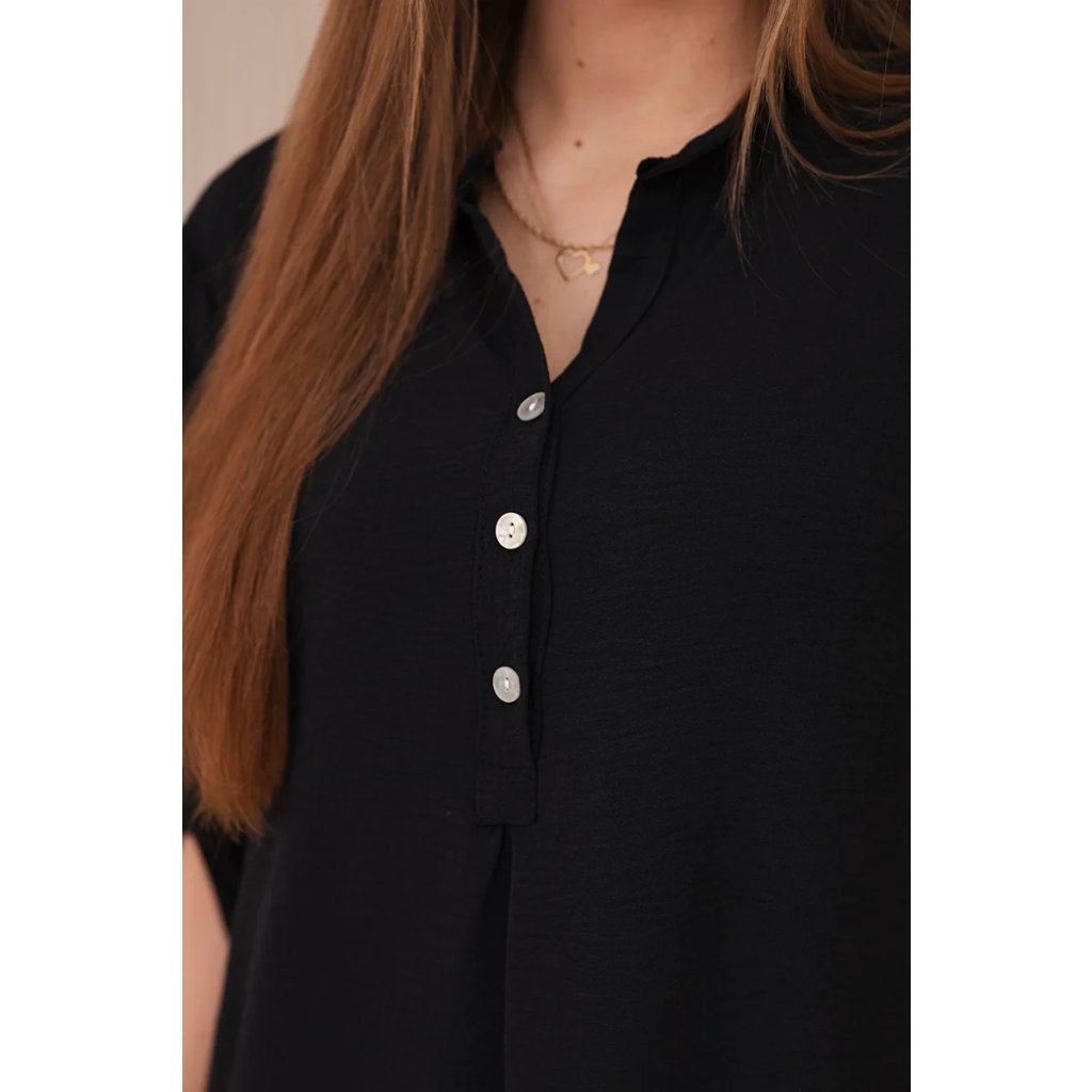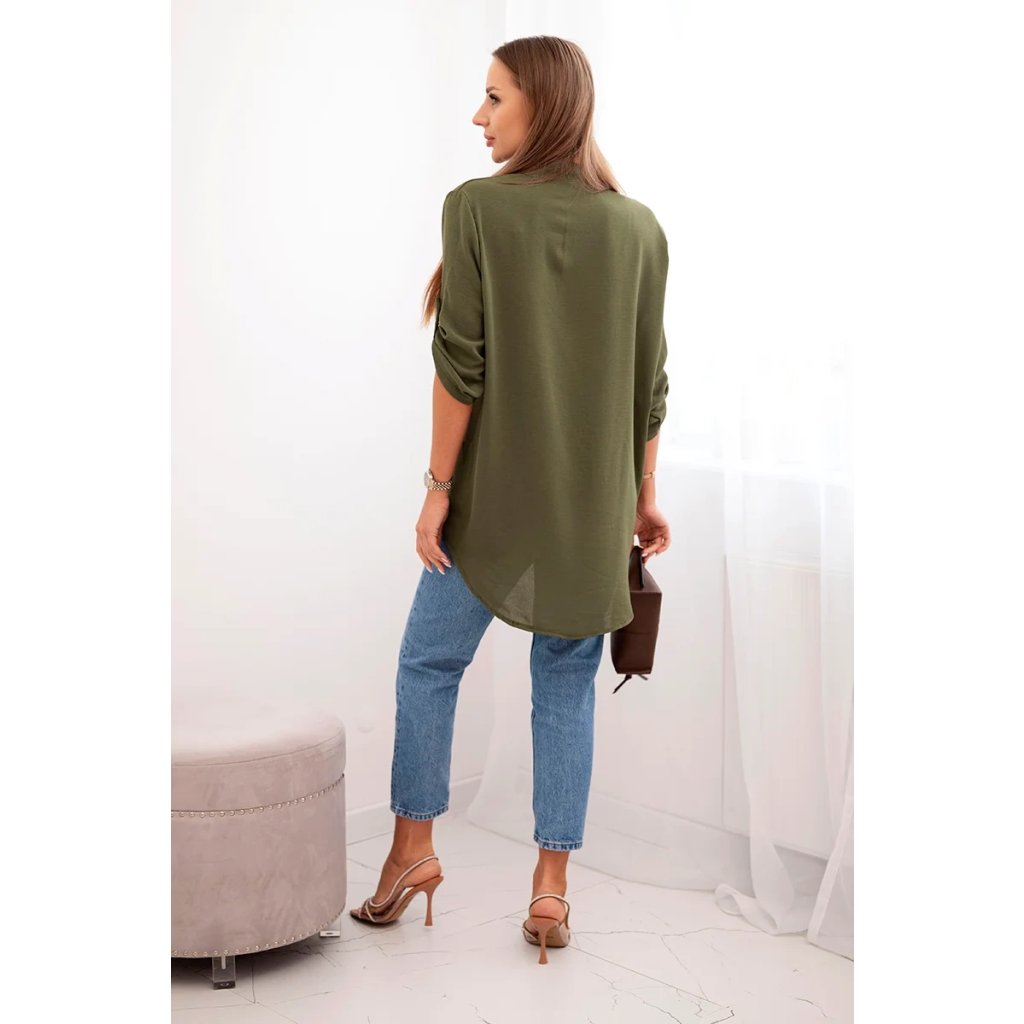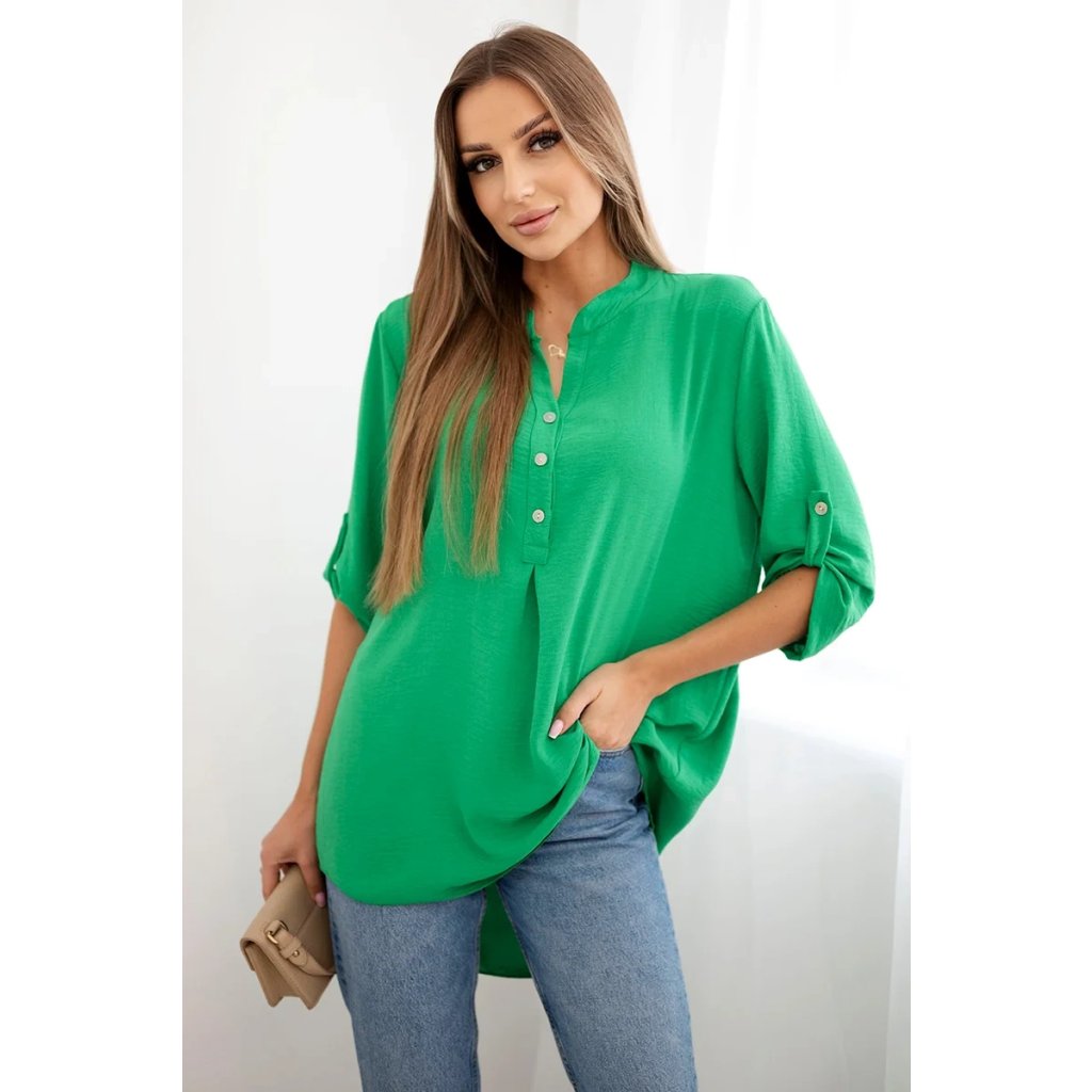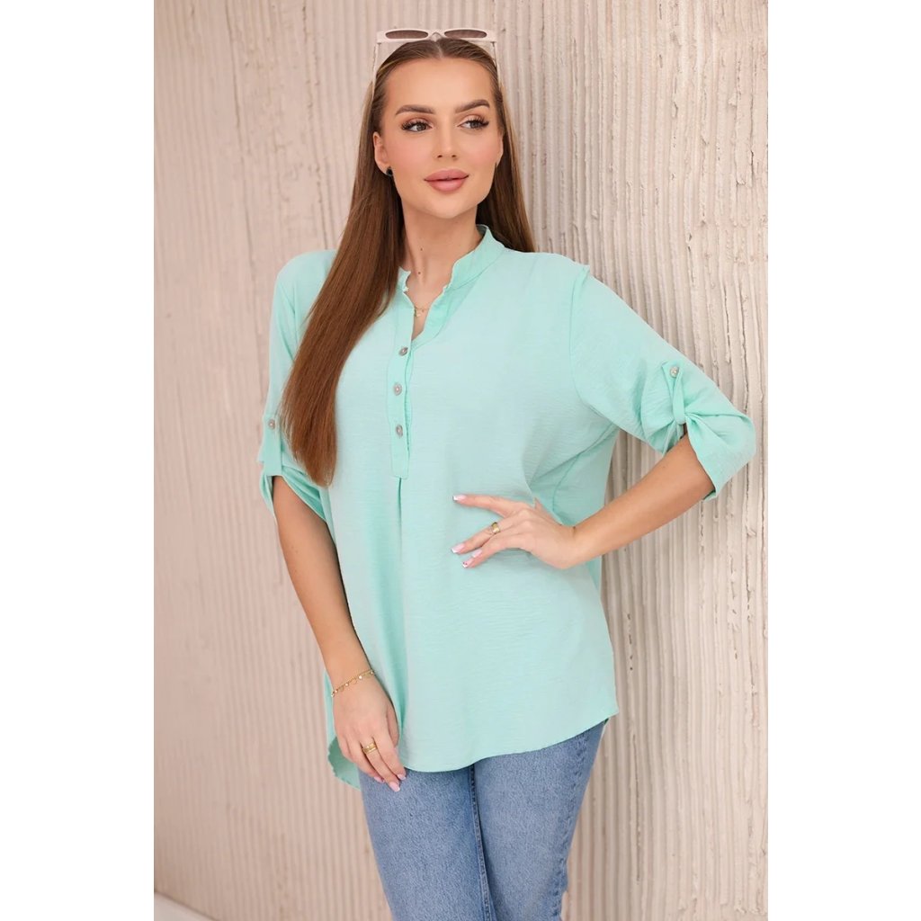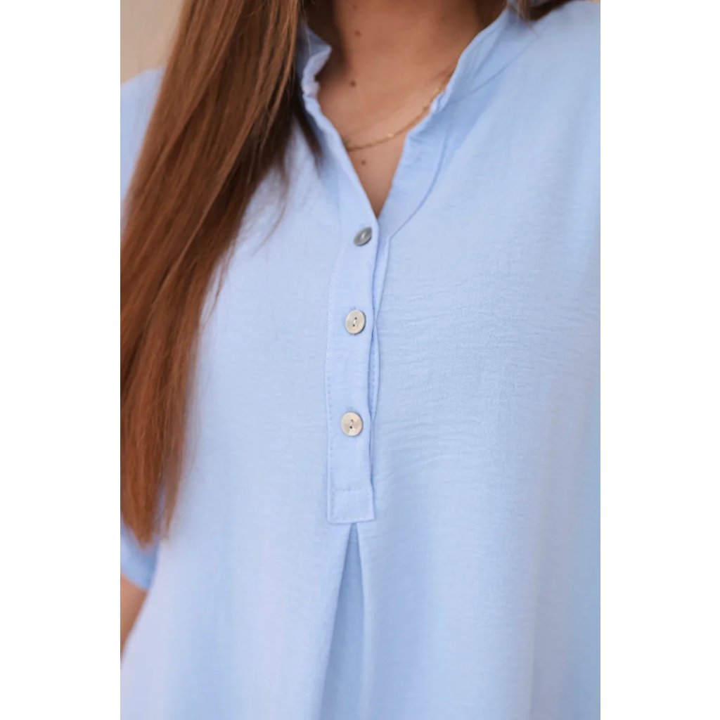 Objavte mimoriadnu eleganciu a pohodlie v prezentovanej blúzke s dlhším zadným dielom, výstrihom na gombíky a ohrnutými rukávmi, ktorá nielenže vyzerá mimoriadne štýlovo, ale poskytuje aj bezkonkurenčnú funkčnosť. Cíťte sa sebavedomo a elegantne v blúzke, ktorá podčiarkne váš jedinečný štýl. Dlhší zadný diel vytvára jemné a módne nepravidelné proporcie a výstrih na gombíky vám umožní prispôsobiť si blúzku podľa vašich predstáv. Vyhrnuté rukávy dodávajú blúzke ľahký a ležérny charakter, ideálny na rôzne príležitosti. Či už ide o obchodné stretnutie alebo pohodovú kávu s priateľmi, naša blúzka vám poskytne pohodlie a štýl v jednom. Nenechajte si ujsť príležitosť pridať túto jedinečnú blúzku do svojho šatníka! Objavte eleganciu, pohodlie a funkčnosť v jednom a podčiarknite svoj jedinečný štýl ešte dnes. Veľkosť je univerzálna a je vhodná pre ženy, ktoré nosia veľkosť S, M alebo L.