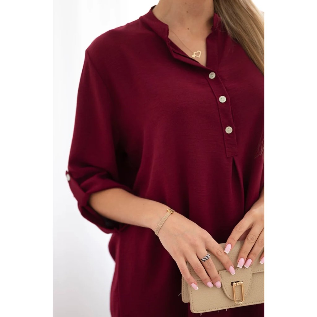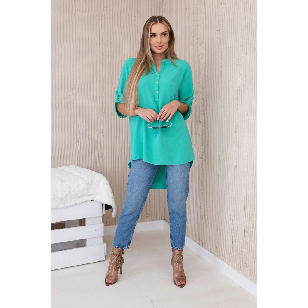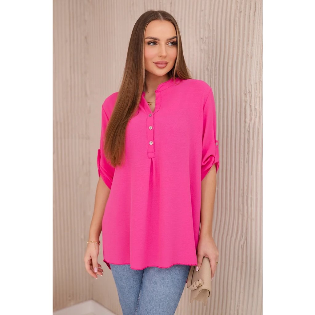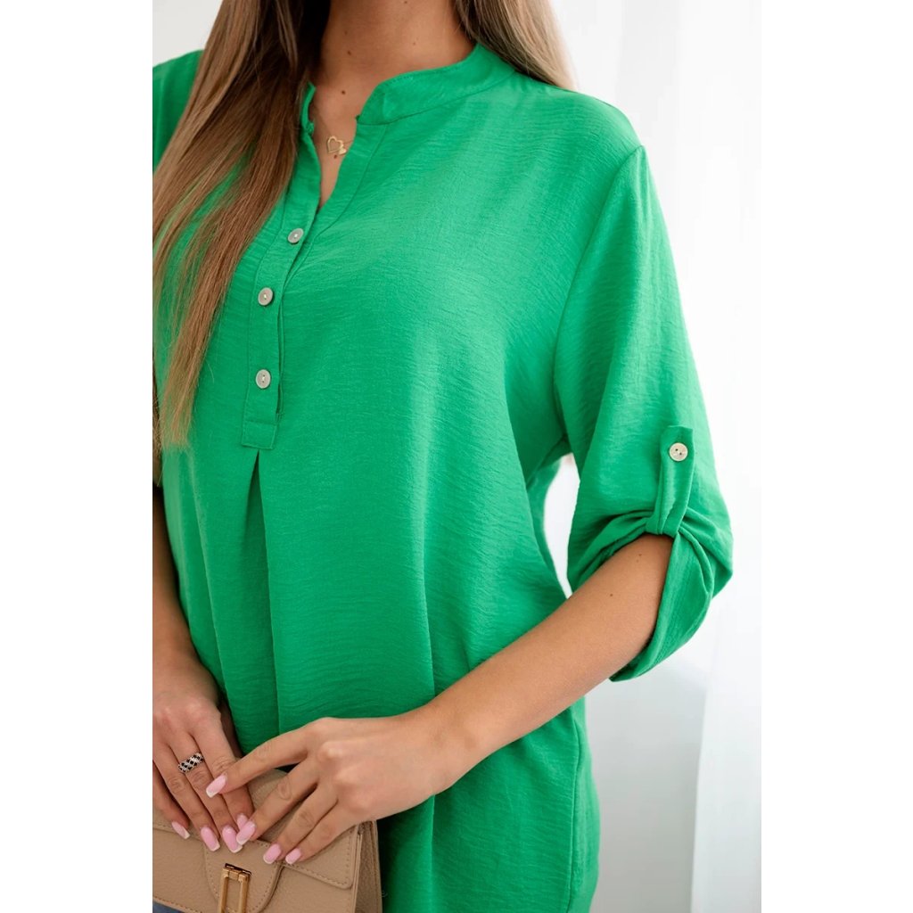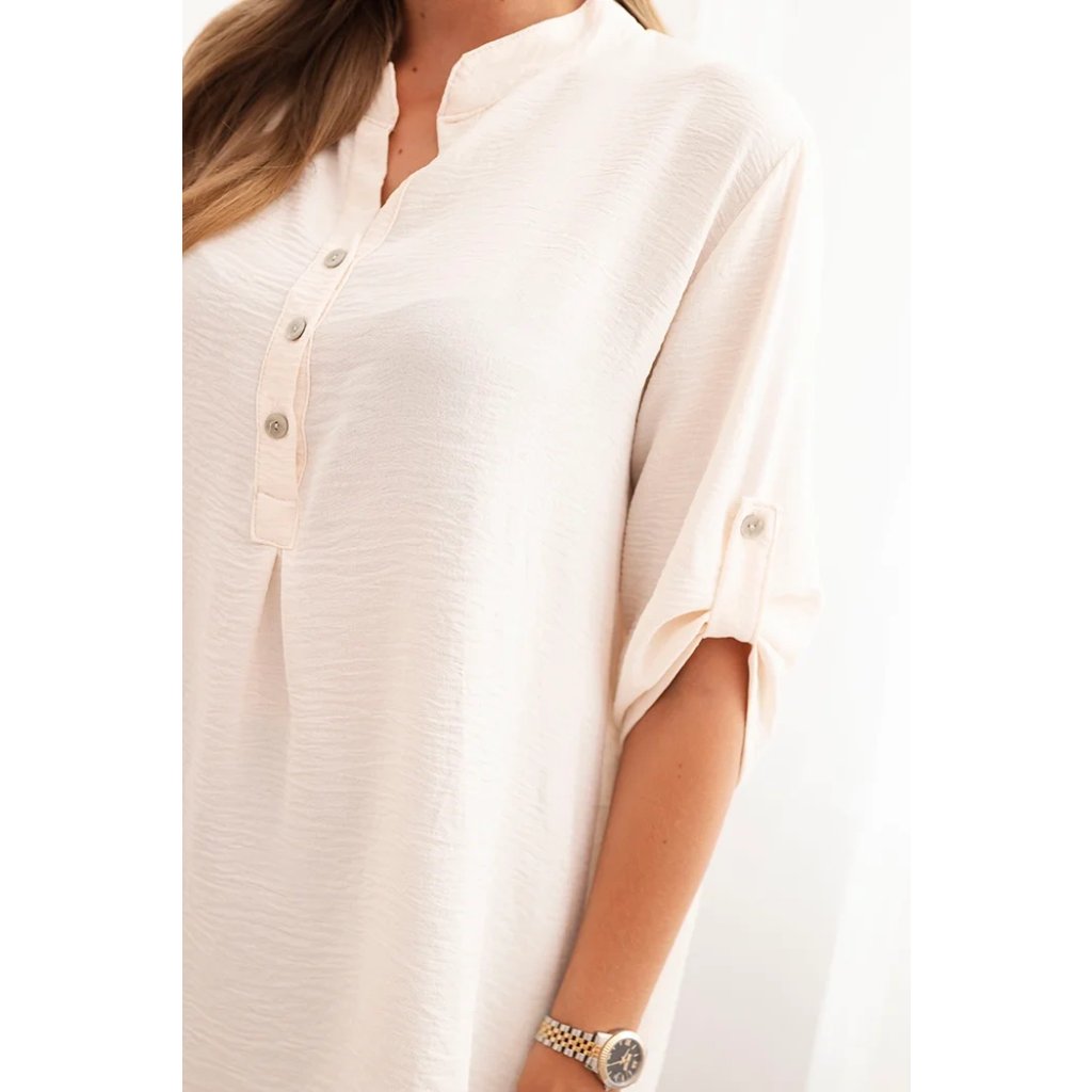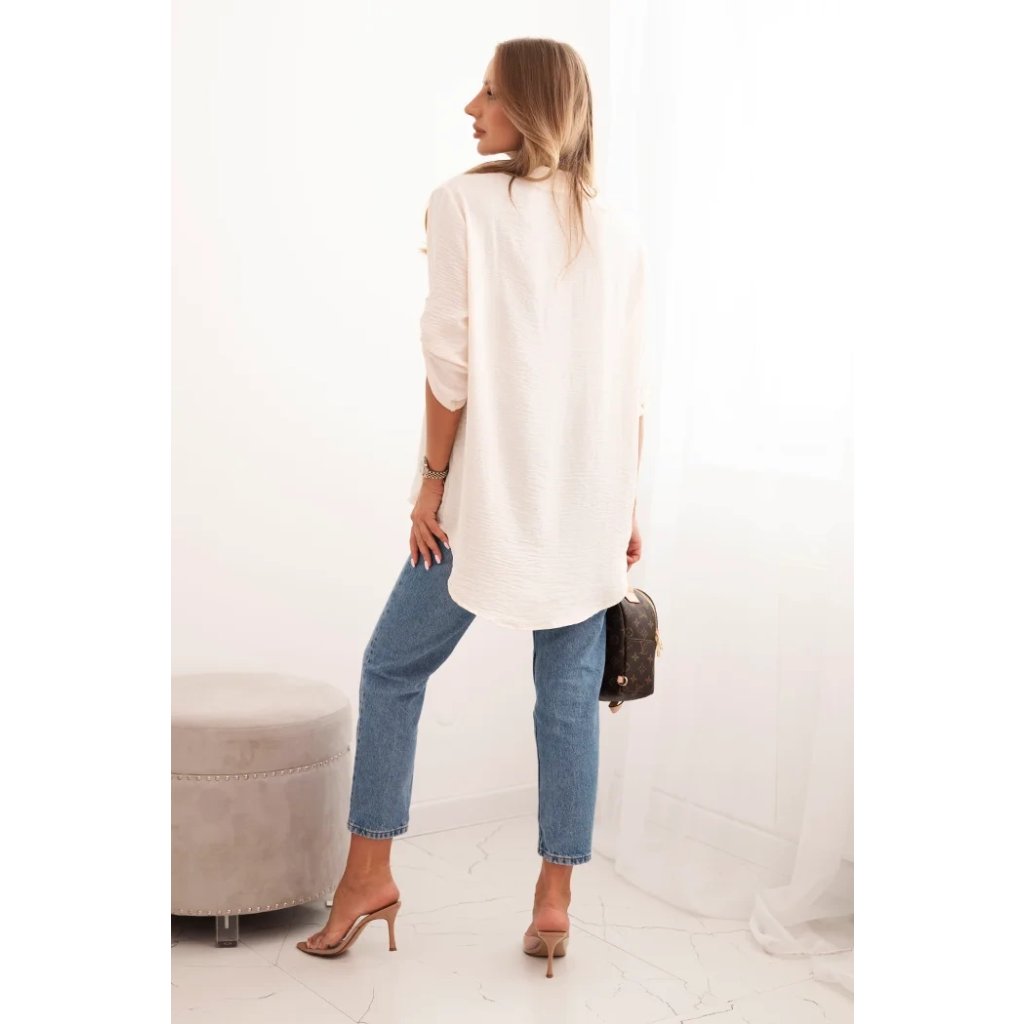 Objavte mimoriadnu eleganciu a pohodlie v prezentovanej blúzke s dlhším zadným dielom, výstrihom na gombíky a ohrnutými rukávmi, ktorá nielenže vyzerá mimoriadne štýlovo, ale poskytuje aj bezkonkurenčnú funkčnosť. Cíťte sa sebavedomo a elegantne v blúzke, ktorá podčiarkne váš jedinečný štýl. Dlhší zadný diel vytvára jemné a módne nepravidelné proporcie a výstrih na gombíky vám umožní prispôsobiť si blúzku podľa vašich predstáv. Vyhrnuté rukávy dodávajú blúzke ľahký a ležérny charakter, ideálny na rôzne príležitosti. Či už ide o obchodné stretnutie alebo pohodovú kávu s priateľmi, naša blúzka vám poskytne pohodlie a štýl v jednom. Nenechajte si ujsť príležitosť pridať túto jedinečnú blúzku do svojho šatníka! Objavte eleganciu, pohodlie a funkčnosť v jednom a podčiarknite svoj jedinečný štýl ešte dnes. Veľkosť je univerzálna a je vhodná pre ženy, ktoré nosia veľkosť S, M alebo L.