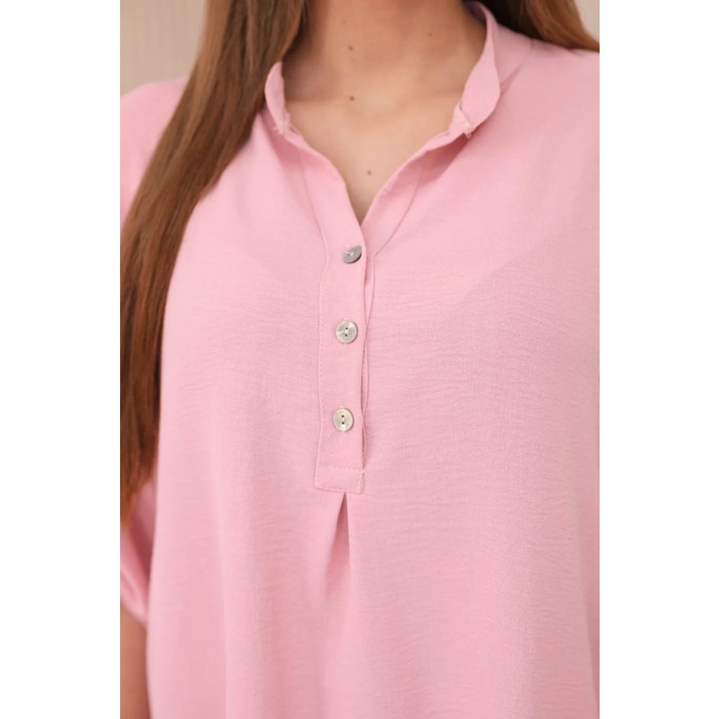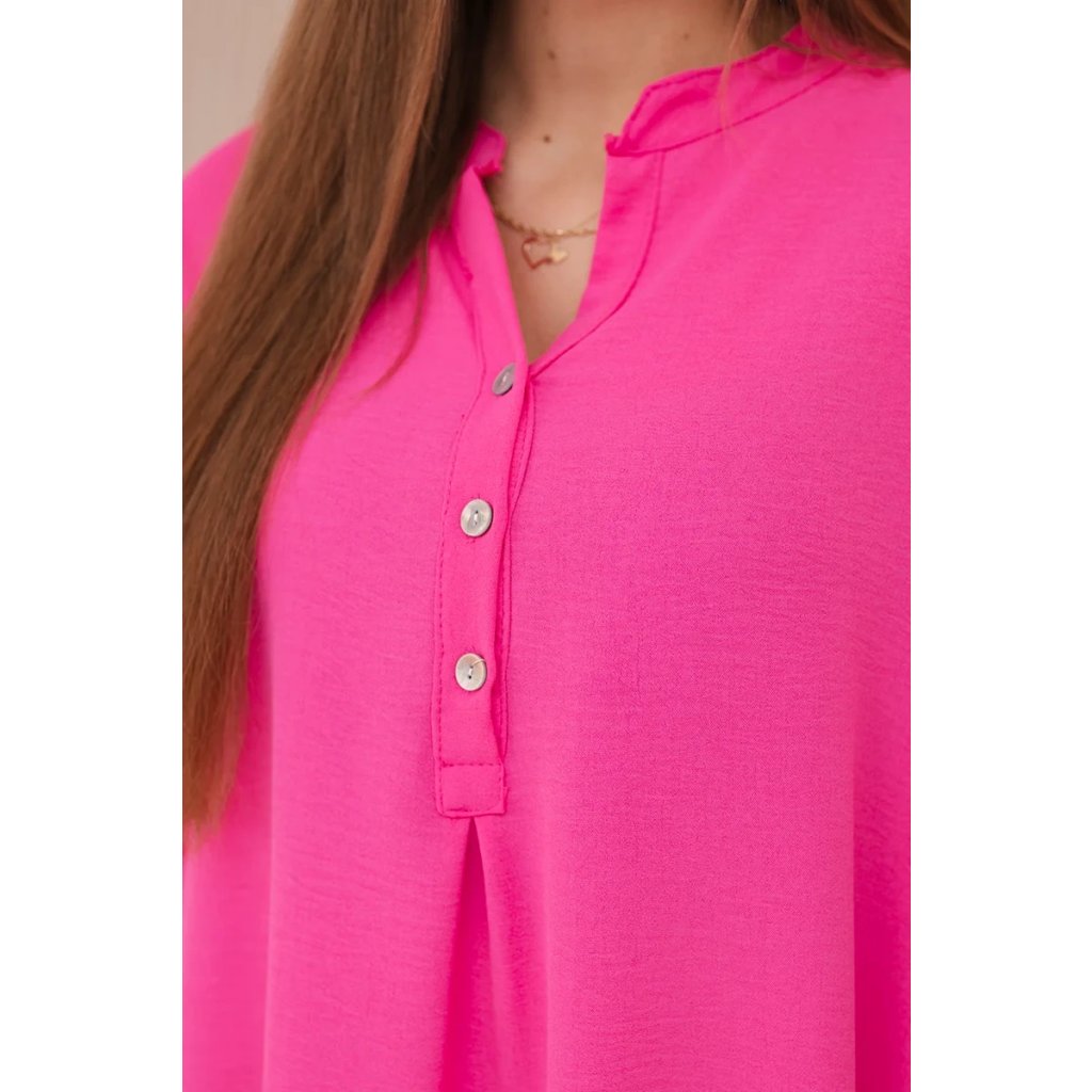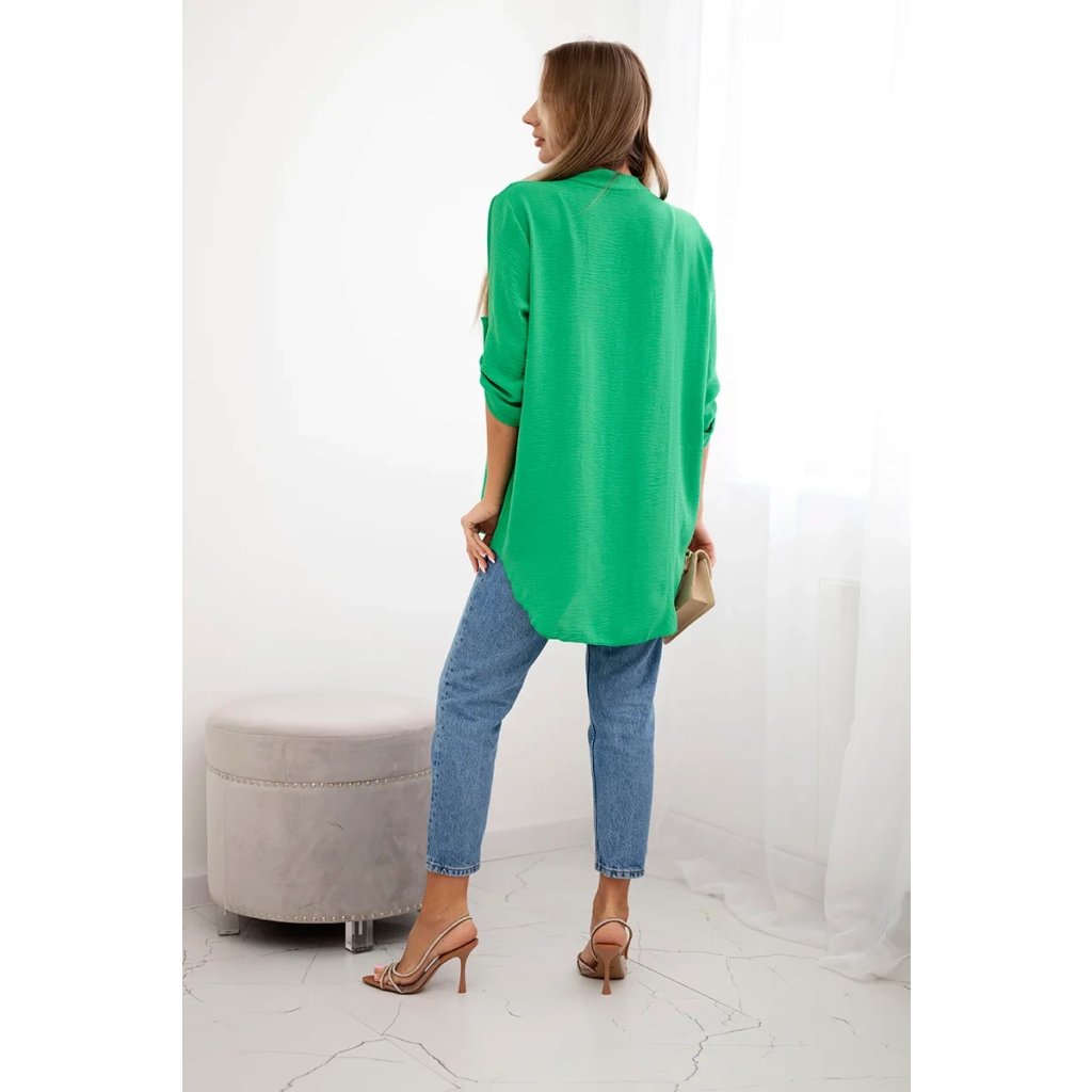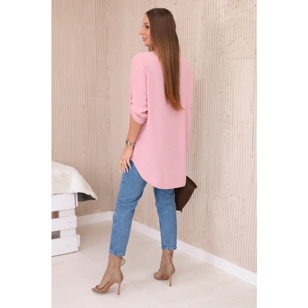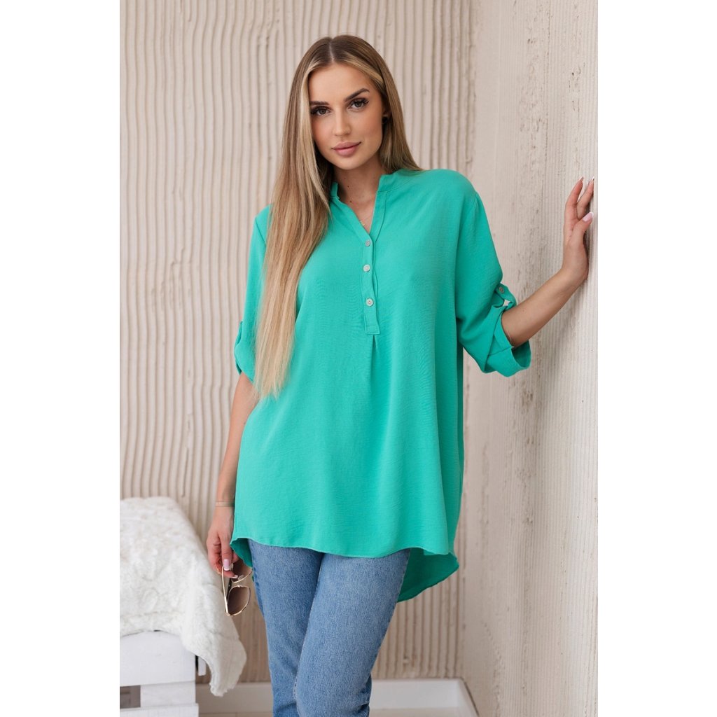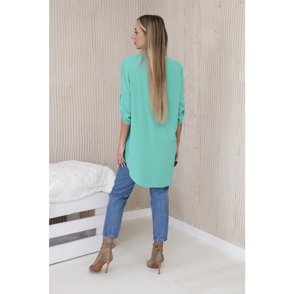 Objavte mimoriadnu eleganciu a pohodlie v prezentovanej blúzke s dlhším zadným dielom, výstrihom na gombíky a ohrnutými rukávmi, ktorá nielenže vyzerá mimoriadne štýlovo, ale poskytuje aj bezkonkurenčnú funkčnosť. Cíťte sa sebavedomo a elegantne v blúzke, ktorá podčiarkne váš jedinečný štýl. Dlhší zadný diel vytvára jemné a módne nepravidelné proporcie a výstrih na gombíky vám umožní prispôsobiť si blúzku podľa vašich predstáv. Vyhrnuté rukávy dodávajú blúzke ľahký a ležérny charakter, ideálny na rôzne príležitosti. Či už ide o obchodné stretnutie alebo pohodovú kávu s priateľmi, naša blúzka vám poskytne pohodlie a štýl v jednom. Nenechajte si ujsť príležitosť pridať túto jedinečnú blúzku do svojho šatníka! Objavte eleganciu, pohodlie a funkčnosť v jednom a podčiarknite svoj jedinečný štýl ešte dnes. Veľkosť je univerzálna a je vhodná pre ženy, ktoré nosia veľkosť S, M alebo L.