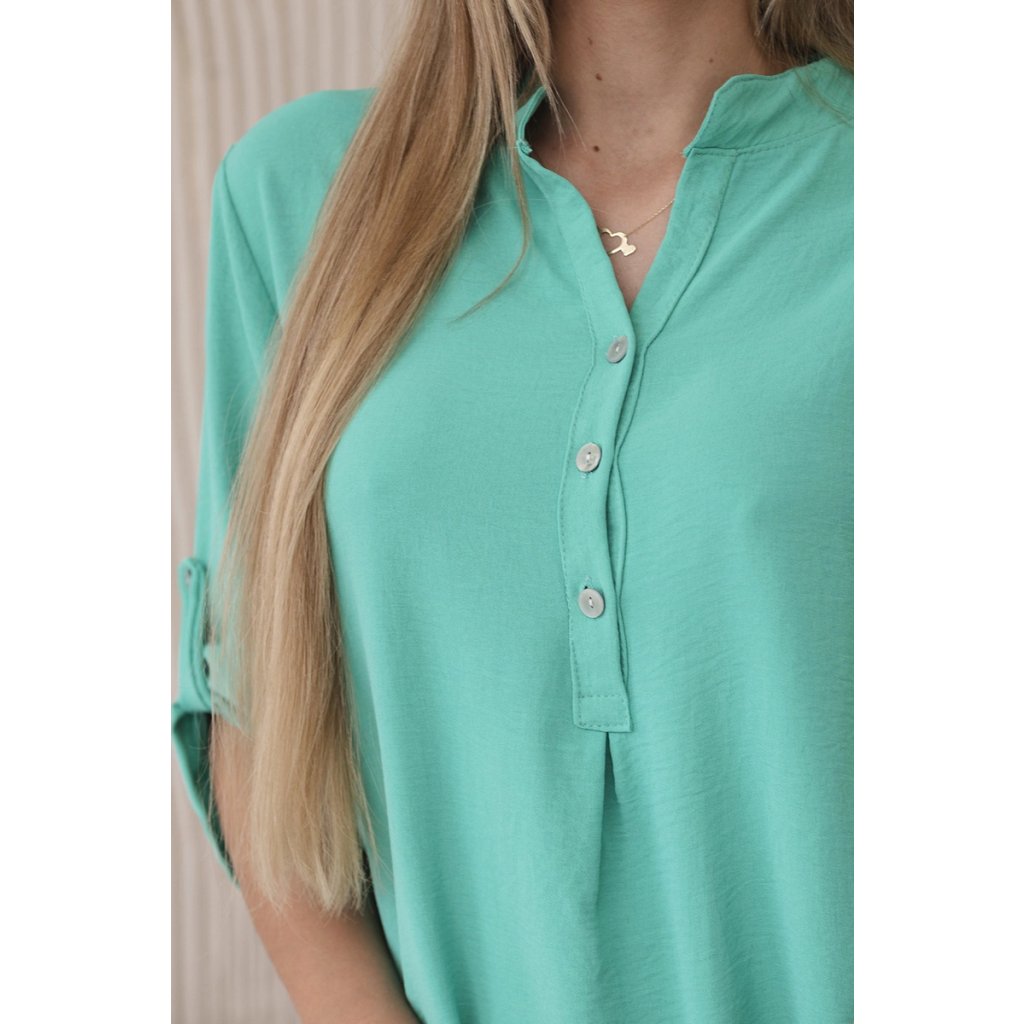 Objavte mimoriadnu eleganciu a pohodlie v prezentovanej blúzke s dlhším zadným dielom, výstrihom na gombíky a ohrnutými rukávmi, ktorá nielenže vyzerá mimoriadne štýlovo, ale poskytuje aj bezkonkurenčnú funkčnosť. Cíťte sa sebavedomo a elegantne v blúzke, ktorá podčiarkne váš jedinečný štýl. Dlhší zadný diel vytvára jemné a módne nepravidelné proporcie a výstrih na gombíky vám umožní prispôsobiť si blúzku podľa vašich predstáv. Vyhrnuté rukávy dodávajú blúzke ľahký a ležérny charakter, ideálny na rôzne príležitosti. Či už ide o obchodné stretnutie alebo pohodovú kávu s priateľmi, naša blúzka vám poskytne pohodlie a štýl v jednom. Nenechajte si ujsť príležitosť pridať túto jedinečnú blúzku do svojho šatníka! Objavte eleganciu, pohodlie a funkčnosť v jednom a podčiarknite svoj jedinečný štýl ešte dnes. Veľkosť je univerzálna a je vhodná pre ženy, ktoré nosia veľkosť S, M alebo L.