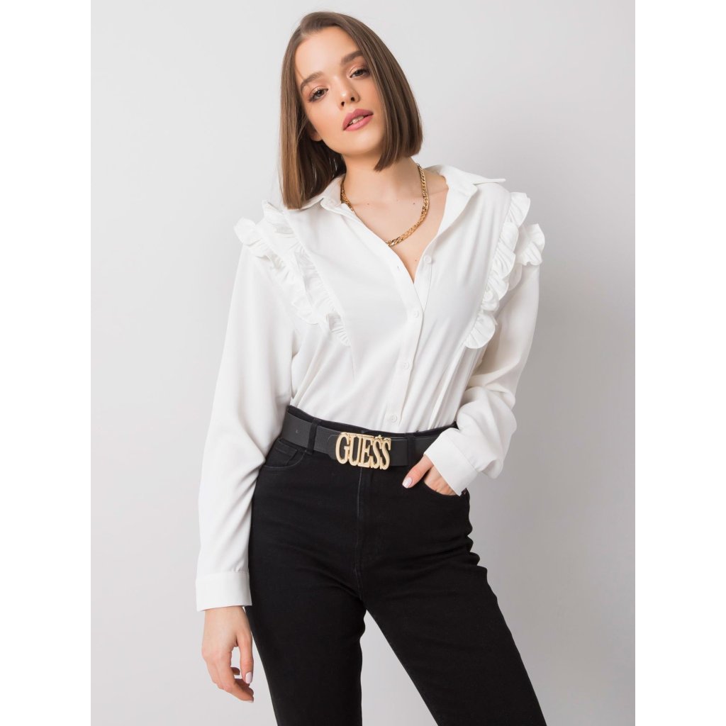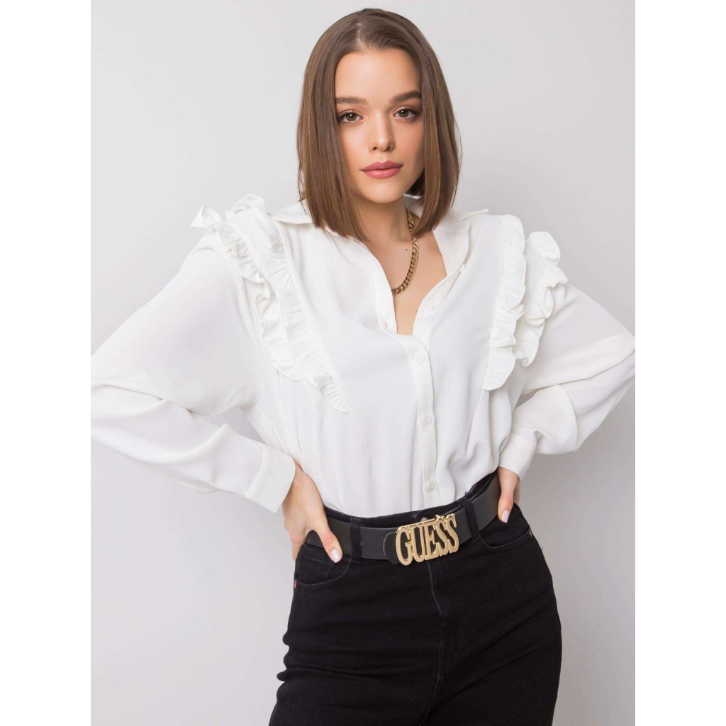 Dámska blúzka s dlhými rukávmi a volánmi.