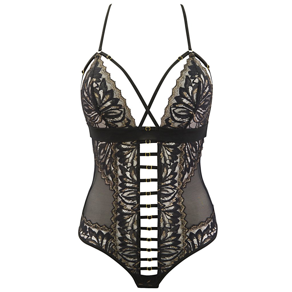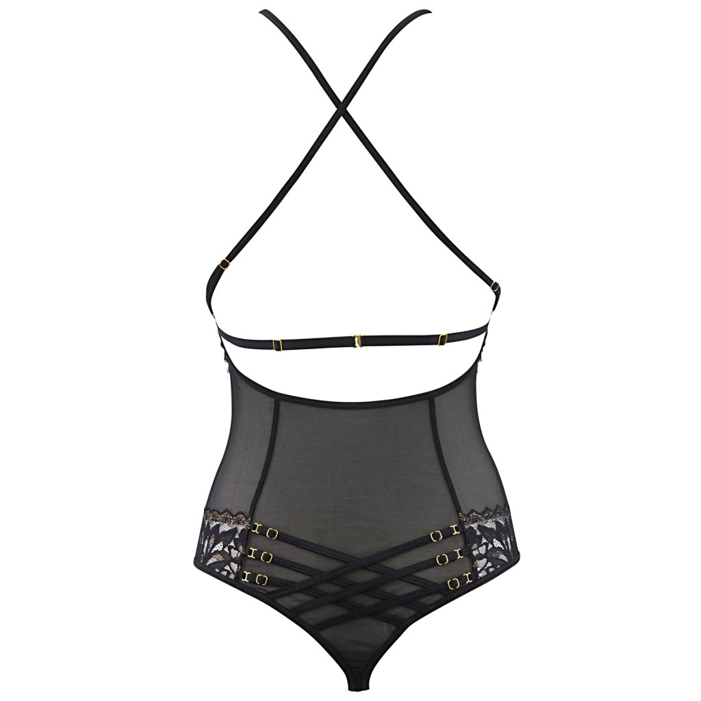 Romantické telo v kombinácii klasickej čiernej farby a jemných zlatých akcentov.- z elastického tylu a kvetinovej čipky
