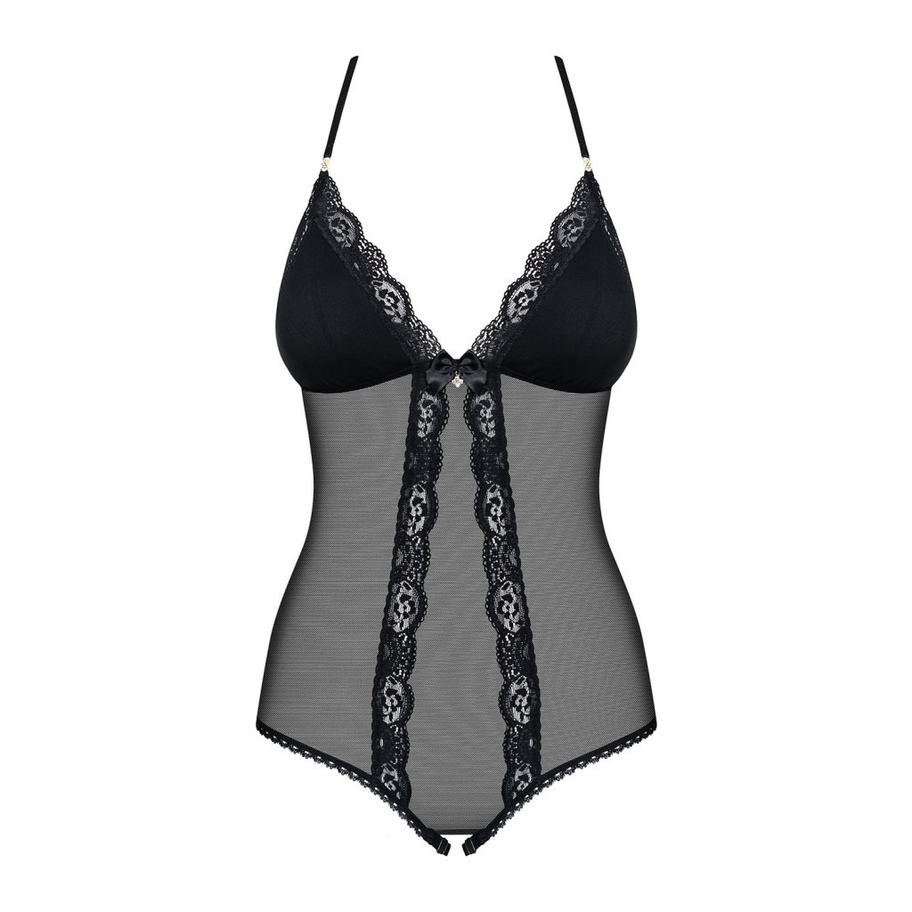 841-TED-1Nádherné aspekty, ktoré si určite zamilujete:pikantná košieľka z čistej sieťoviny a zvodnej čipky nastaviteľné ramienka na chrbte - pre skvelé prispôsobenie a sexy vzhľad mäkké, vystužené košíčky podprsenky - jemne podopierajú a fantasticky zvýrazňujú prsia lesklé kamienky (neobsahujú nikel - žiadne alergické reakcie) na koncoch ramienok a pod prsiami koketné mašličky - na prednej a . Matnezbedný otvorený rozkrok s nastaviteľnými ramienkami veľmi príjemný, dokonale elastický materiál materiál: 94 % polyamid, 6 % elastanDodatočné parametre