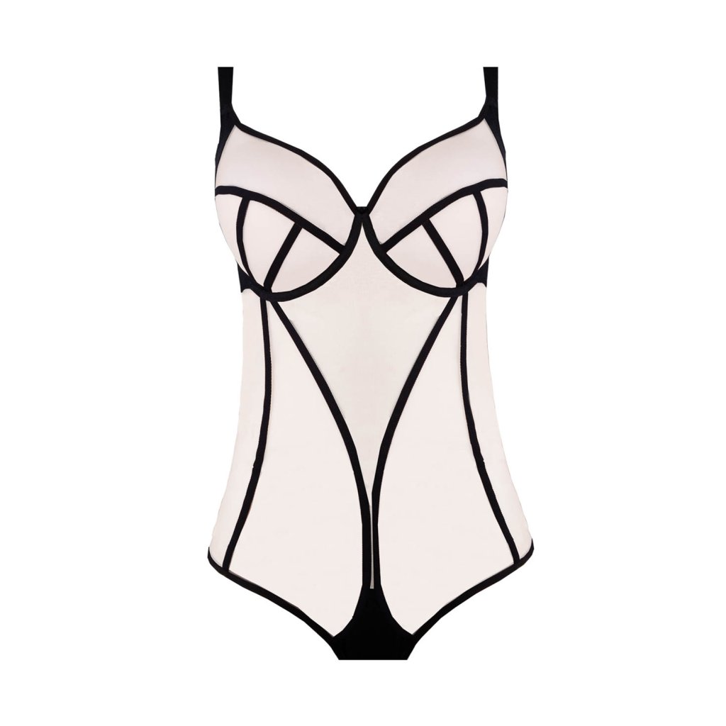 Sexi body v béžovo-čiernej farbe.- nevystužené poháre