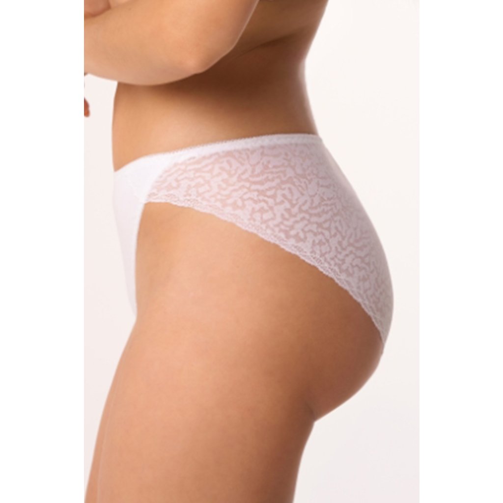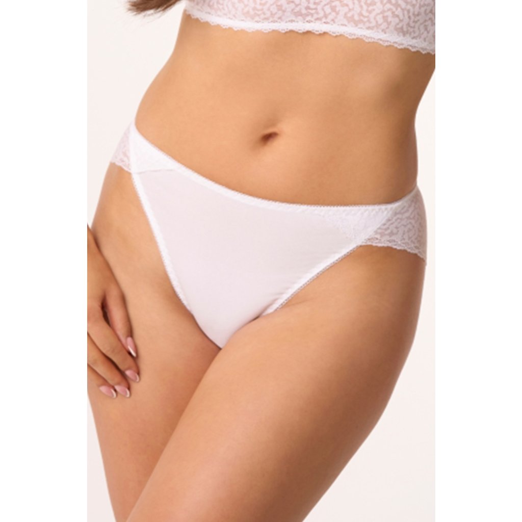 Klasické dámske nohavičky - predná časť z bavlny - boky a zadná časť z jemnej čipky Zloženie: 92% bavlna, 8% elastanDodatočné parametre