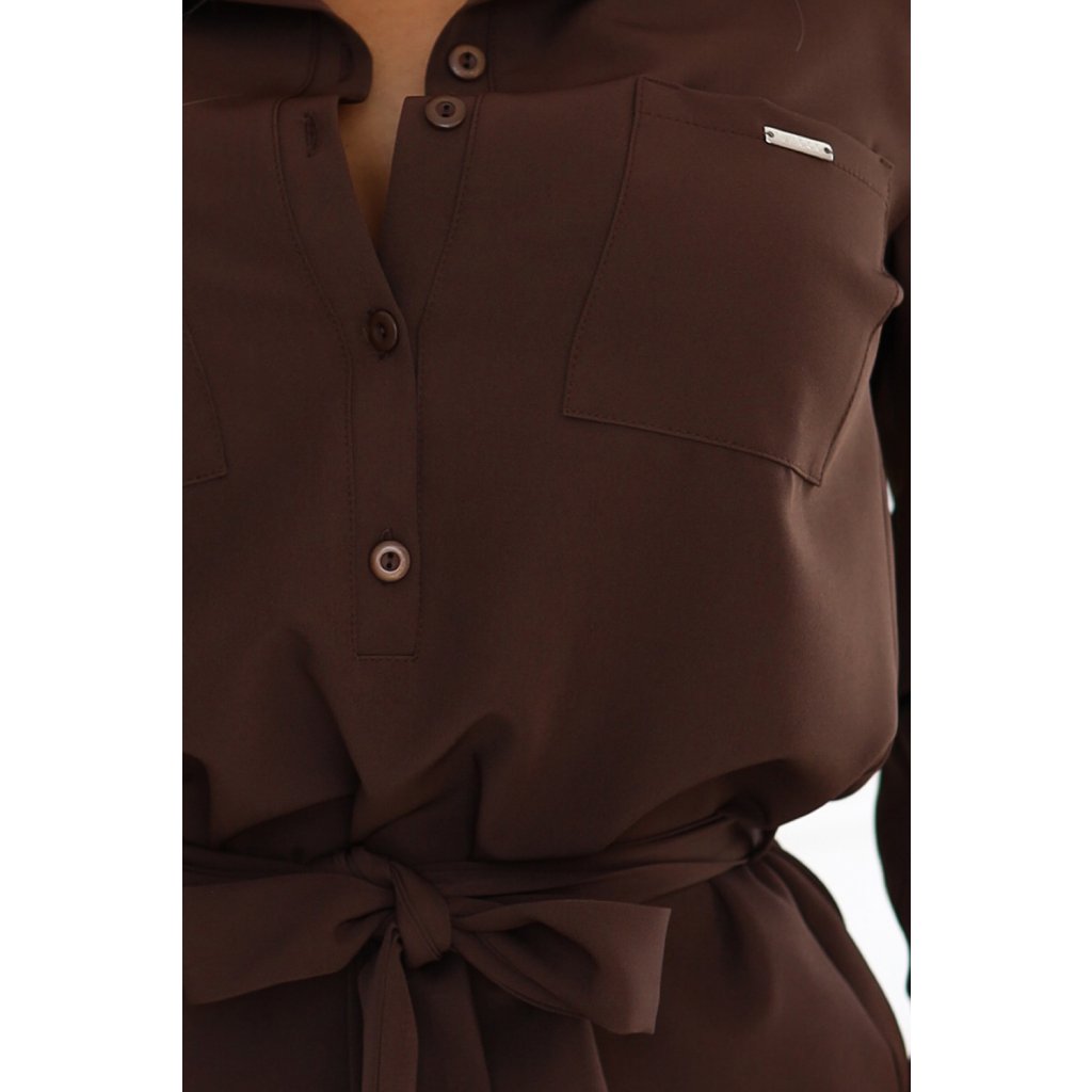 CAMILLE Košeľové šaty s vreckami a zaväzovaním - čokoládové 284-5
