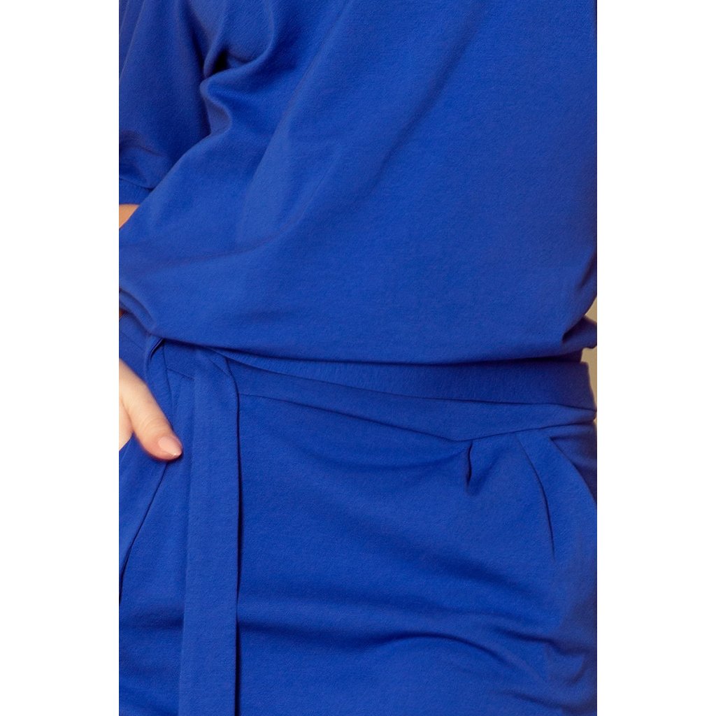 Cassie - modré šaty s výstrihom, viazaním a vreckami - príjemný na dotyk bavlnený materiál. Poľská výroba. Značka numoco.