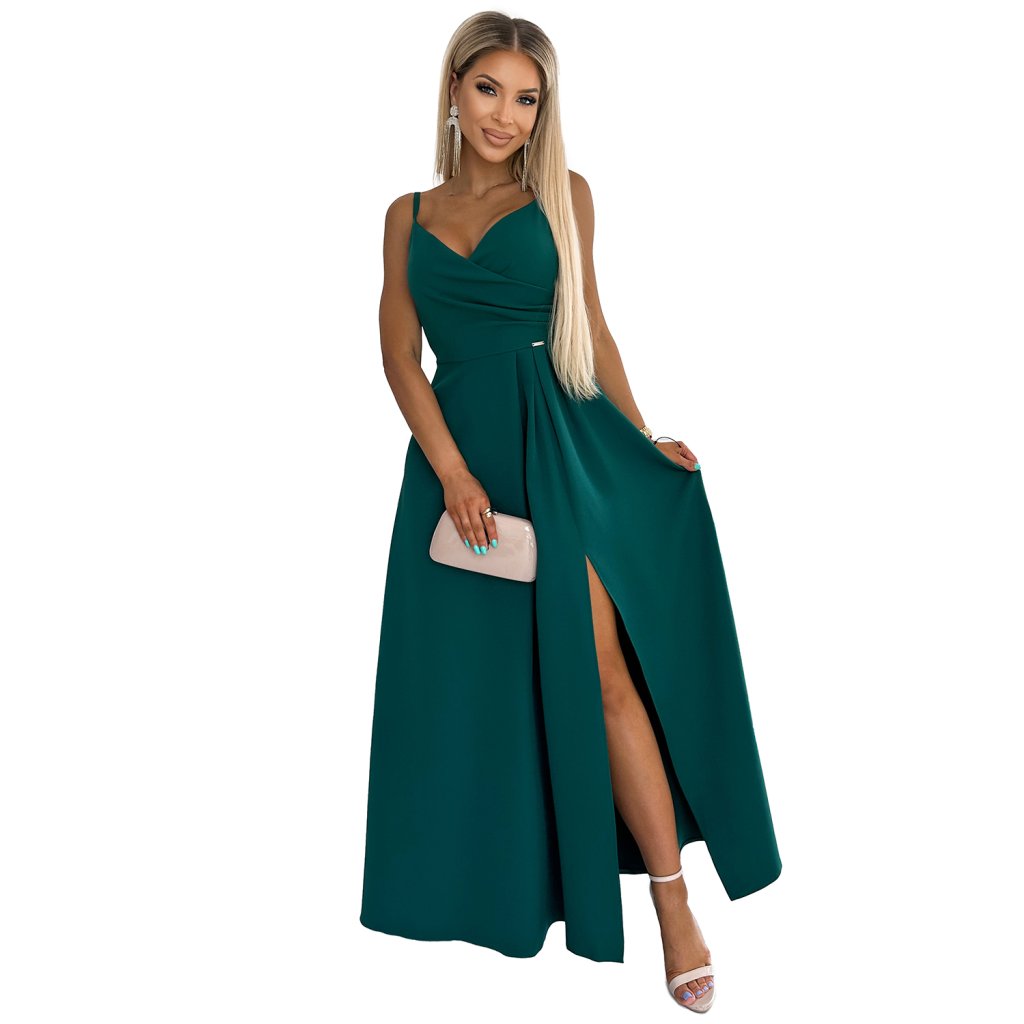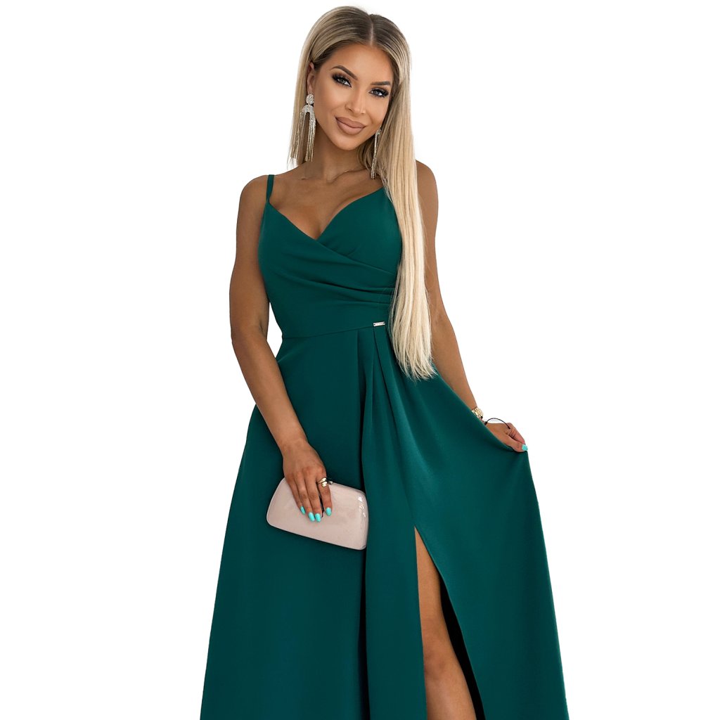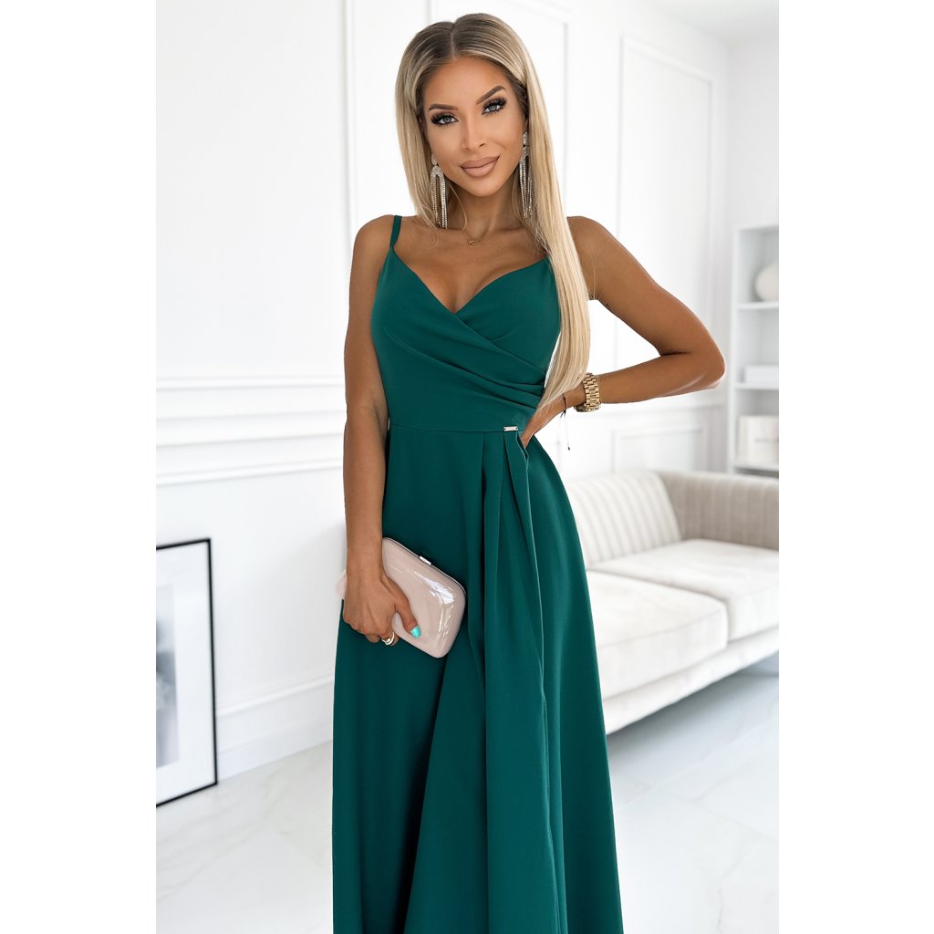 Numoco CHIARA elegantné maxi dlhé šaty na ramienka - zelené 299-11