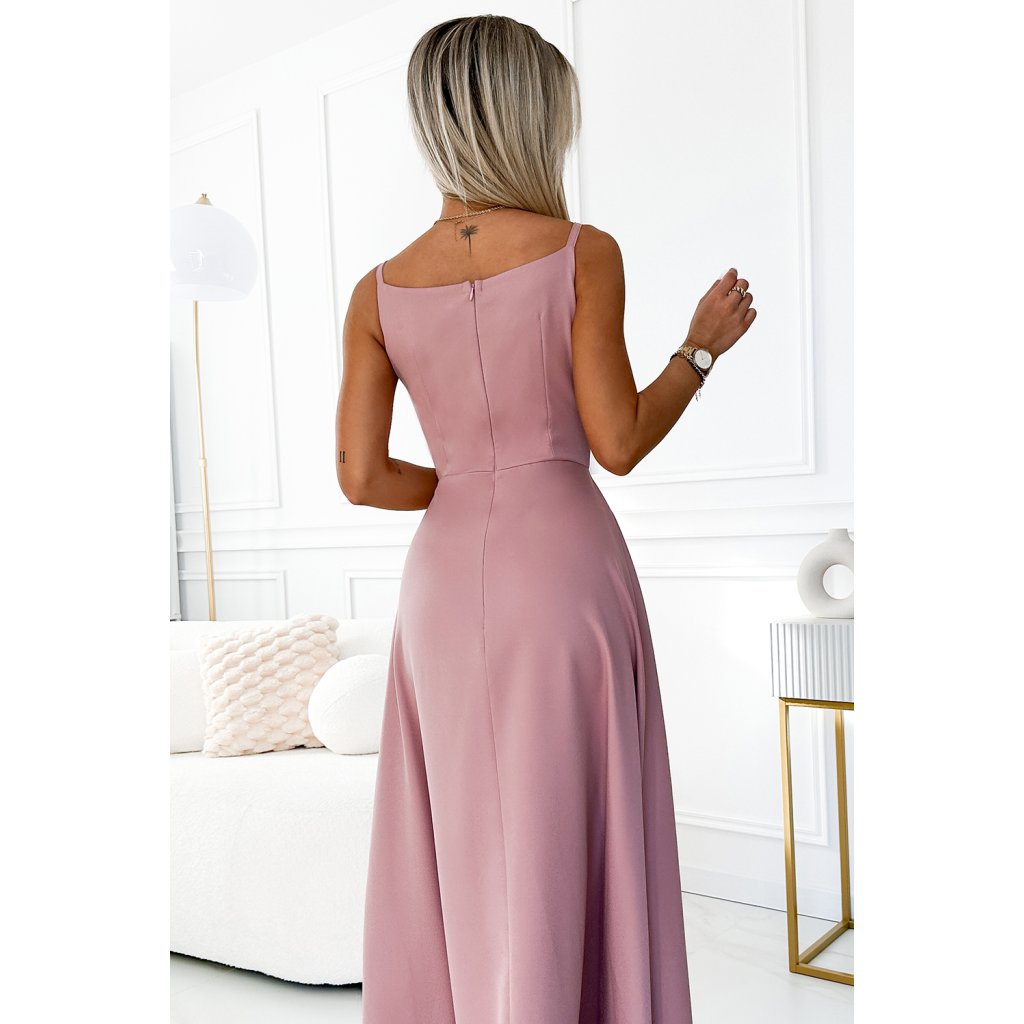 CHIARA elegantné maxi šaty s popruhmi - špinavo ružová 299-16
