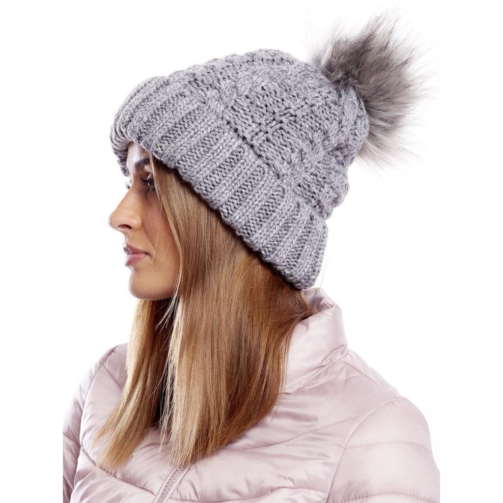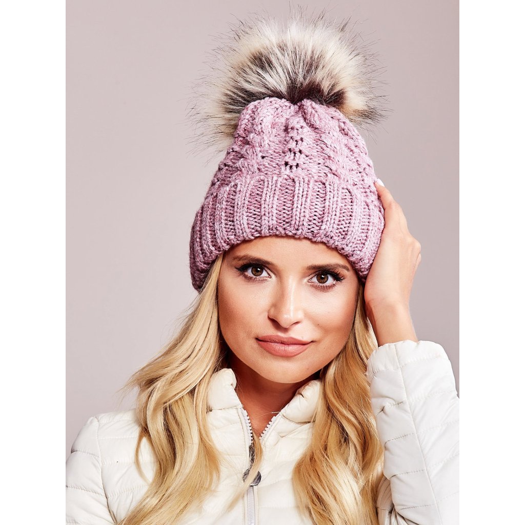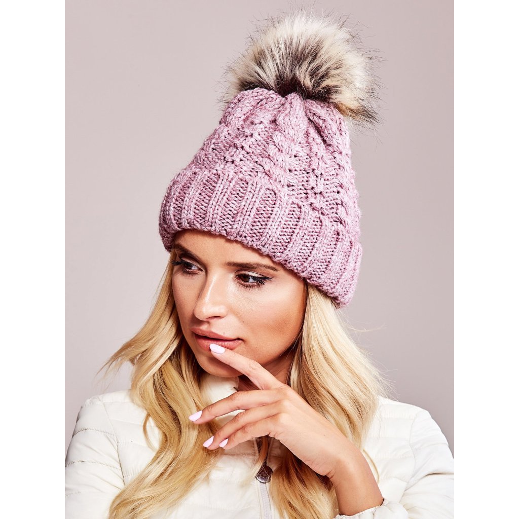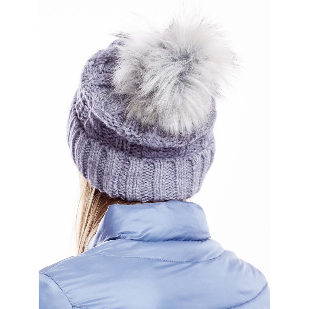 Modrá pletená čiapka s vrkôčikovým vzorom