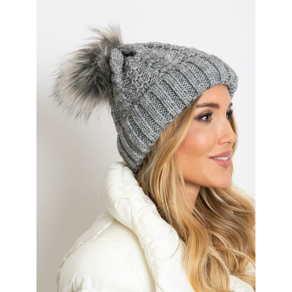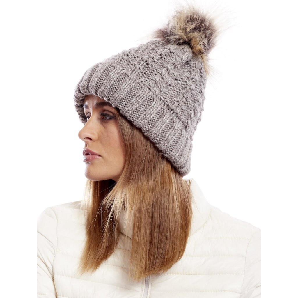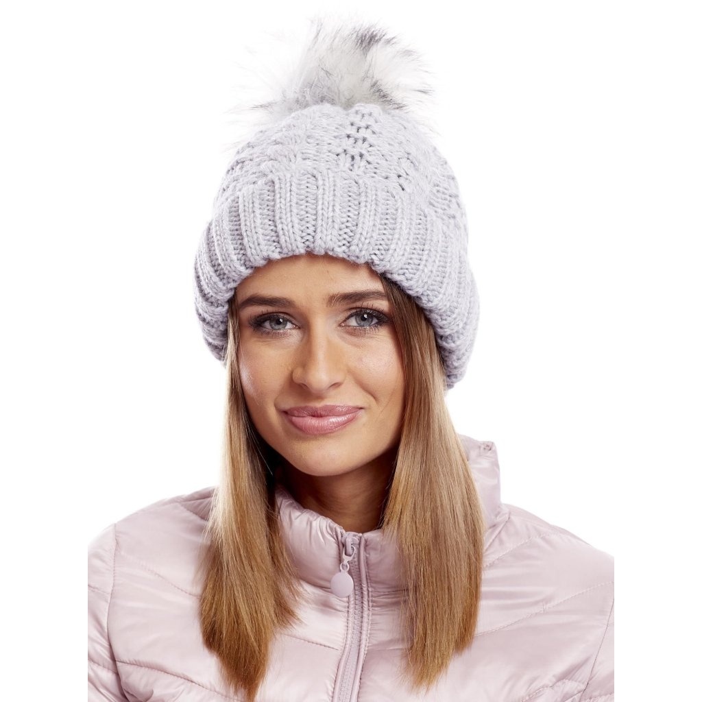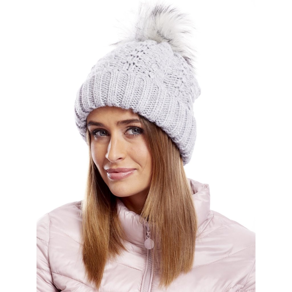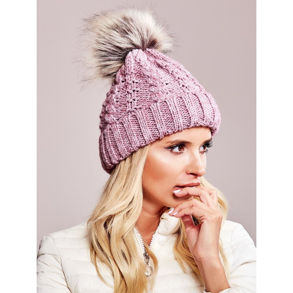 Modrá pletená čiapka s vrkôčikovým vzorom