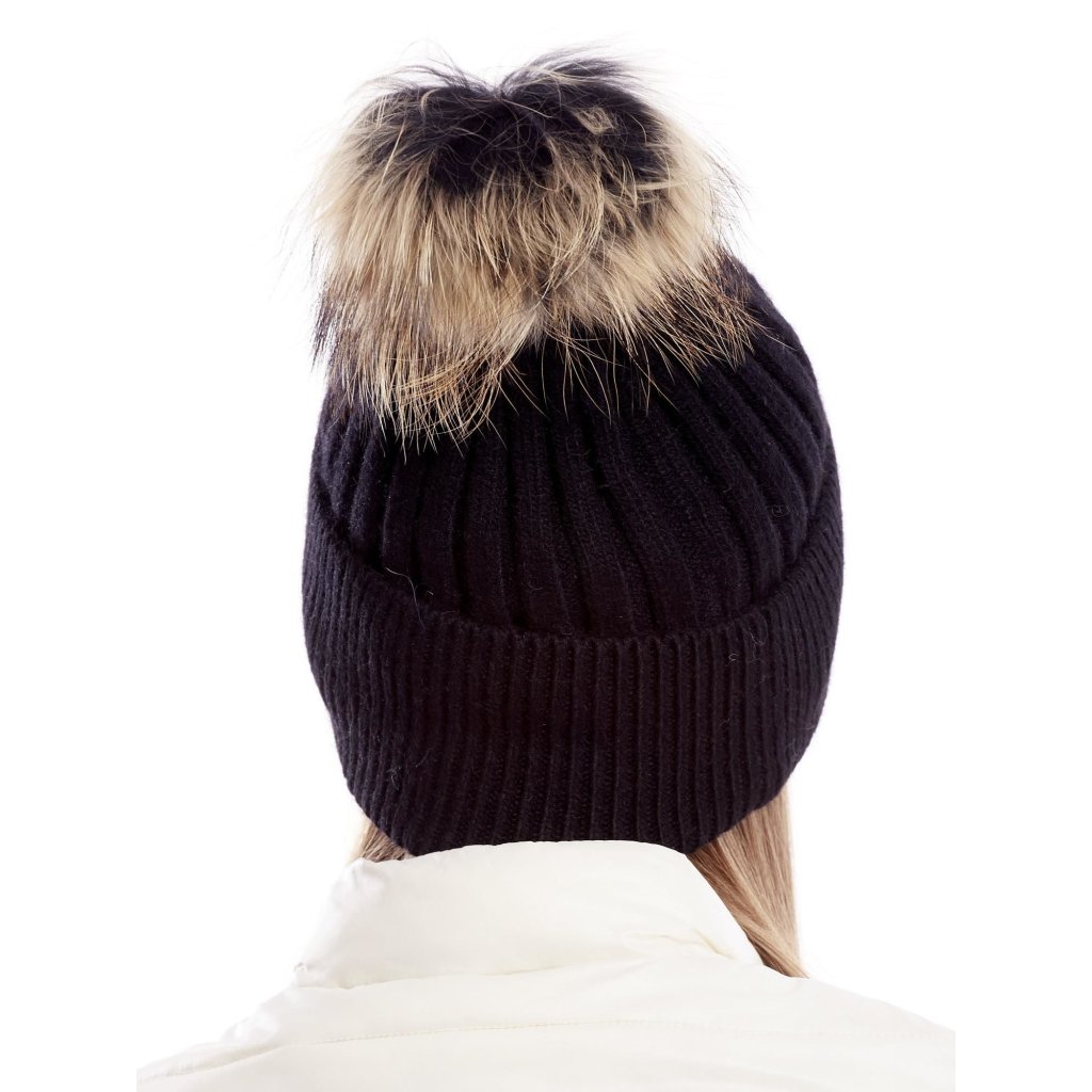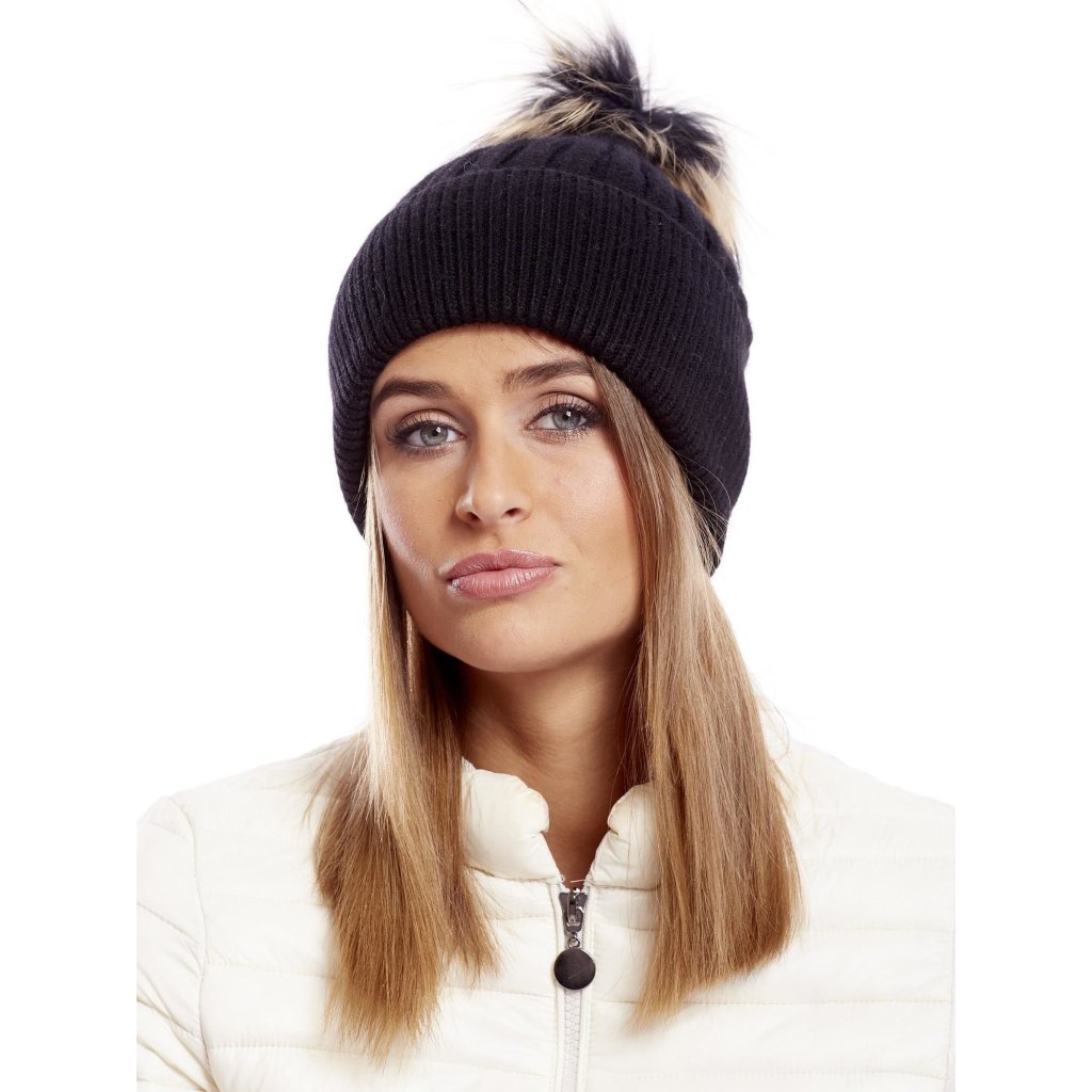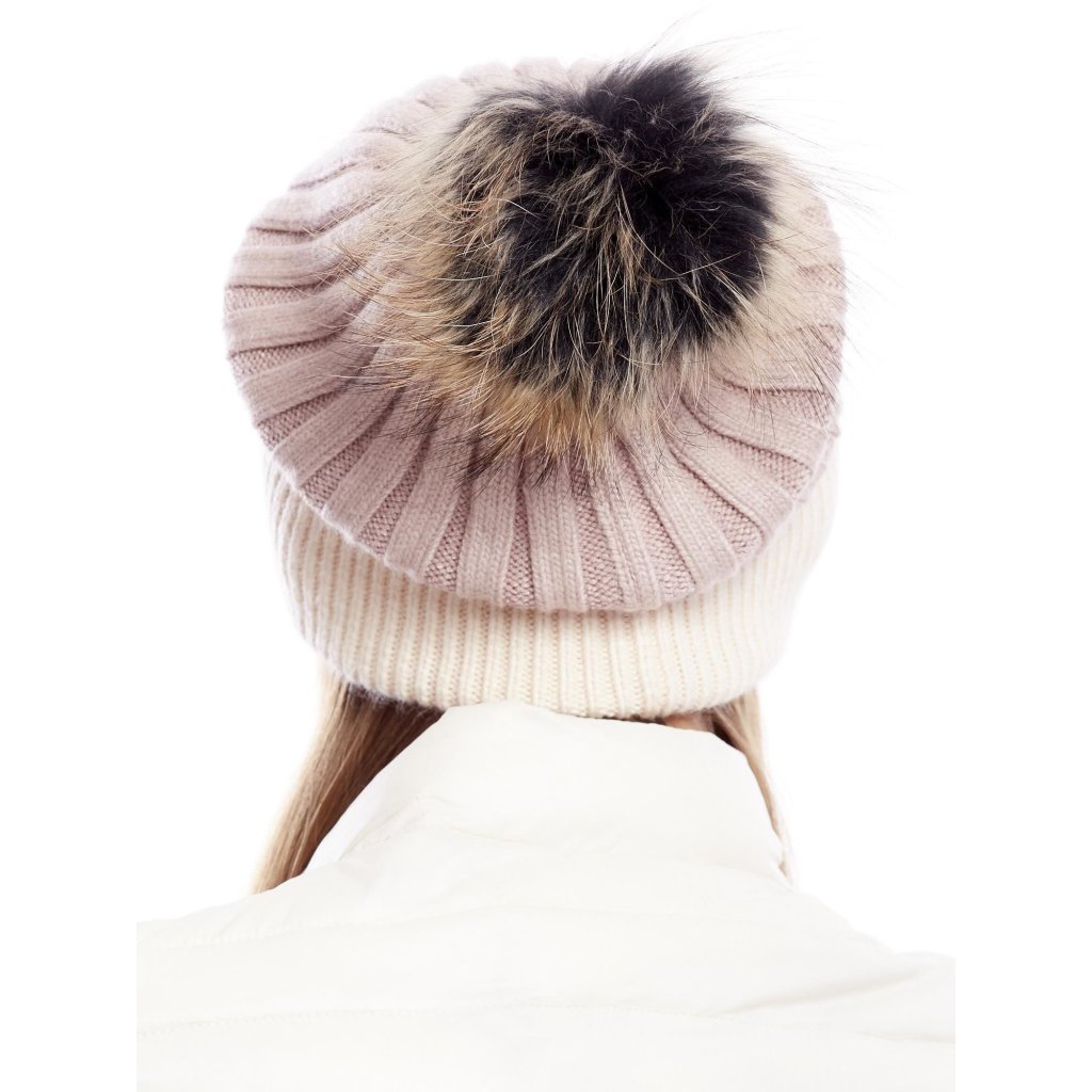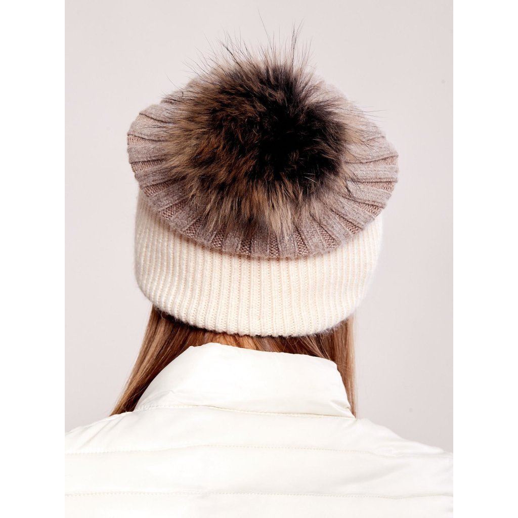 Rebrovaná čiapka s kožušinovou brmbolcom, sivá