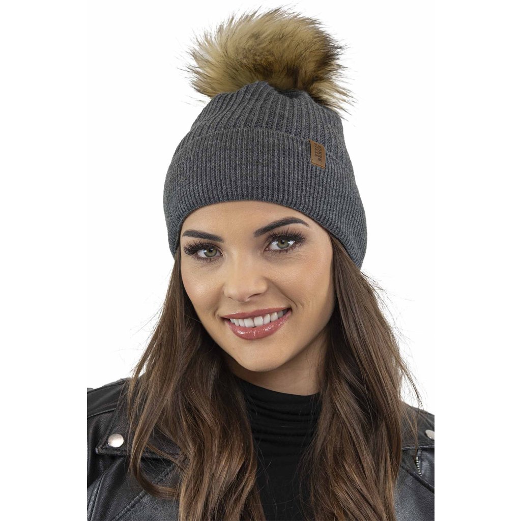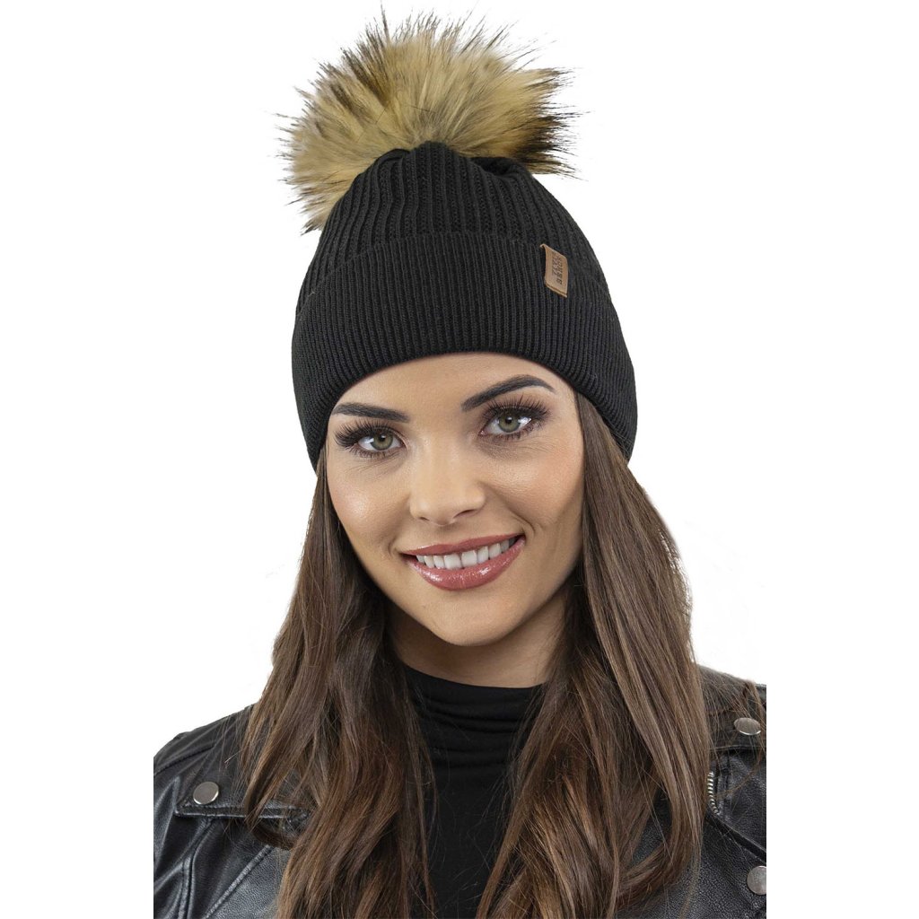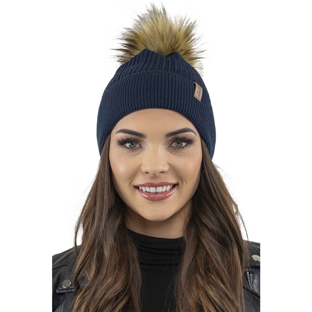 Klasická dámska čiapka- zakončené umelou kožušinovou bambulou