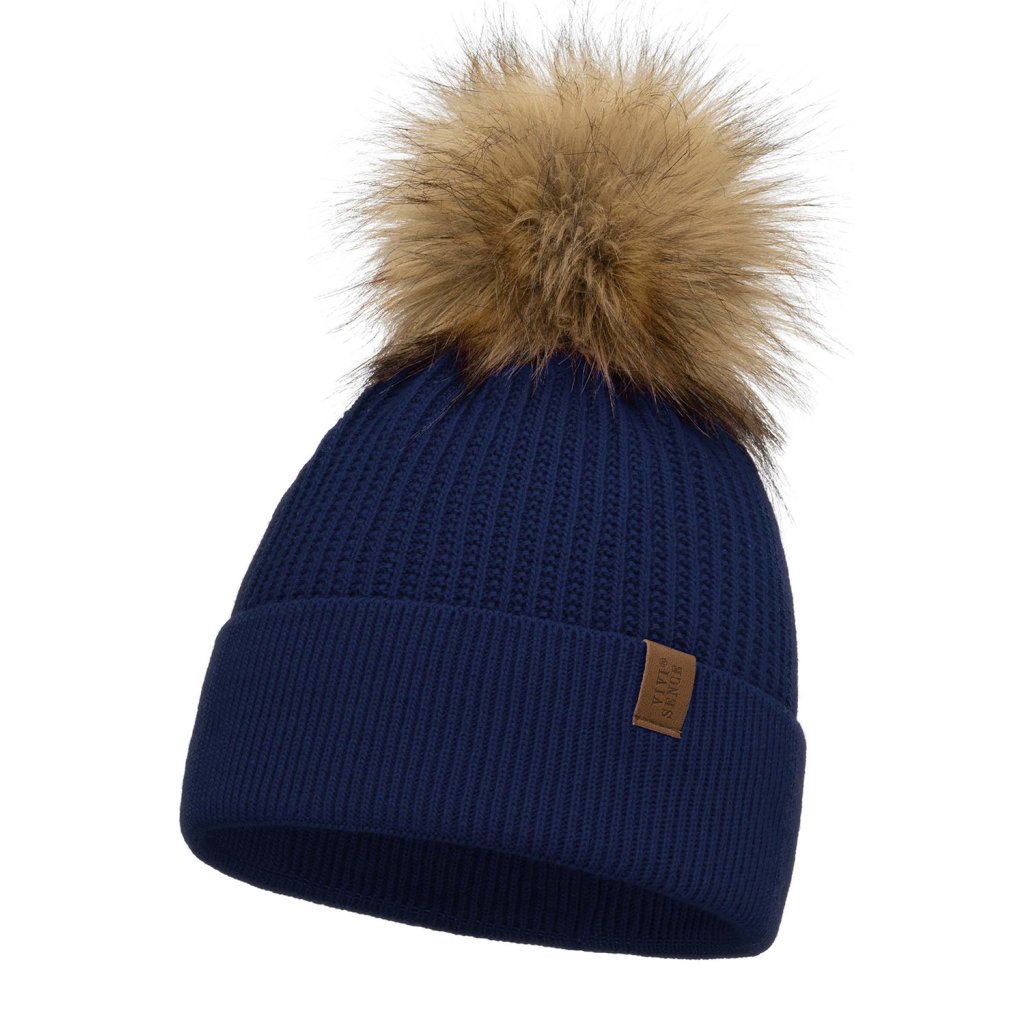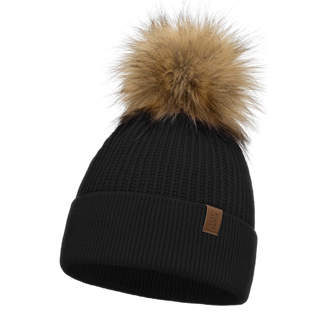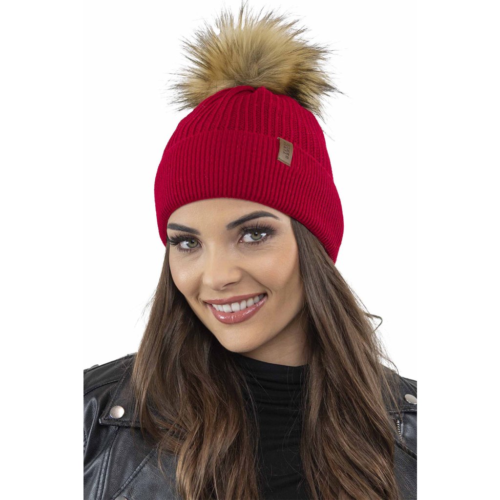 Klasická dámska čiapka- zakončené umelou kožušinovou bambulou