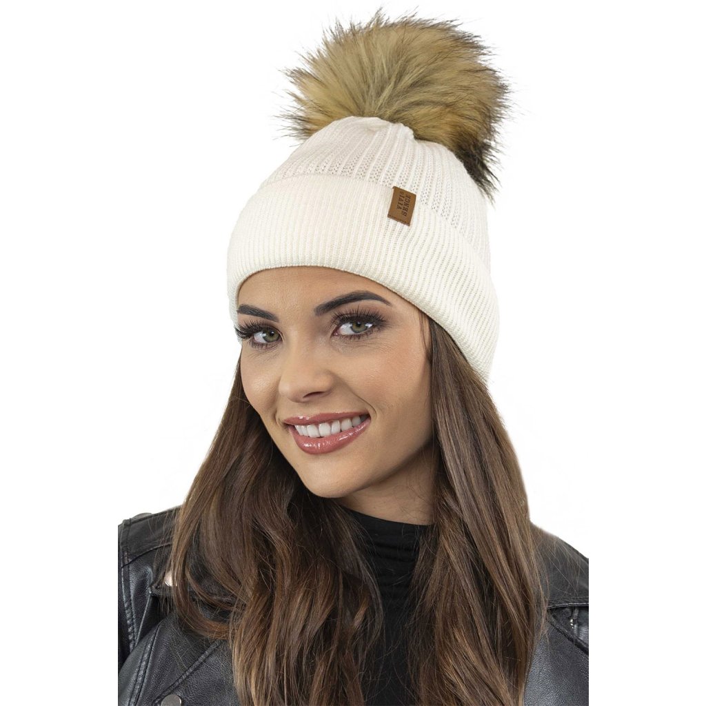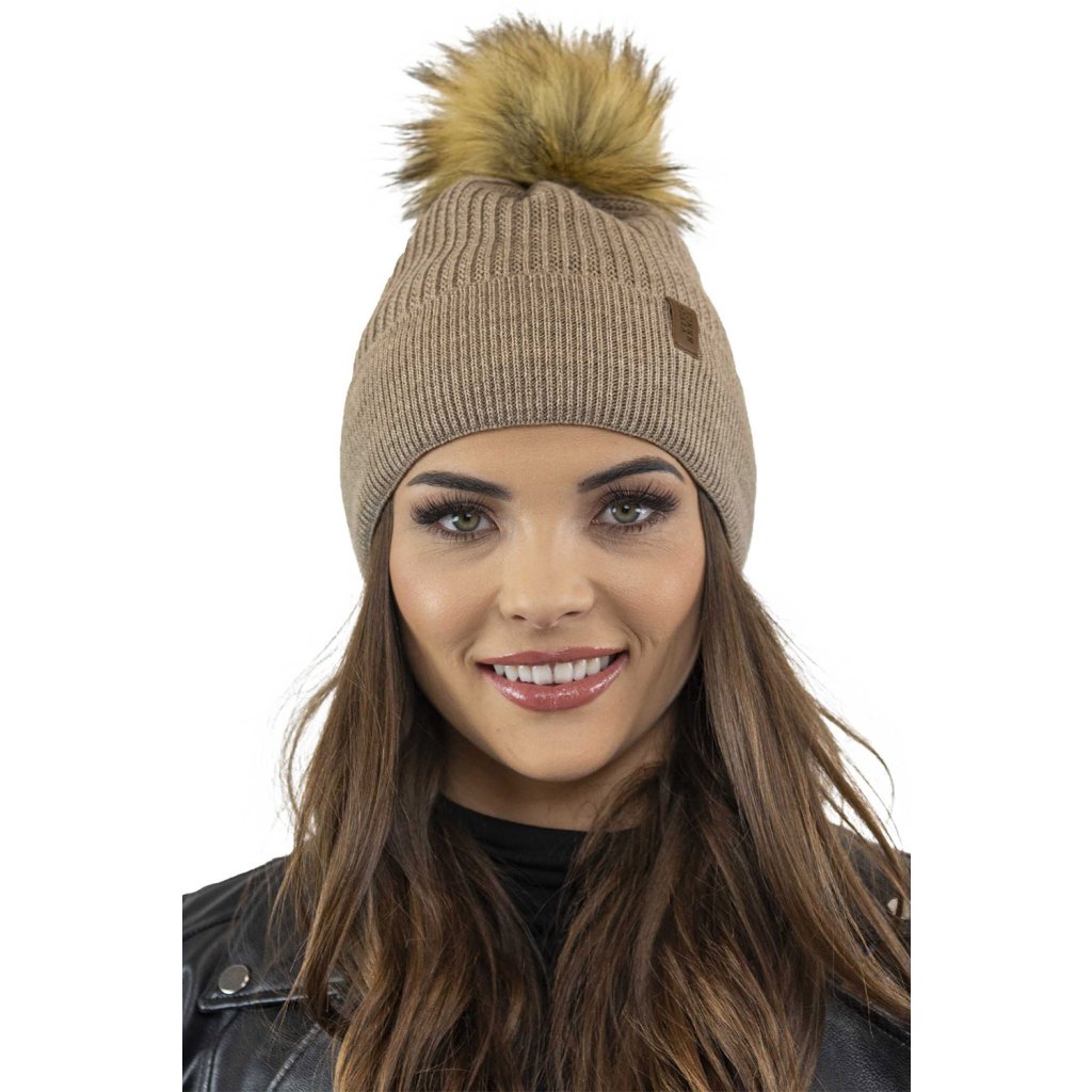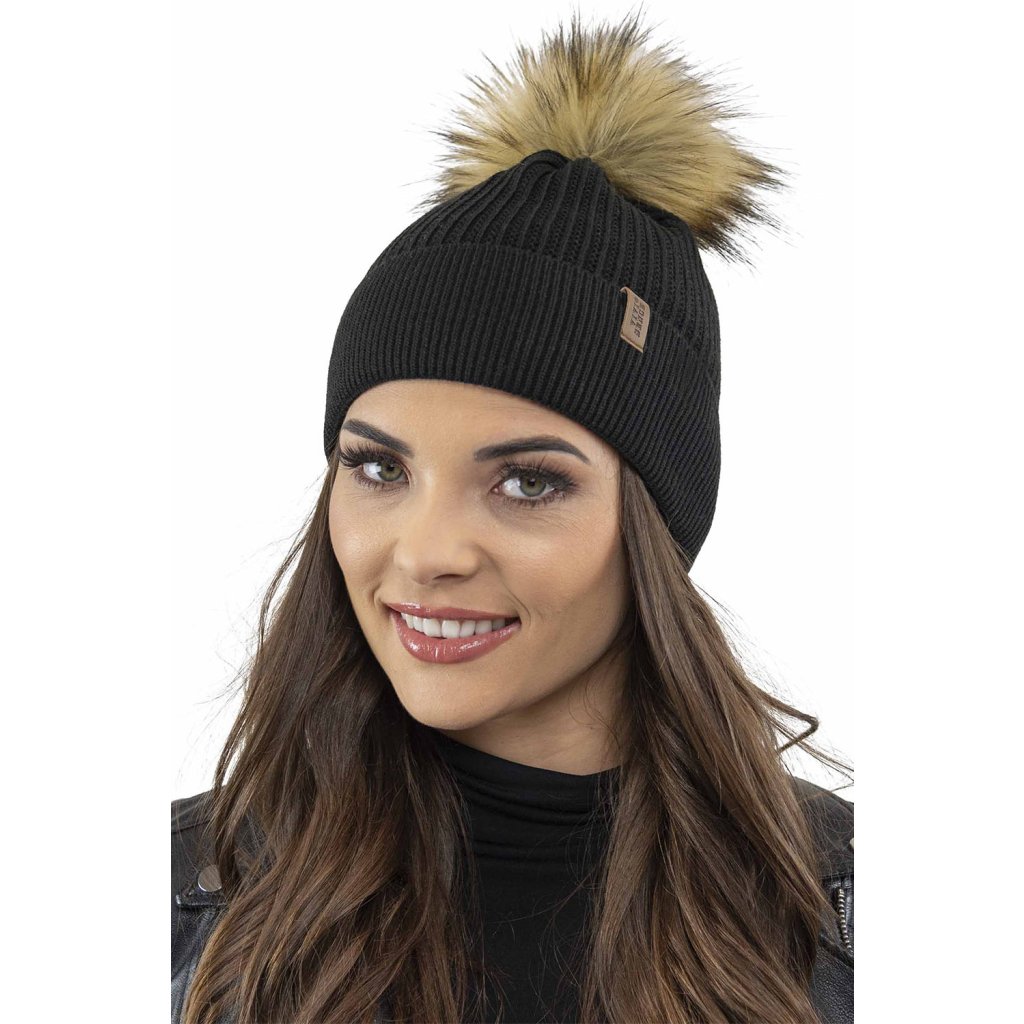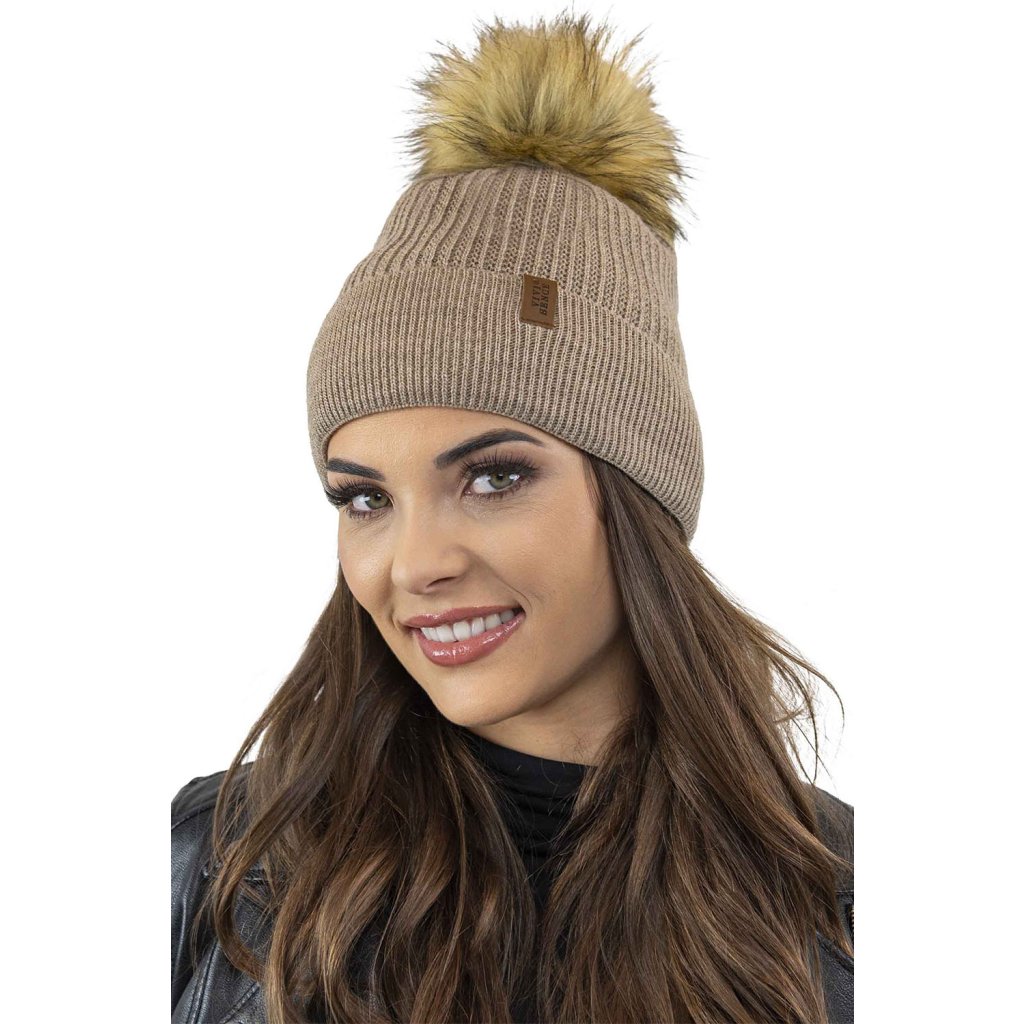 Klasická dámska čiapka- zakončené umelou kožušinovou bambulou