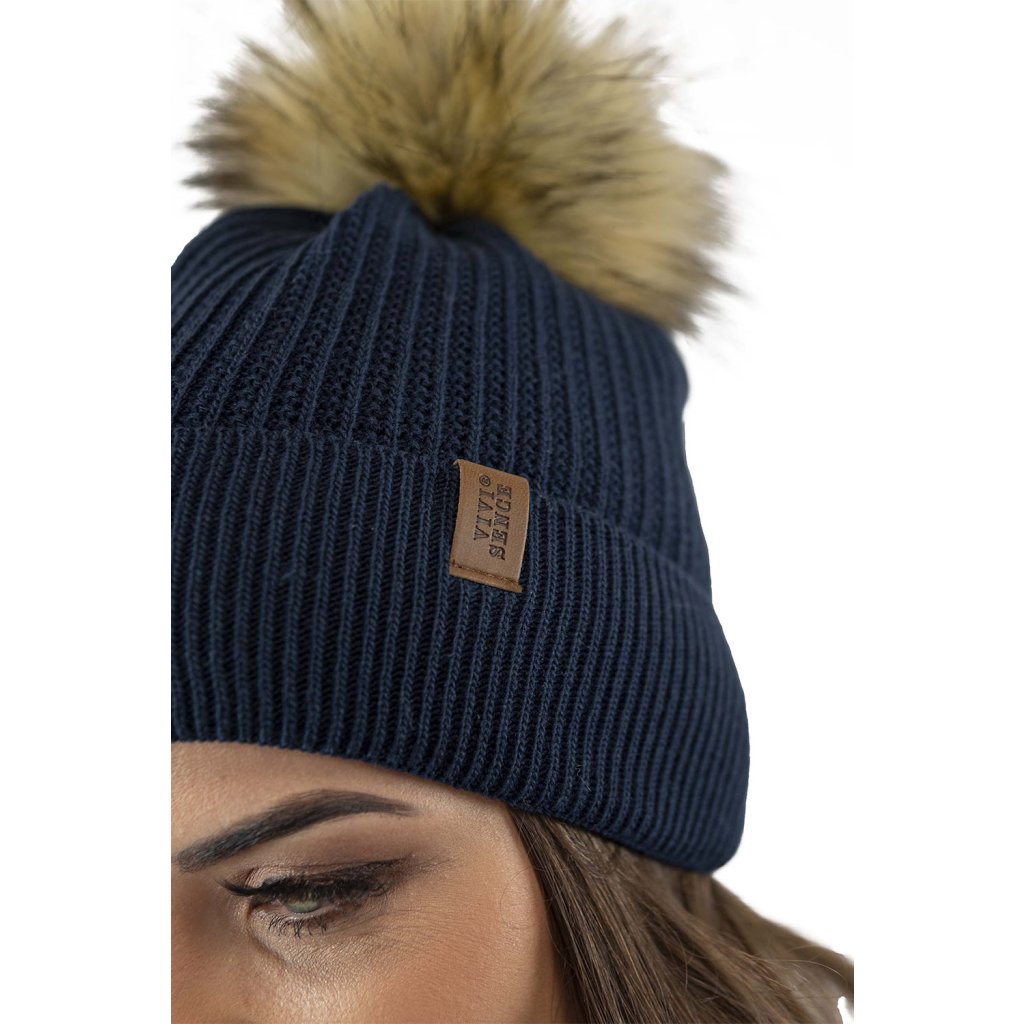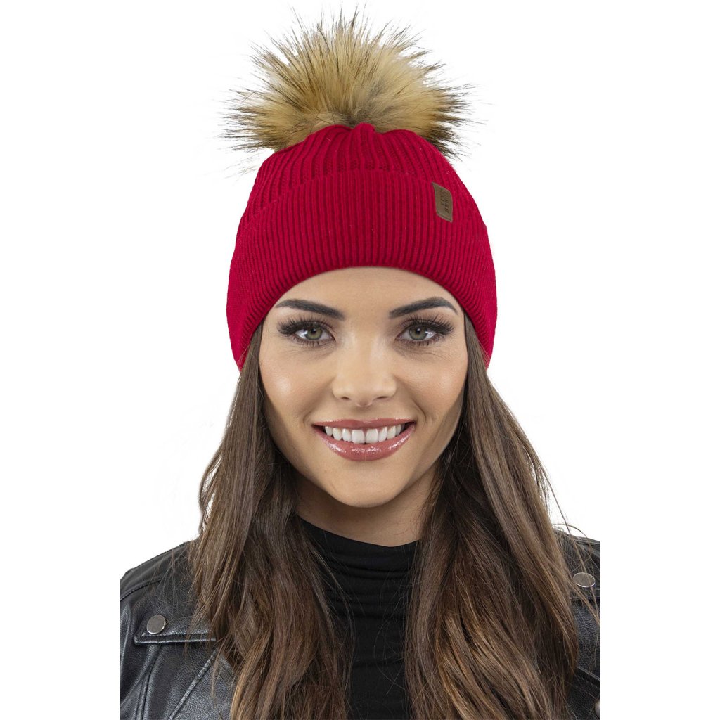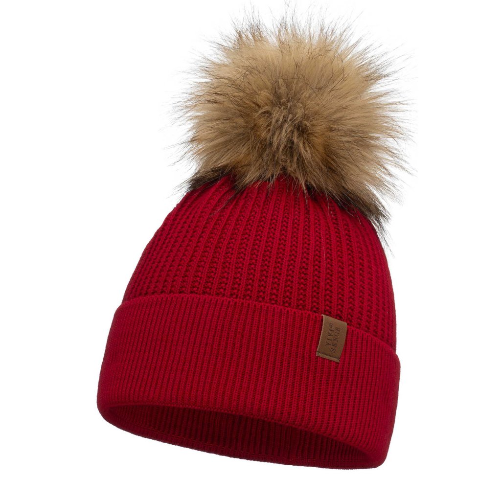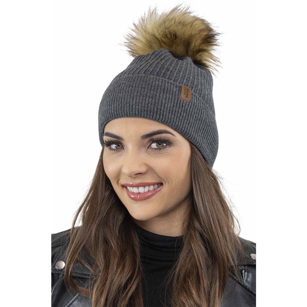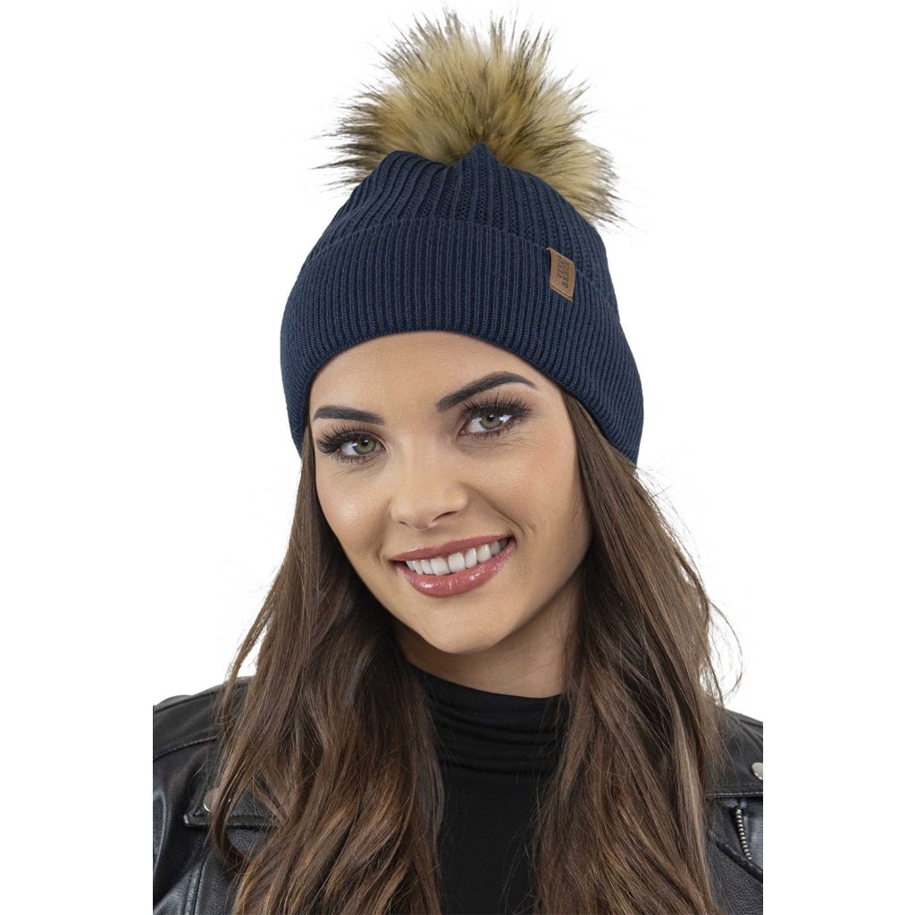 Klasická dámska čiapka- zakončené umelou kožušinovou bambulou