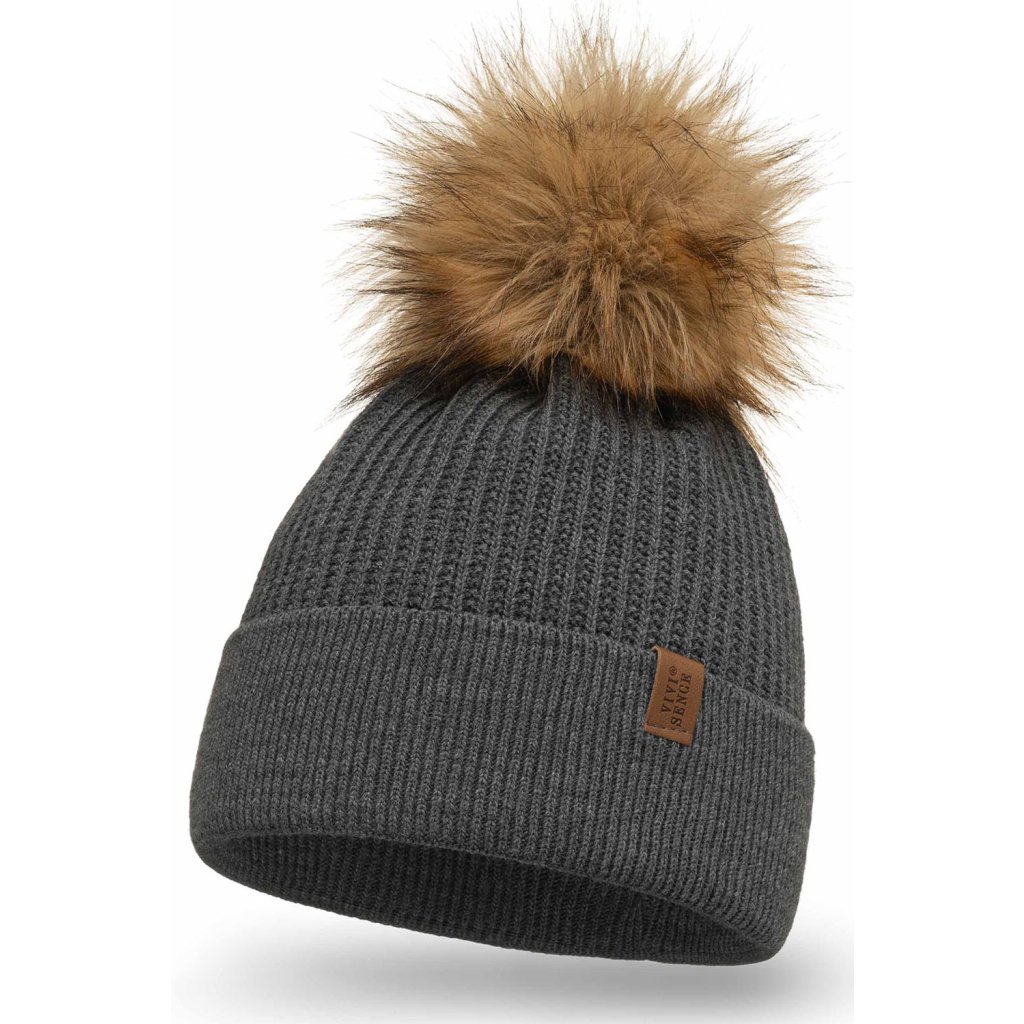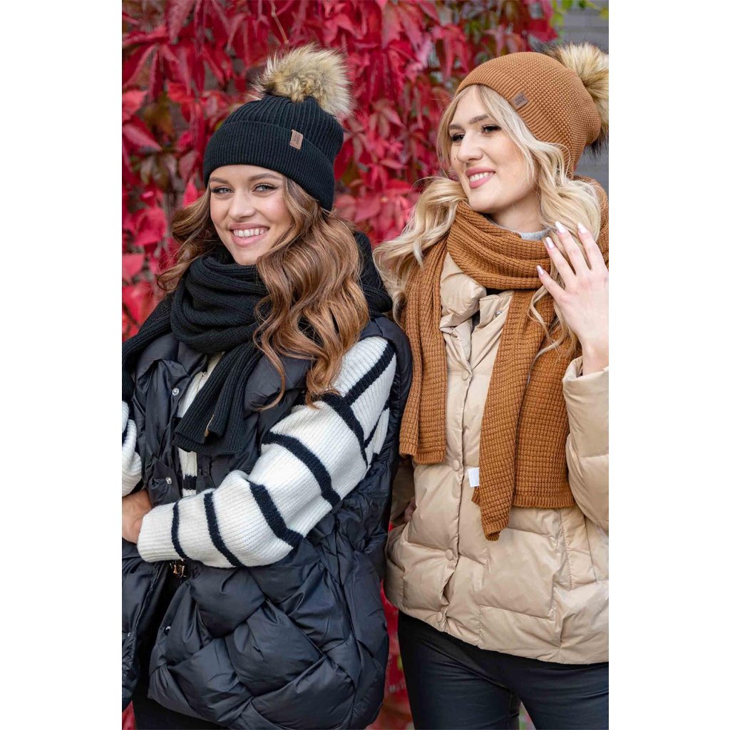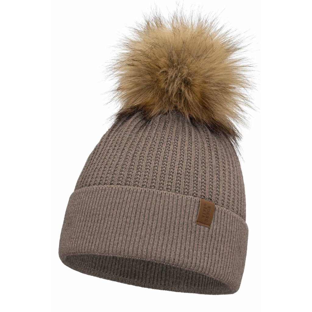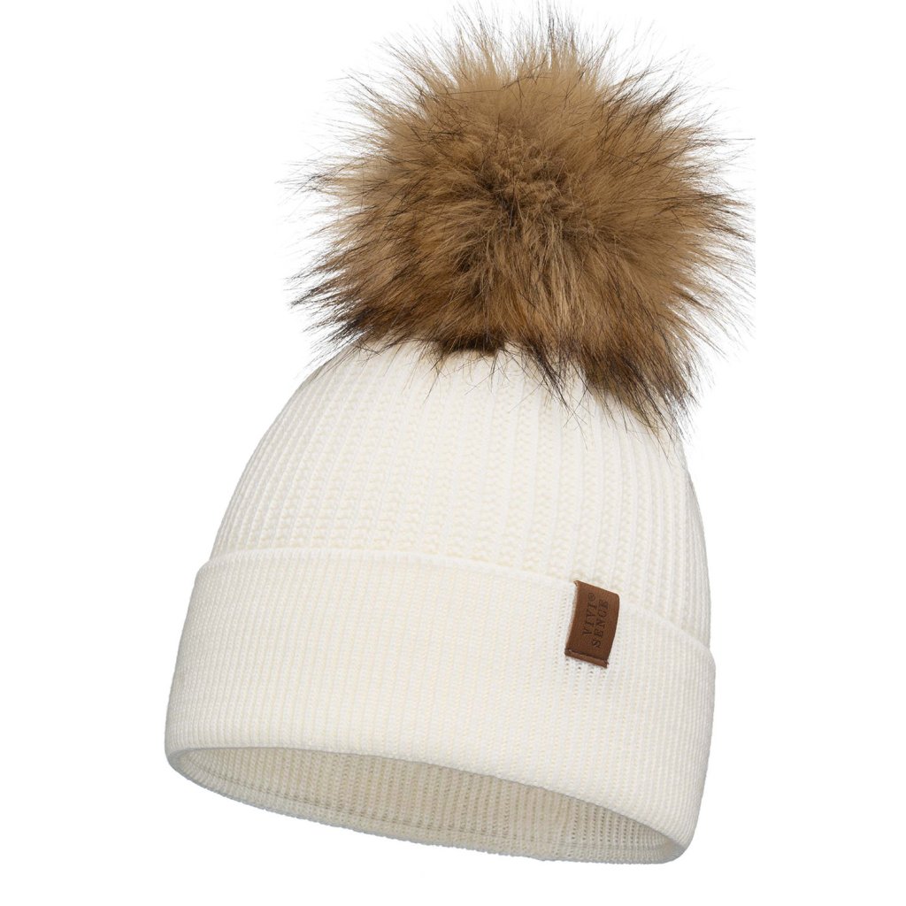 Klasická dámska čiapka- zakončené umelou kožušinovou bambulou