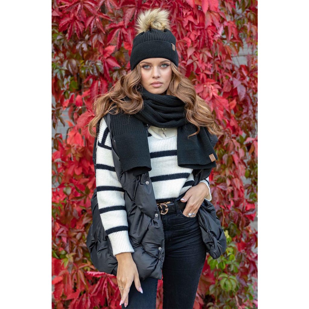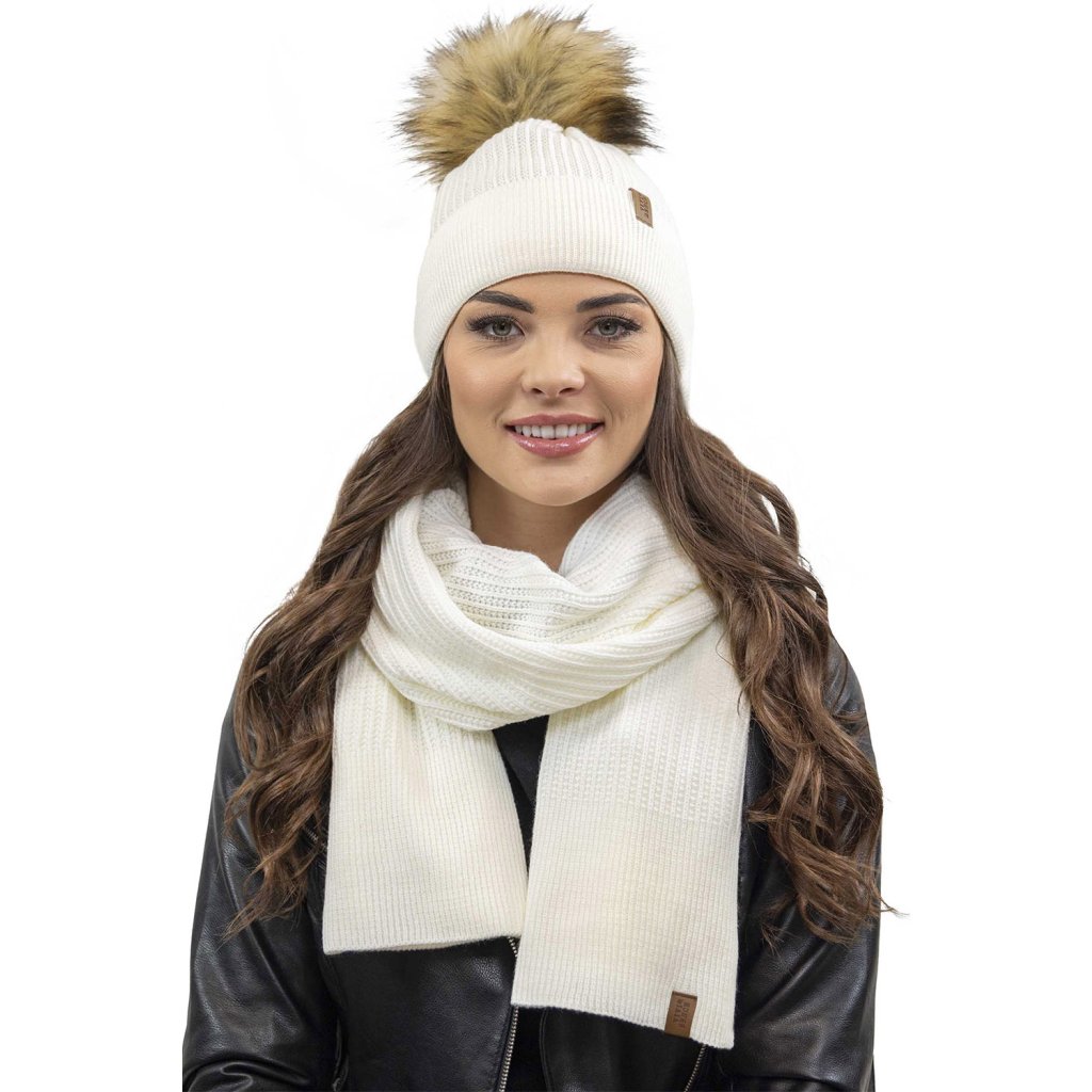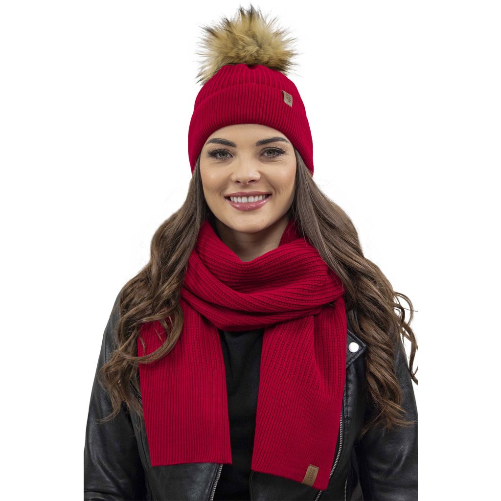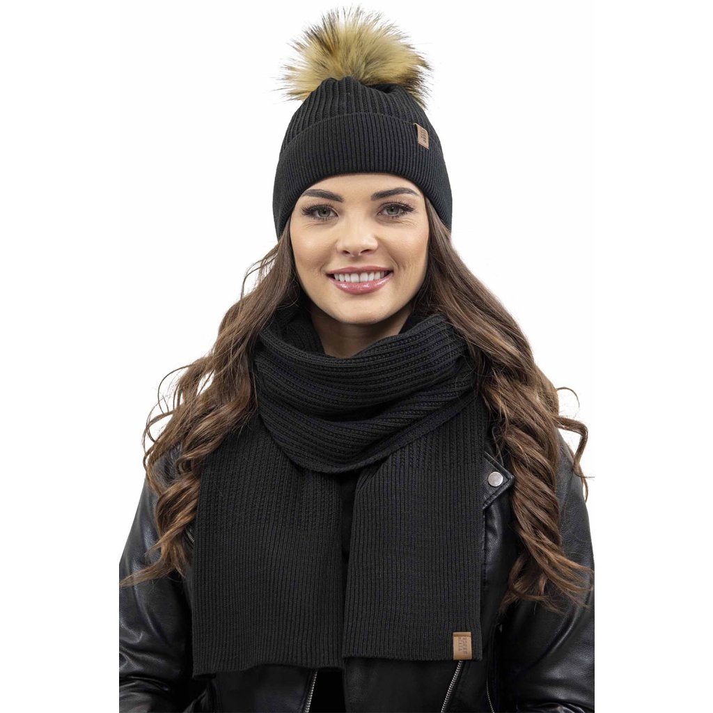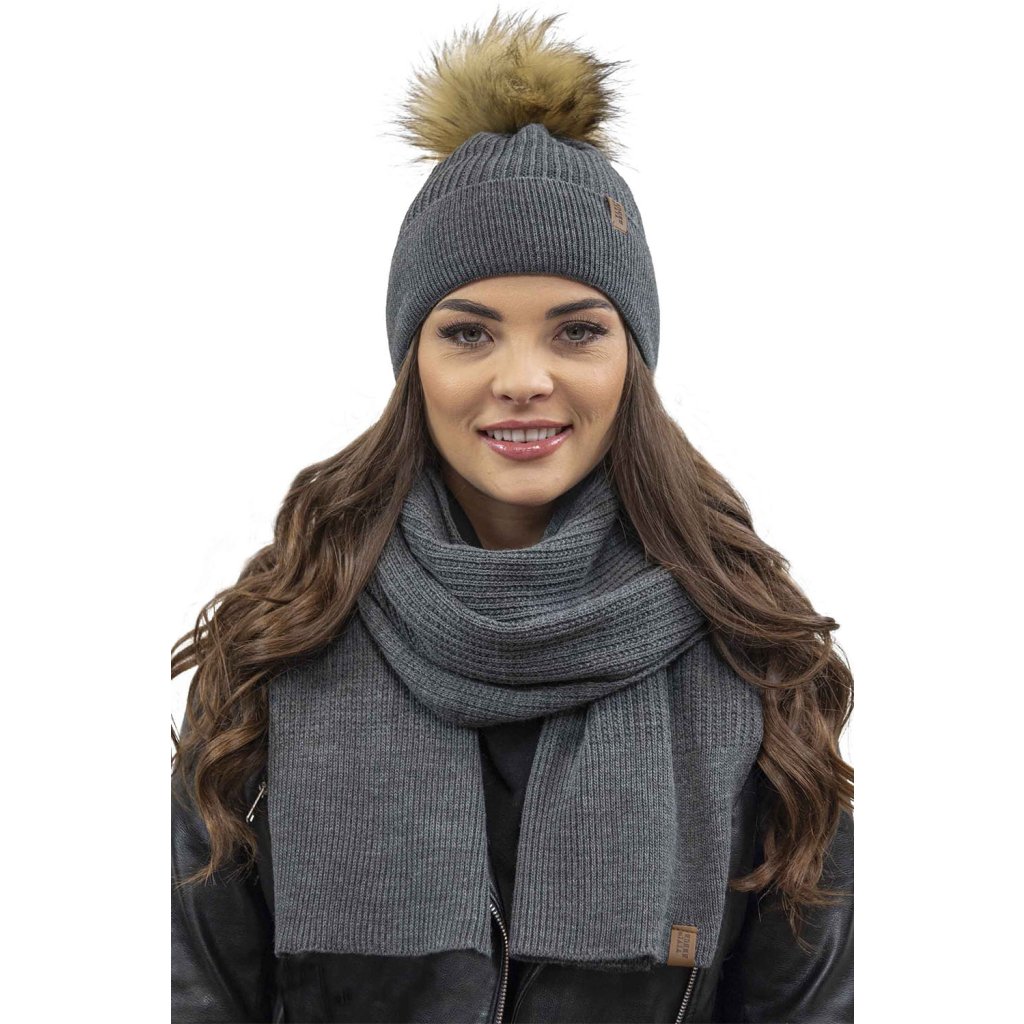 Klasická dámska čiapka- zakončené umelou kožušinovou bambulou