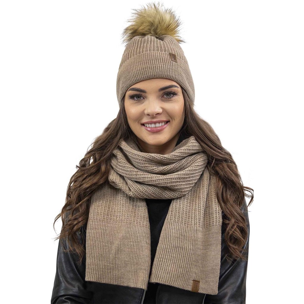 Klasická dámska čiapka- zakončené umelou kožušinovou bambulou