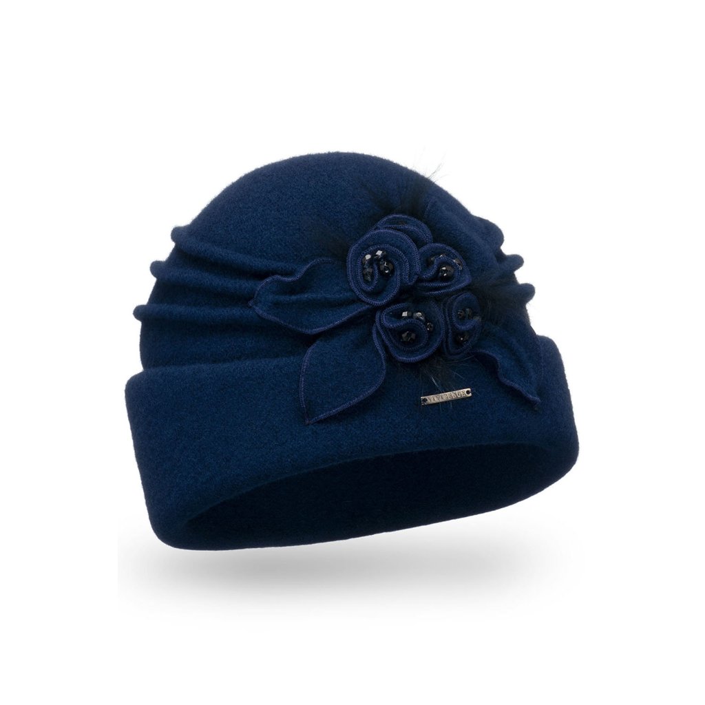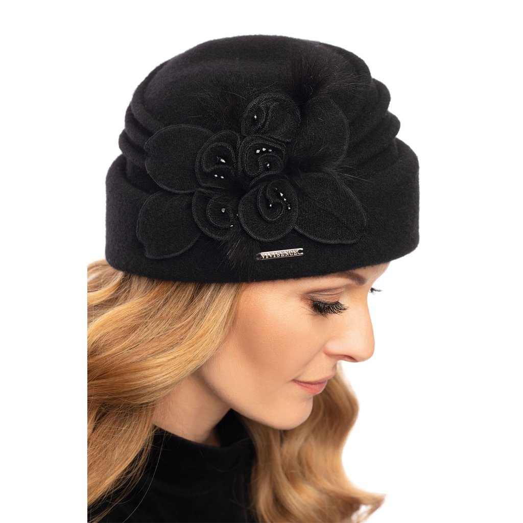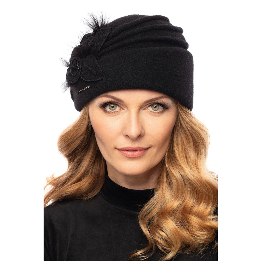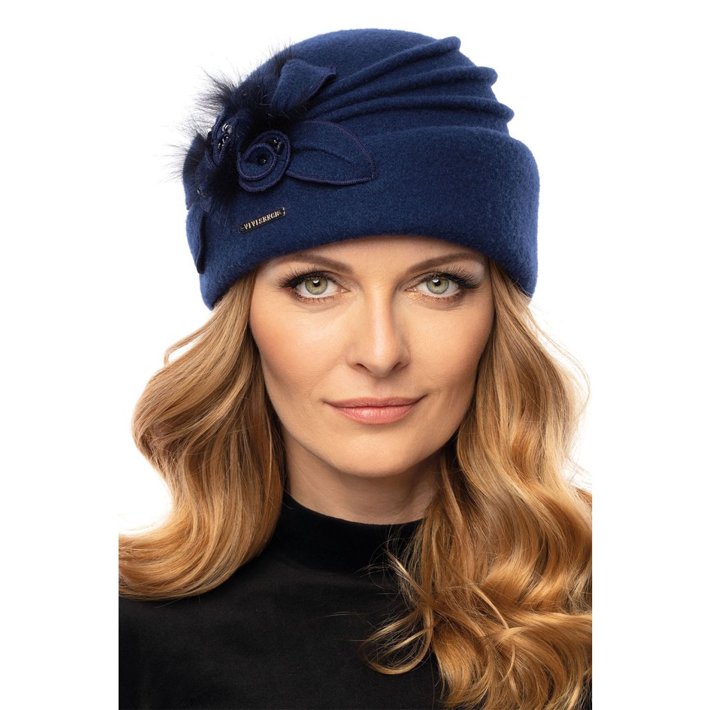 Ručne vyrobený elegantný dámsky toque.Na jeho výrobu bola použitá vysokokvalitná panenská vlna Woolmark®.