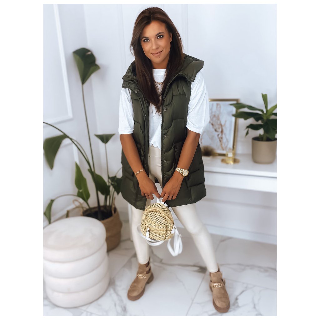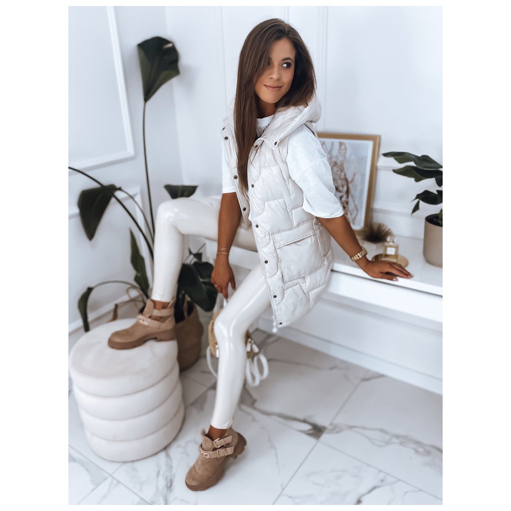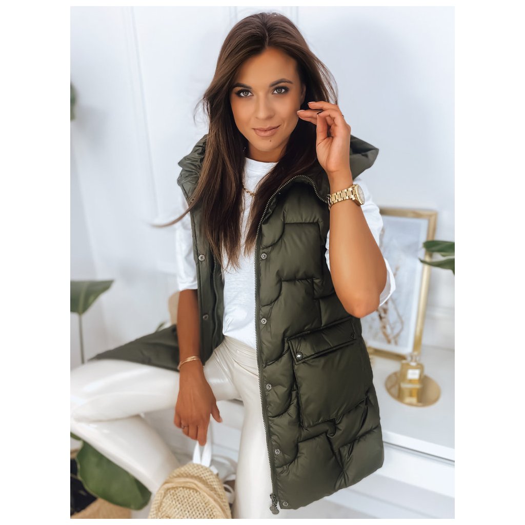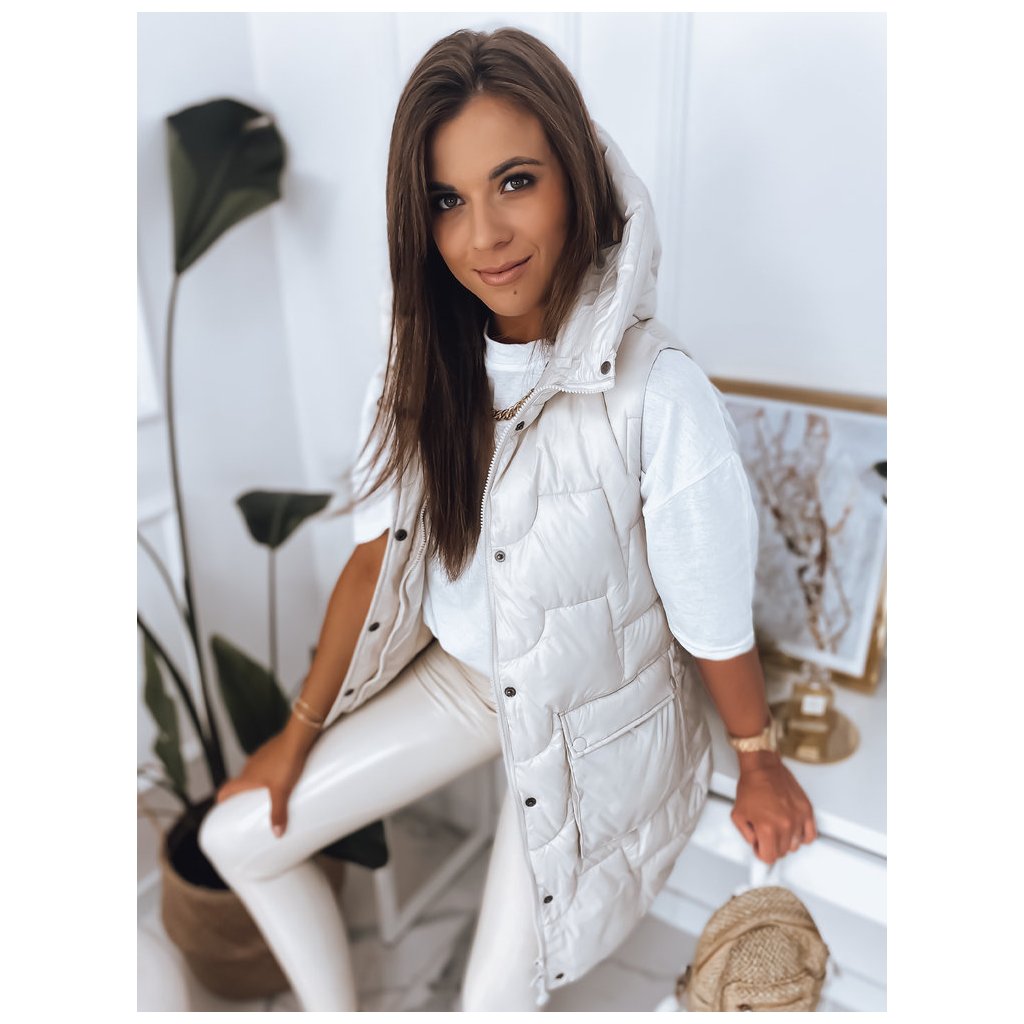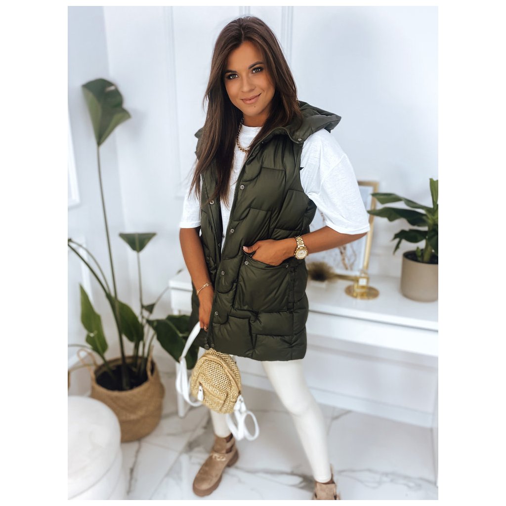 - Dámska predĺžená prešívaná vesta s kapucňou