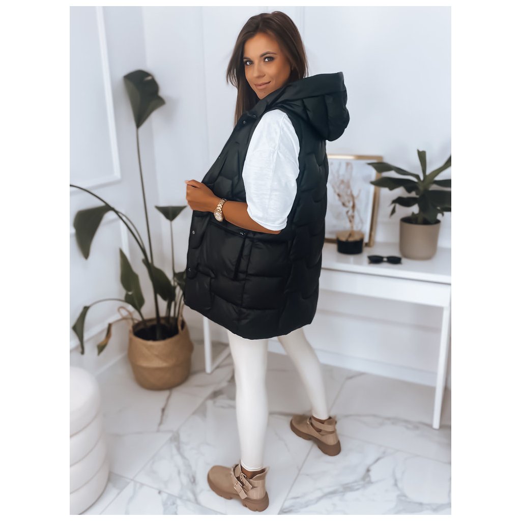 Čierna dámska dlhá prešívaná vesta s kapucňou Dstreet TY2826