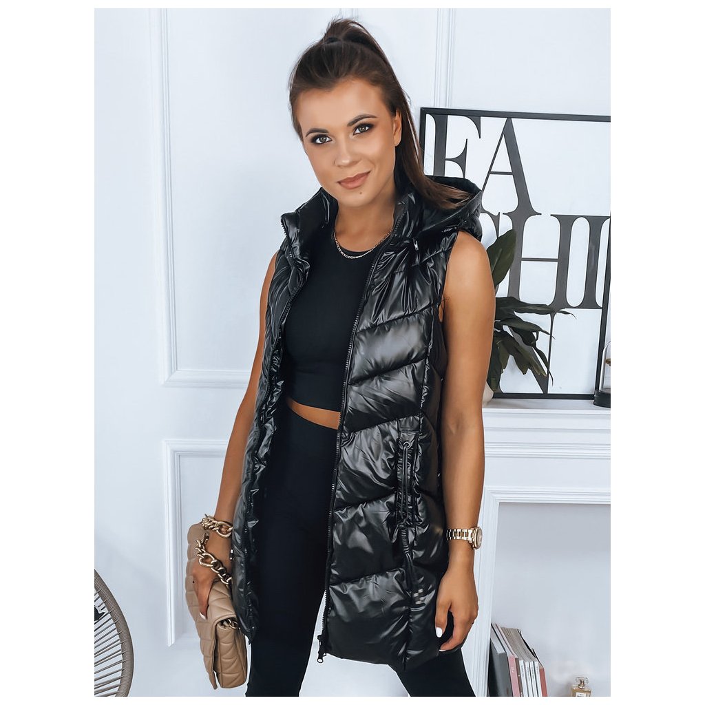 Čierna dámska dlhá prešívaná vesta s kapucňou Dstreet TY2980 - výpredaj