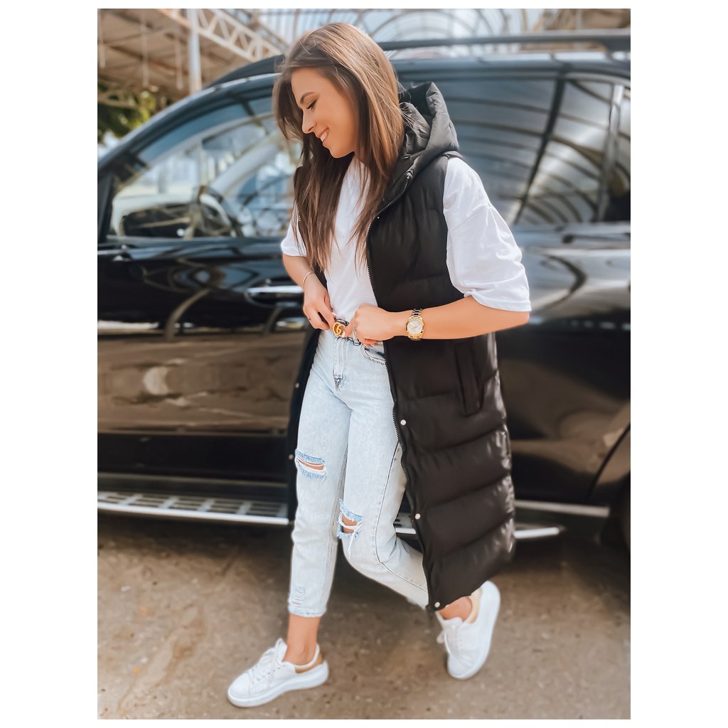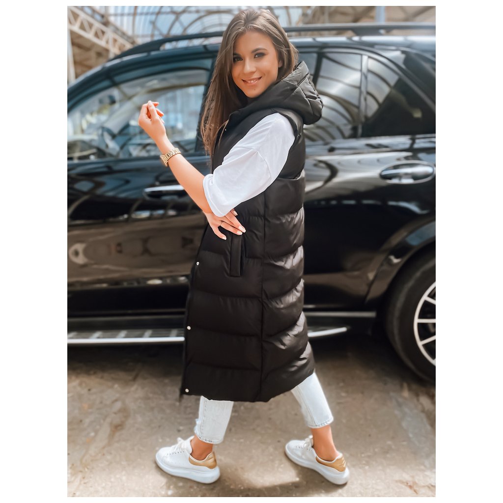 Čierna dámska dlhá prešívaná vesta s kapucňou Dstreet TY3030