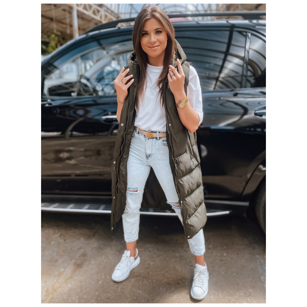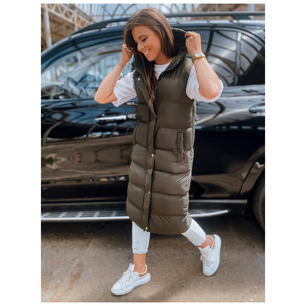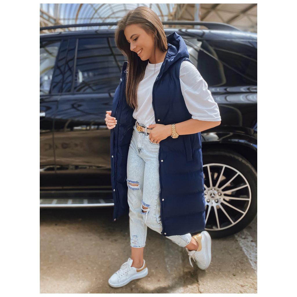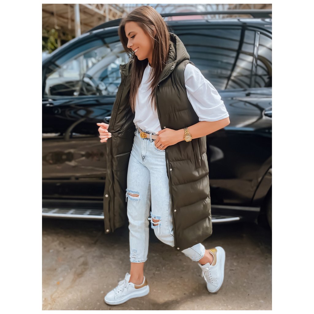 - Predĺžená prešívaná vesta s kapucňou