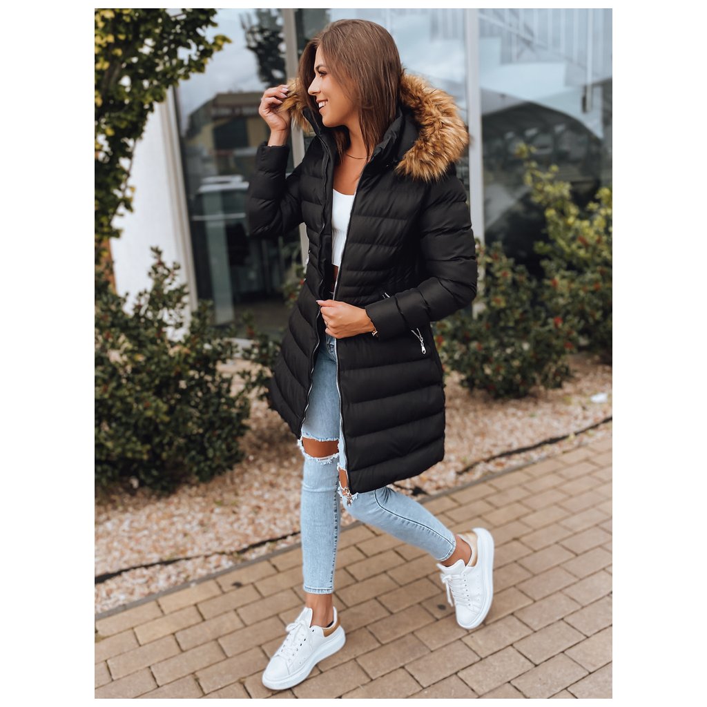 Čierna dámska dlhá prešívaná zimná bunda s kapucňou czarna Dstreet TY3095 - výpredaj