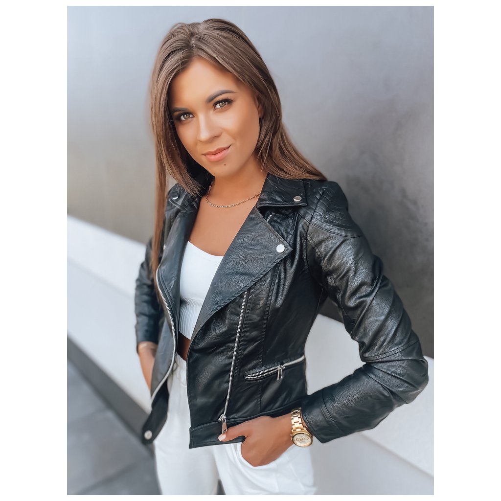 Čierna dámska koženková bunda so stojačikom vo farbe čokolády Dstreet TY2995