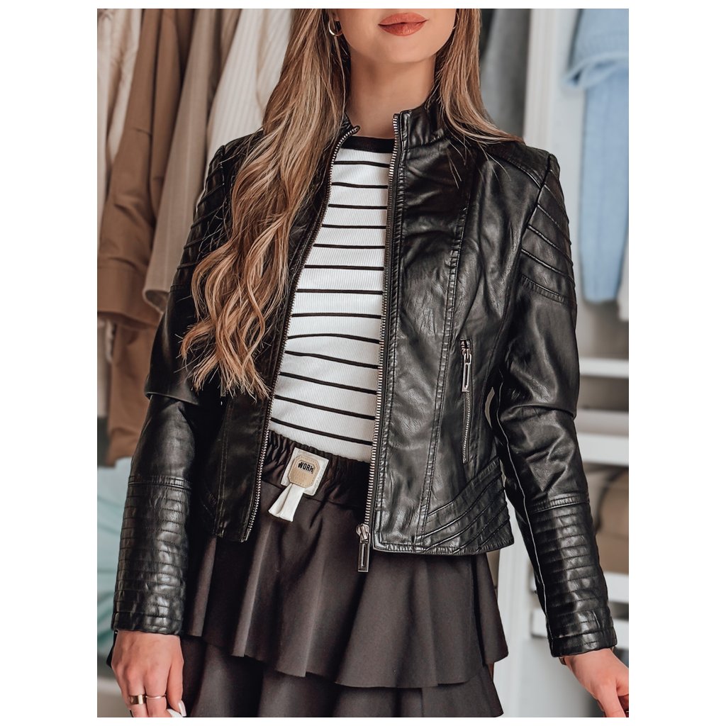 Čierna dámska koženková krivák bunda Dstreet TY2849