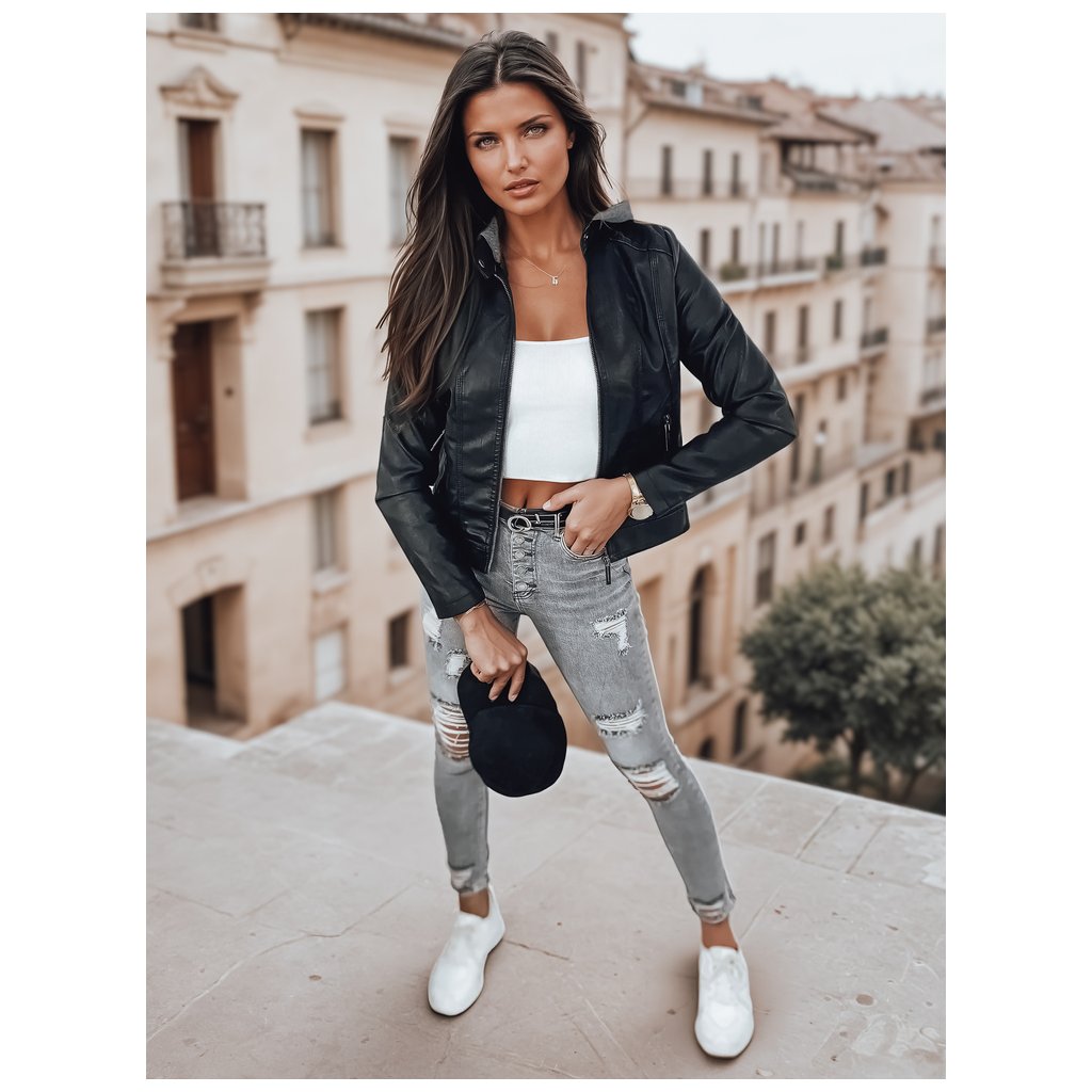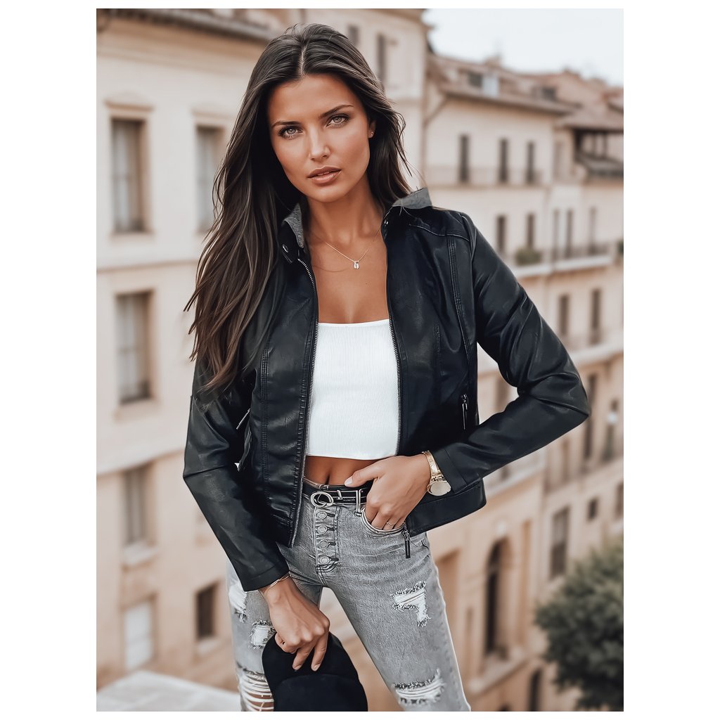 Čierna dámska koženková krivák bunda Dstreet TY2875