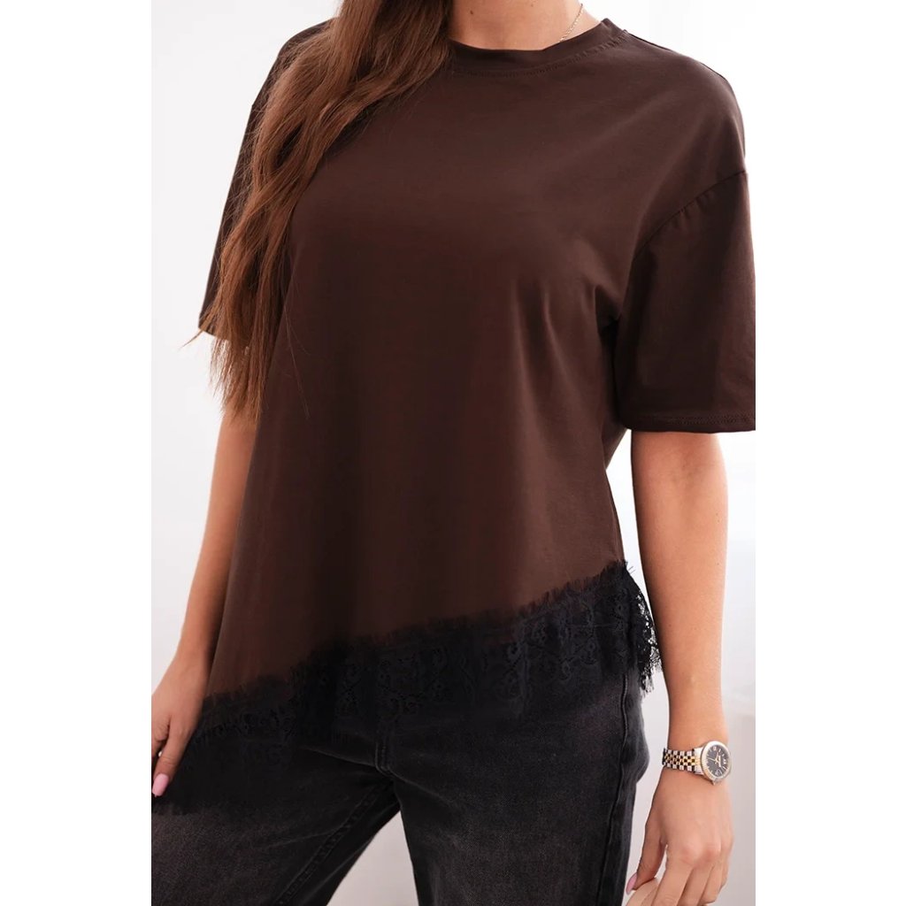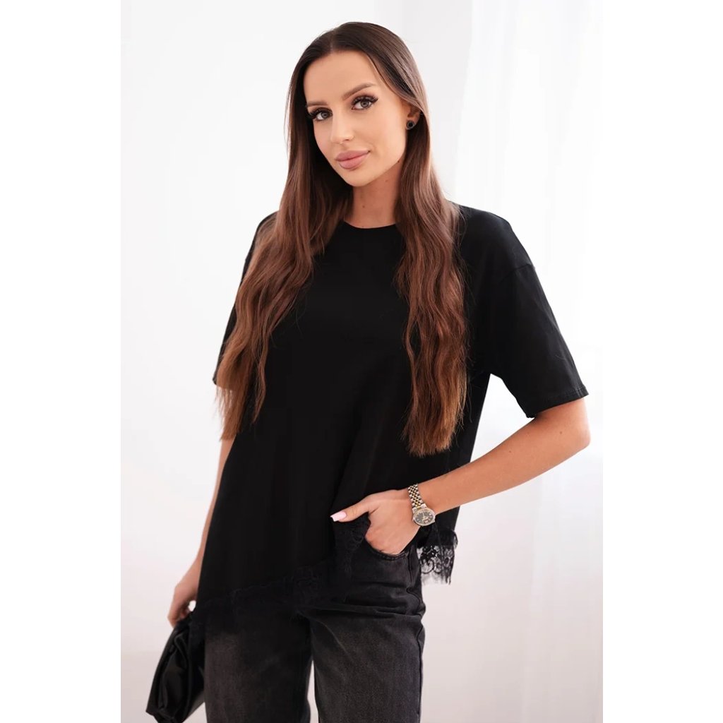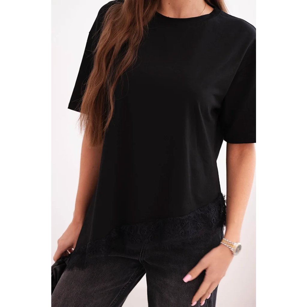 Hľadáte originálnu, ale zároveň pohodlnú blúzku, ktorá podčiarkne váš štýl? Táto dámska blúzka s čipkovaným lemom je skvelou voľbou na každý deň aj na výnimočné príležitosti. Vyznačuje sa asymetrickým strihom a jemným čipkovaným zakončením, ktoré jej dodáva charakter a ženský pôvab. Vďaka jednoduchému strihu a mäkkému materiálu sa dokonale prispôsobí postave, čo zaisťuje komfort po celý deň.